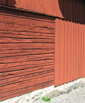 스웨덴 통나무집의 특징 중 하나가 통나무 벽면에 다시 판재로 덧붙인 집이 많다는 건데요,