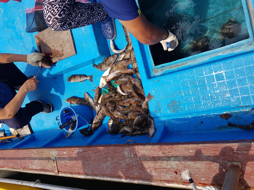 생새우를 미리 준비해오신 덕분에 대어들만 걸려들기 시작했습니다. 저도 흥분되기 시작합니다.