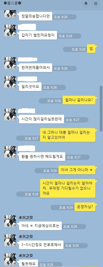 2시간이 지난 뒤 아무런 반응이 없길래 점점 두려워졌습니다. 2시간 20분이 지난 뒤 연락이 왔네요..