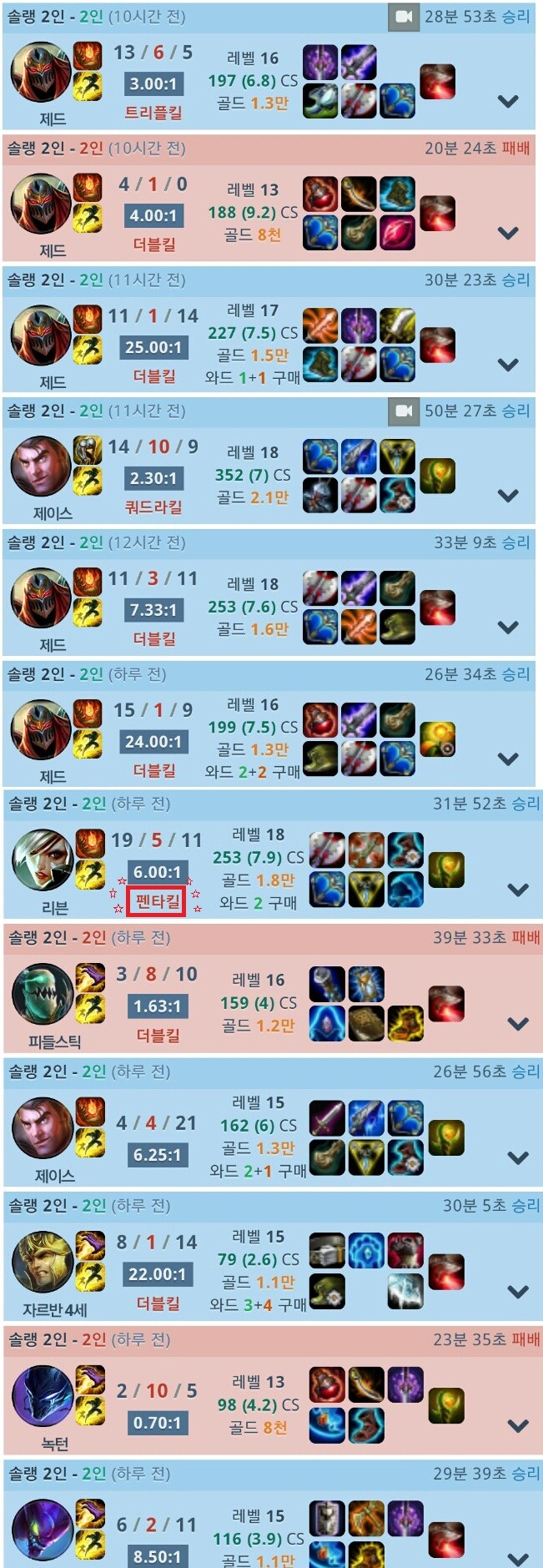 게임중에 펜타킬도 있고 제가 미드가 모스트인데 미드라인으로 하드캐리를 해주고 평점도 5점대 이상, 높은건 10점대 이상으로..