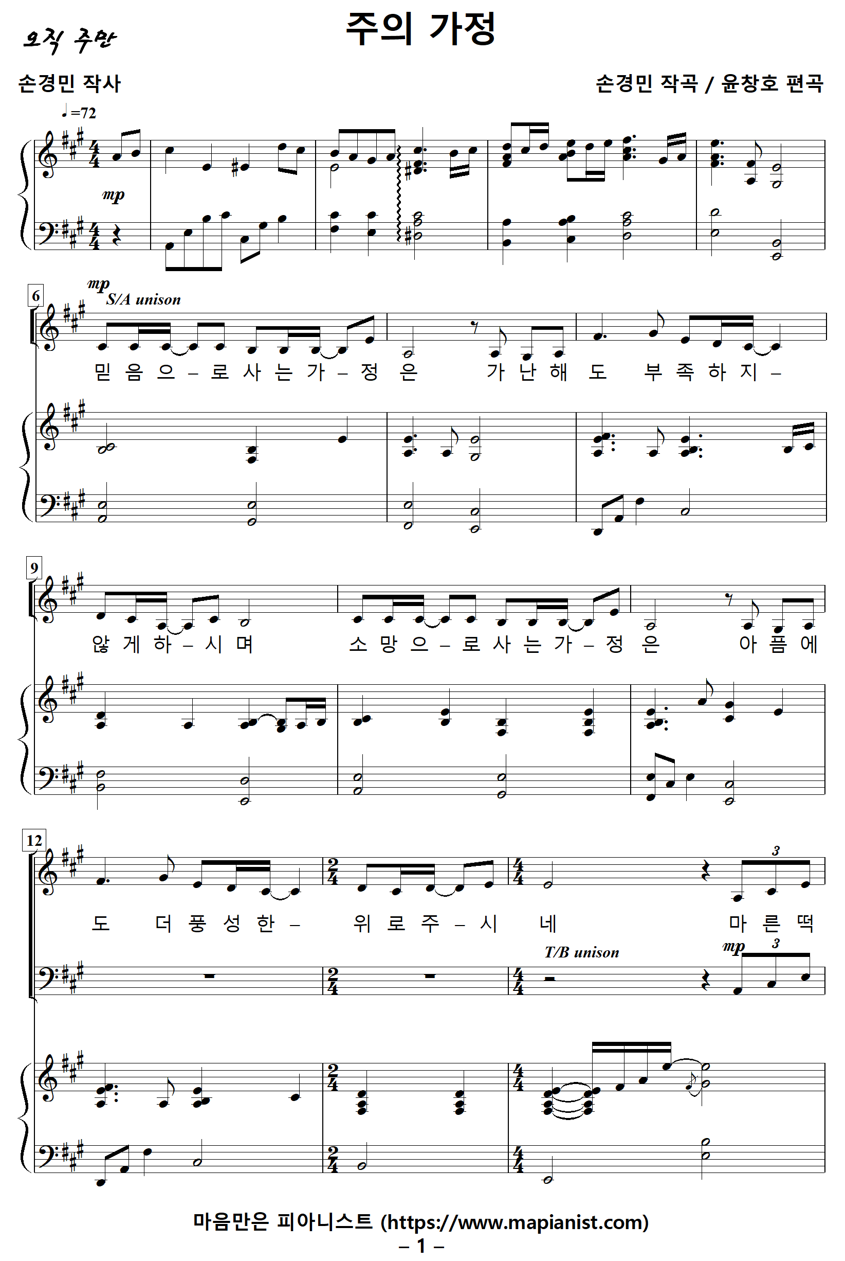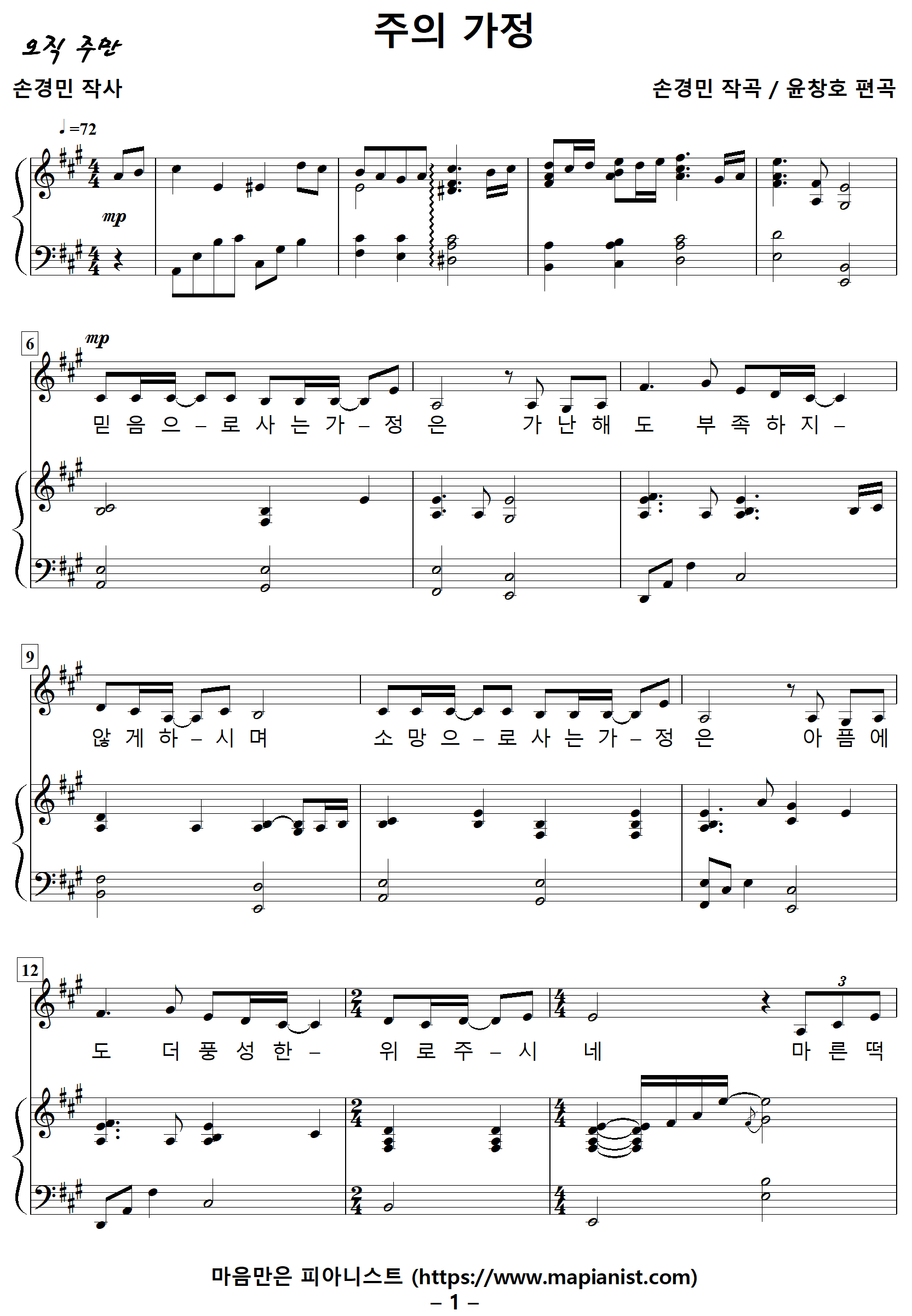 [찬양가사] 주의가정 / 믿음으로사는가정은 [손경민 작사, 손경민 작곡, 윤창호 편곡]