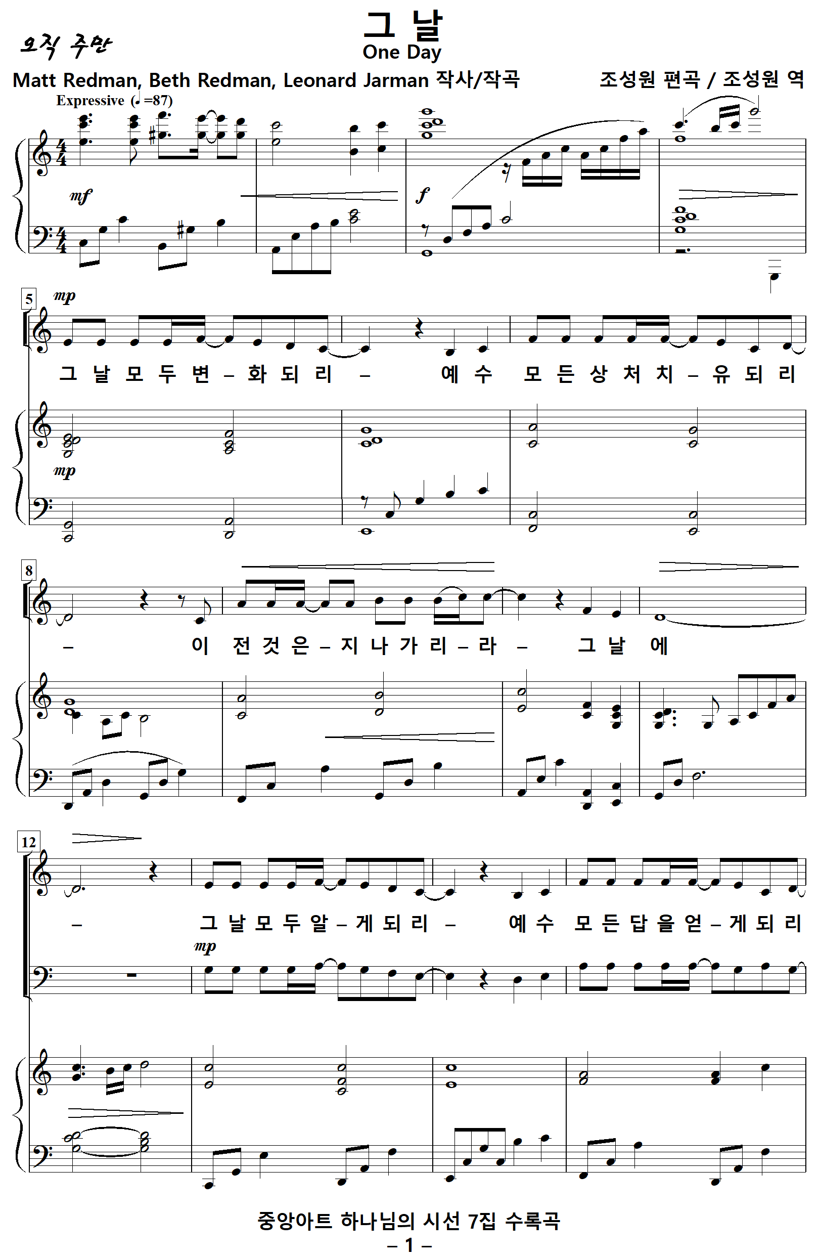 [성가악보] 그날 / 그날모두변화되리 [ Matt Redman, Beth Redman, Leonard Jarman 작사/작곡, 조성원 편곡, 조성원 역]