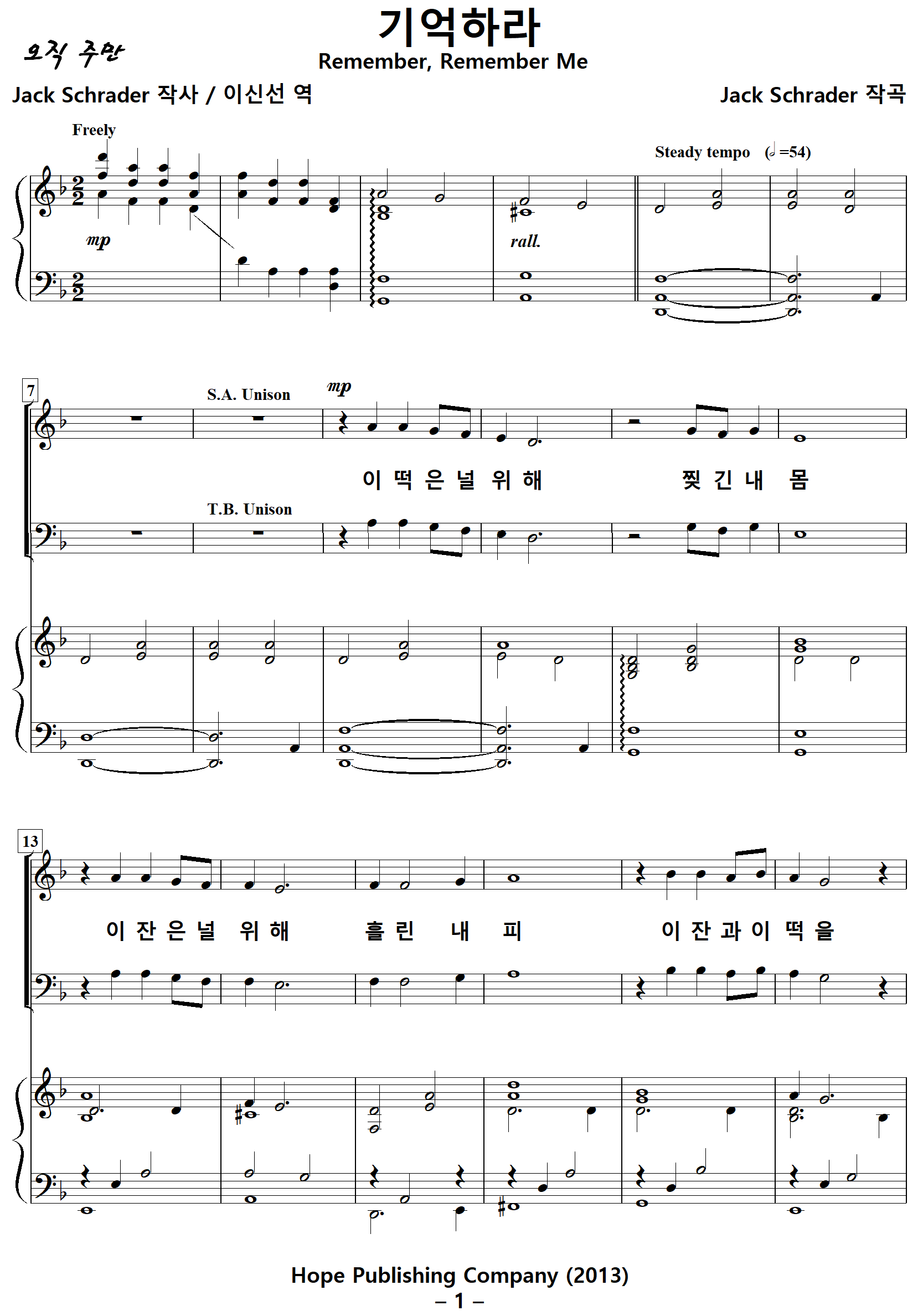 [스크랩] [사순절기]Remember, Remember Me / 기억하라 (Jack Schrader) [Hope Publishing Choir]