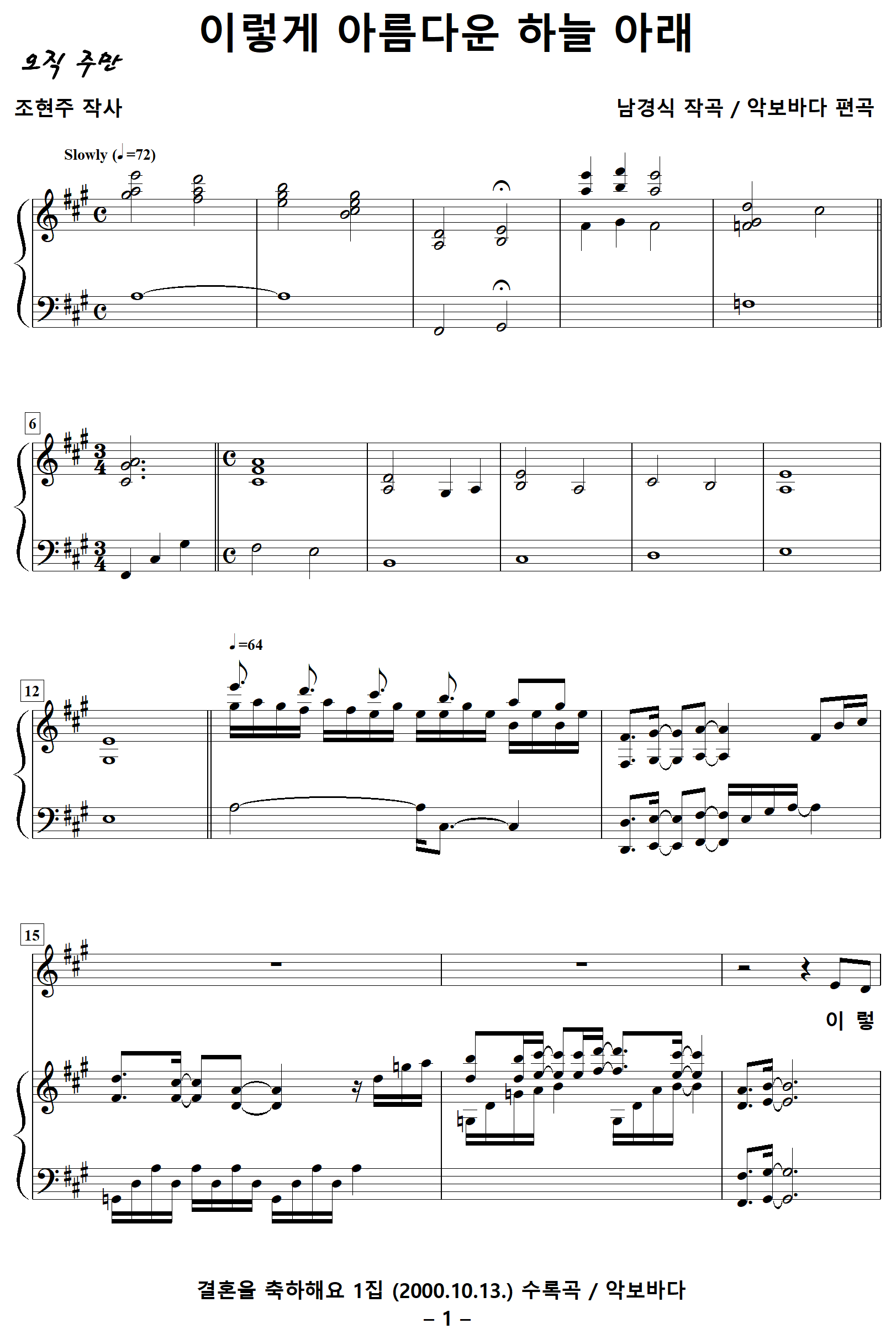출처 : 결혼을 축하해요 1집 (2000.10.13.) / 악보바다