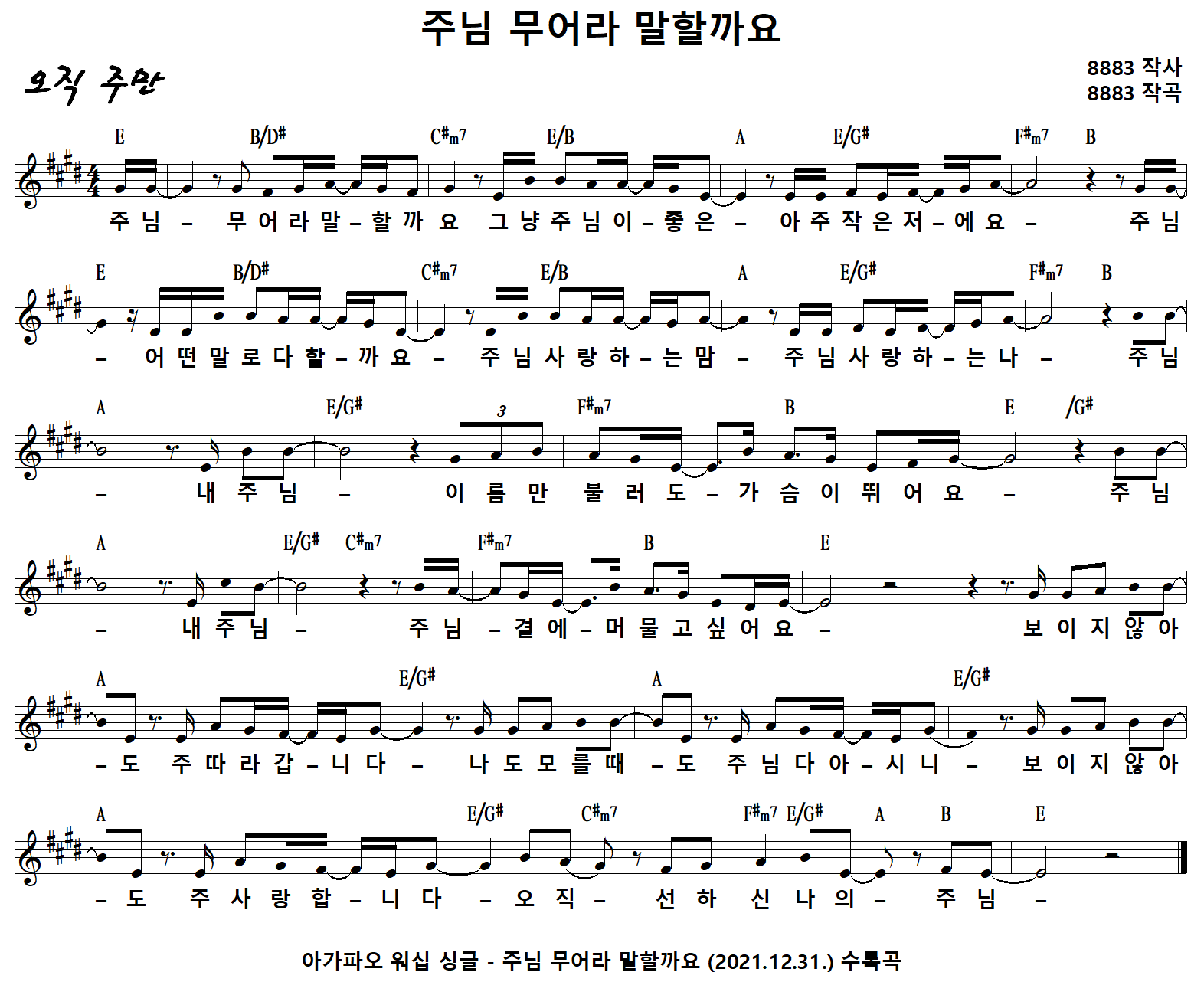 주님 무어라 말할까요 [아가파오워십] PDF 그림악보 다운받기