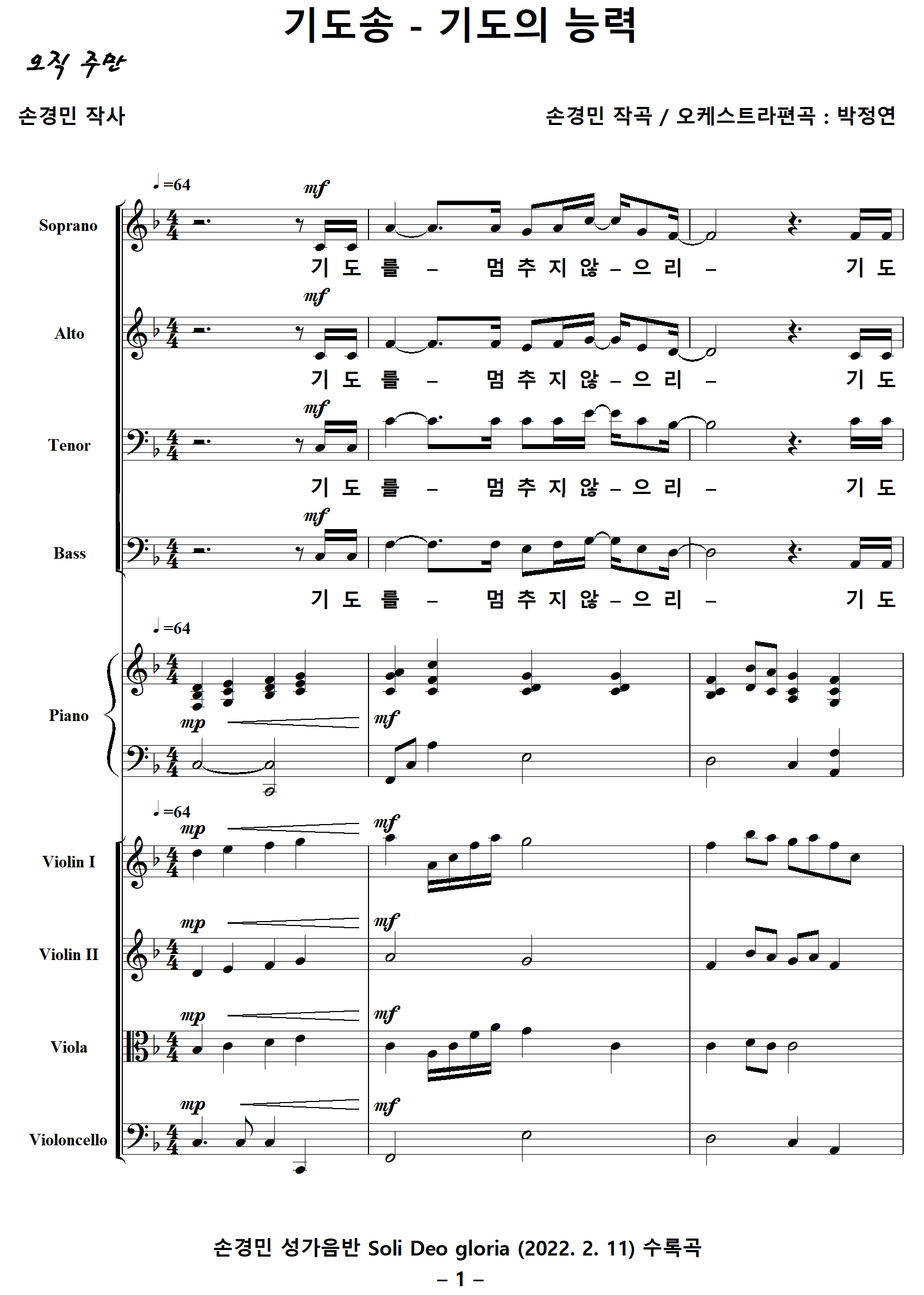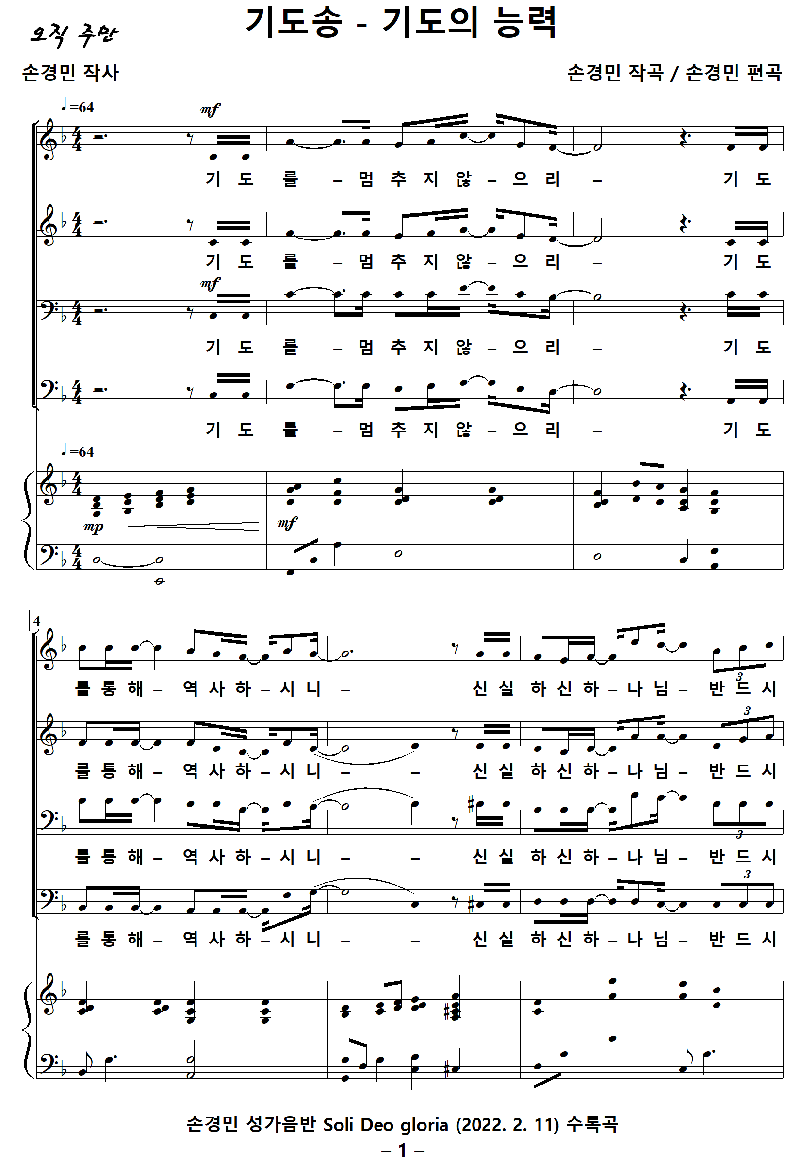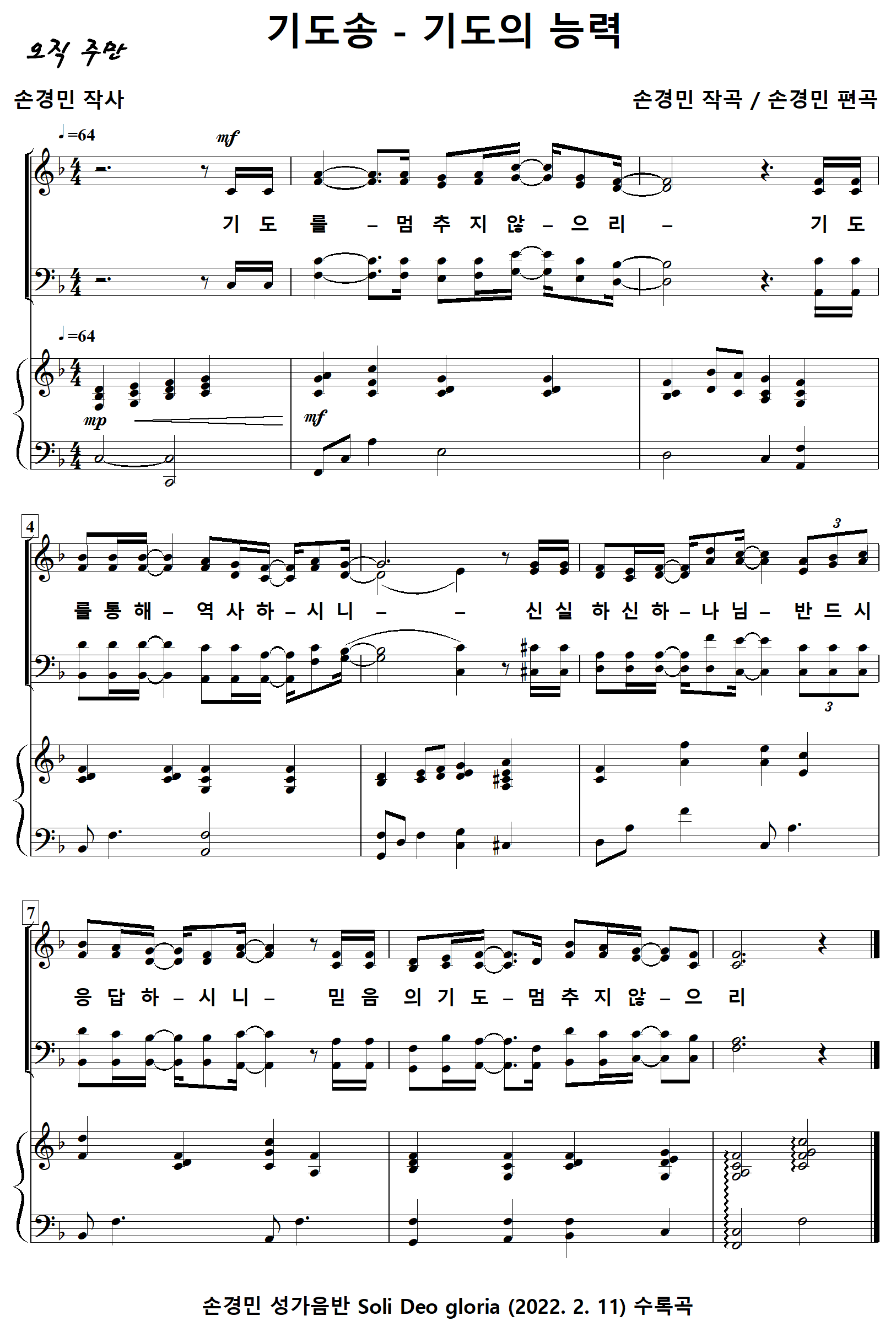 기도송 - 기도의 능력 / 기도할 때 상한 맘 (손경민, 혼성4부) NWC / PDF 오케스트라 악보 다운받기