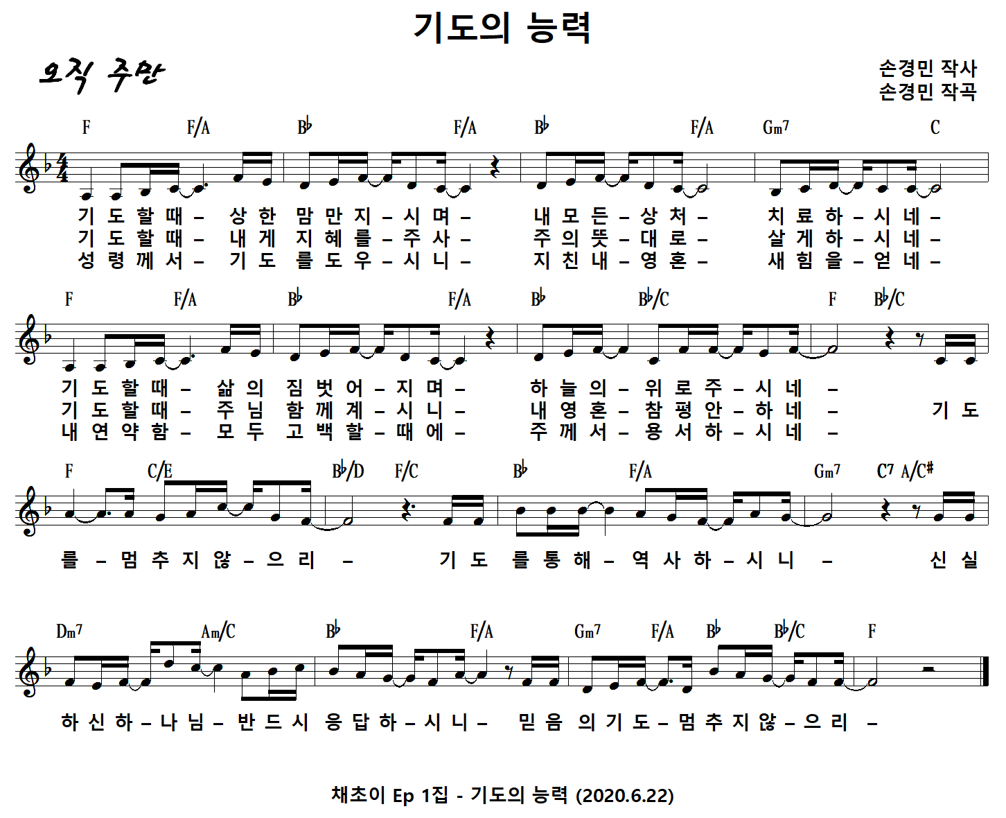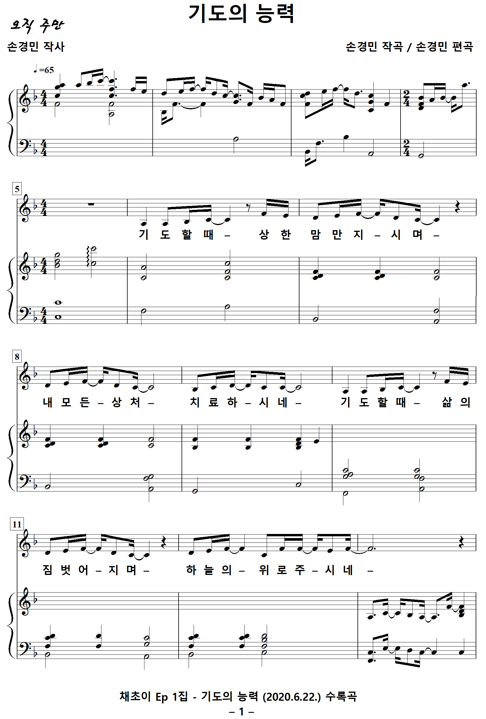 [CCM악보] 기도의능력 / 기도할때상한맘 [손경민 작사, 손경민 작곡]