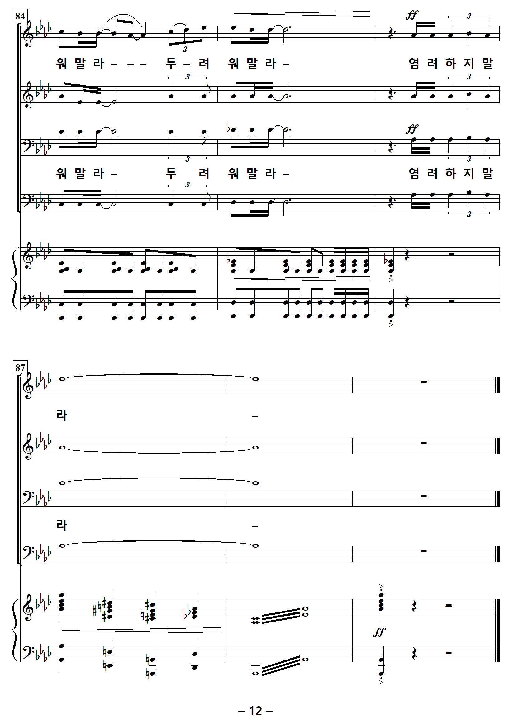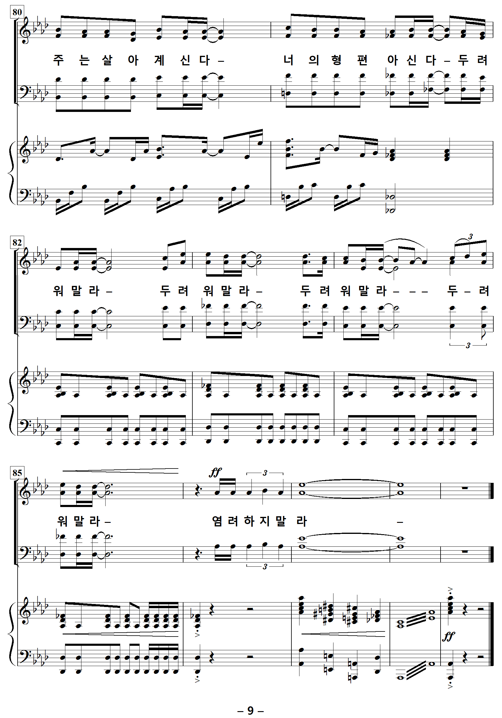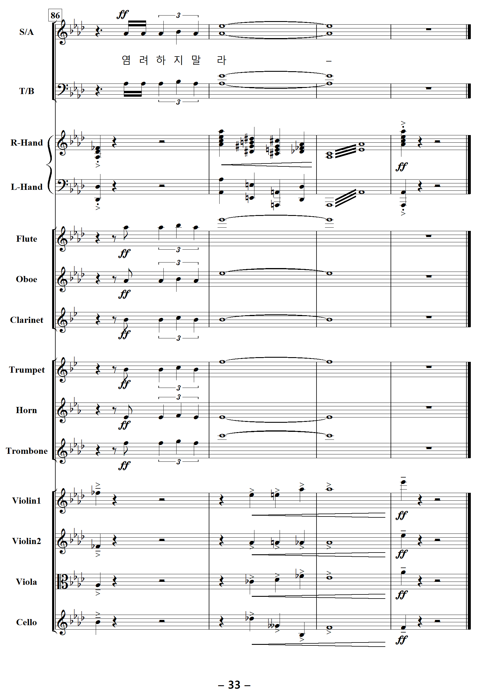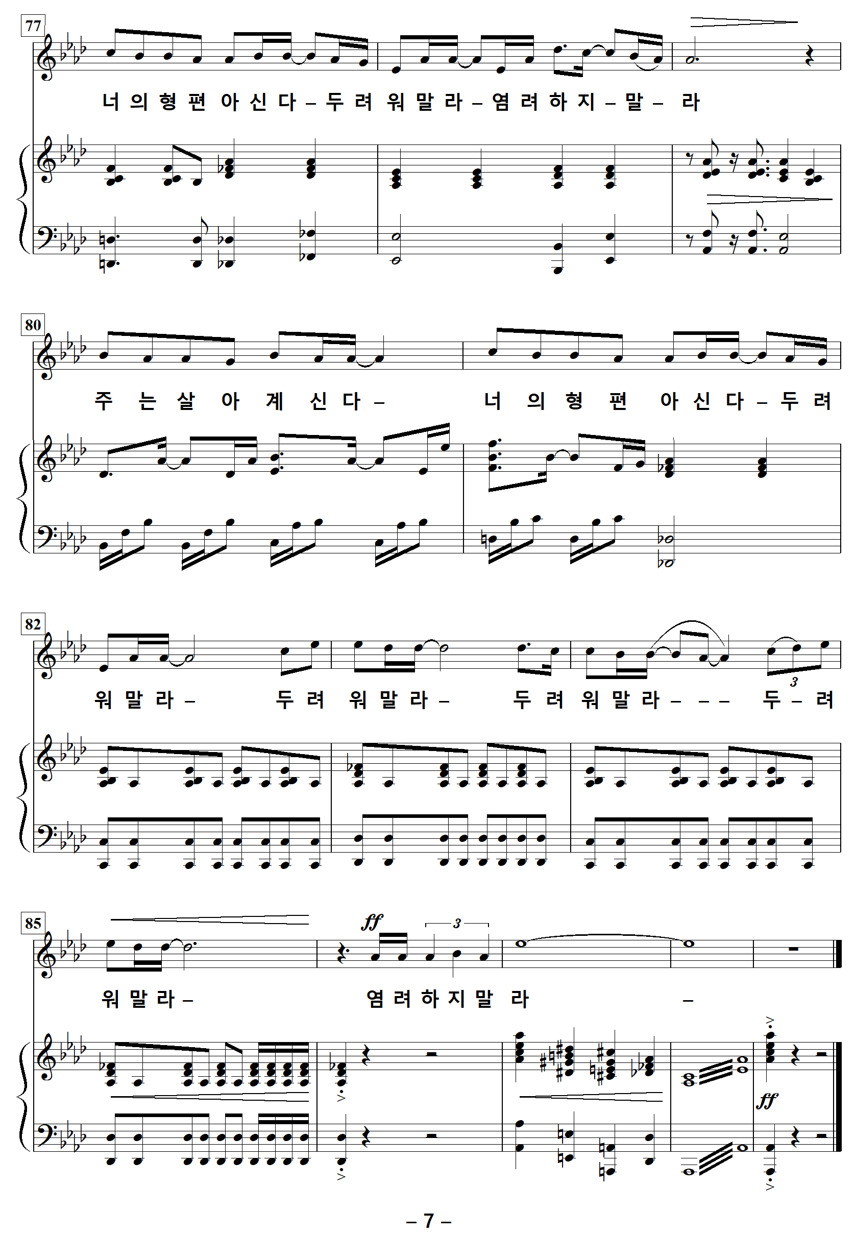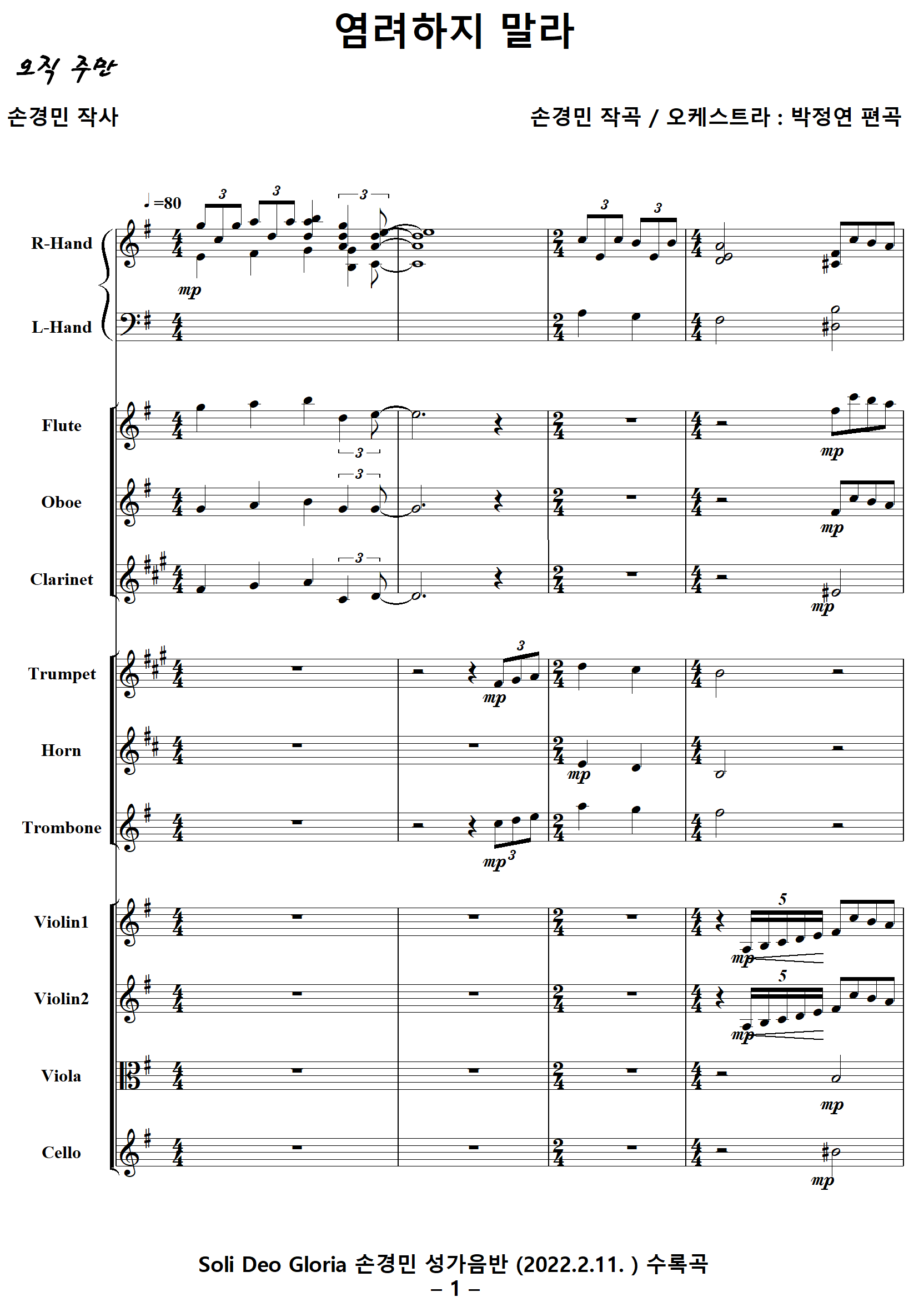 | 저작권자 손경민 목사님은 악보를 무료로 배포하고 계십니다. 고마운 마음에 후원하실 분은 아래 계좌로 후원해 주시기 바랍니다. 후원계좌 하나은행 659-910515-17207 손경민 (피아노반주 편곡자) 카카오뱅크 3333110232243 박정연 (오케스트라악보 편곡자) |
