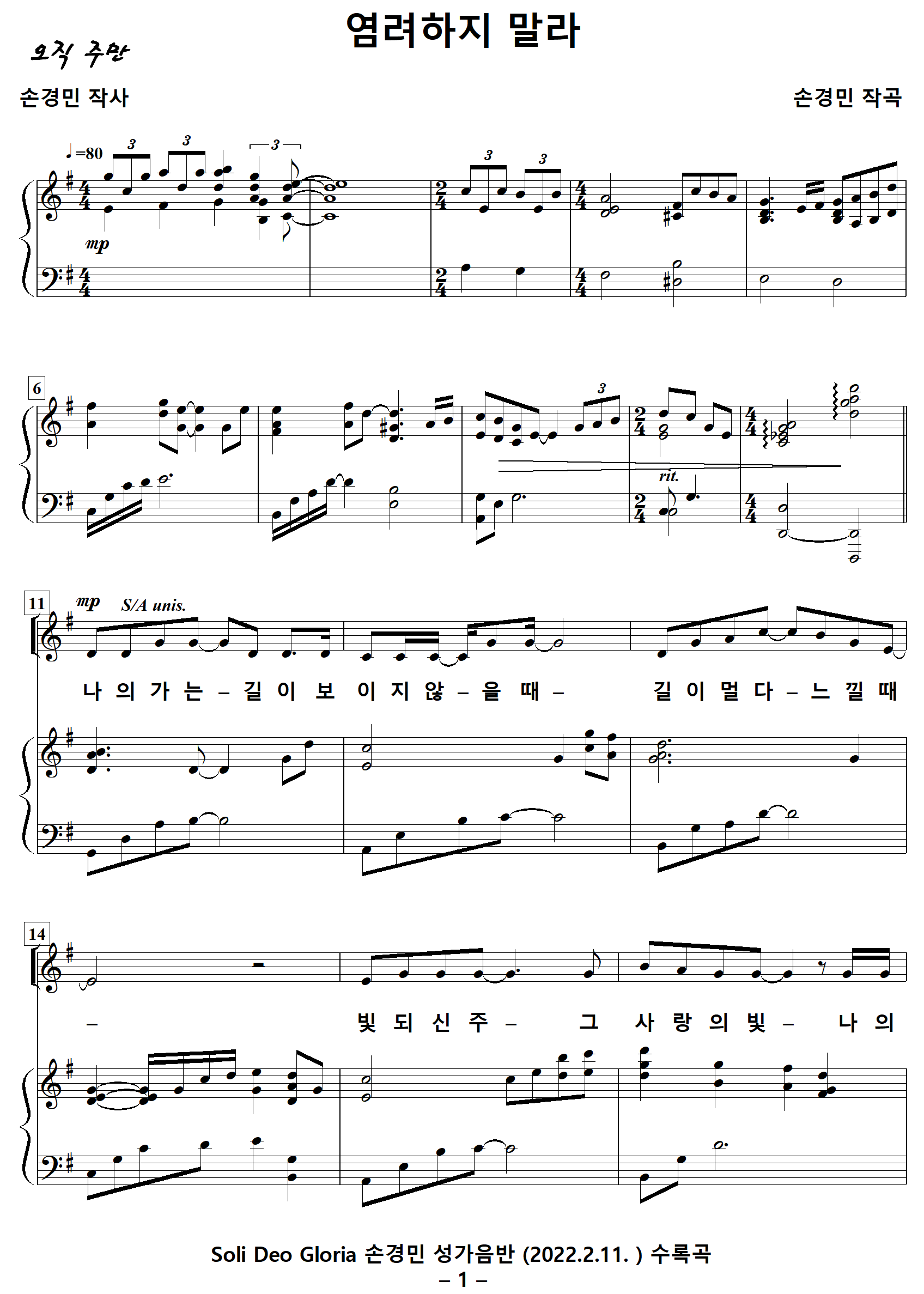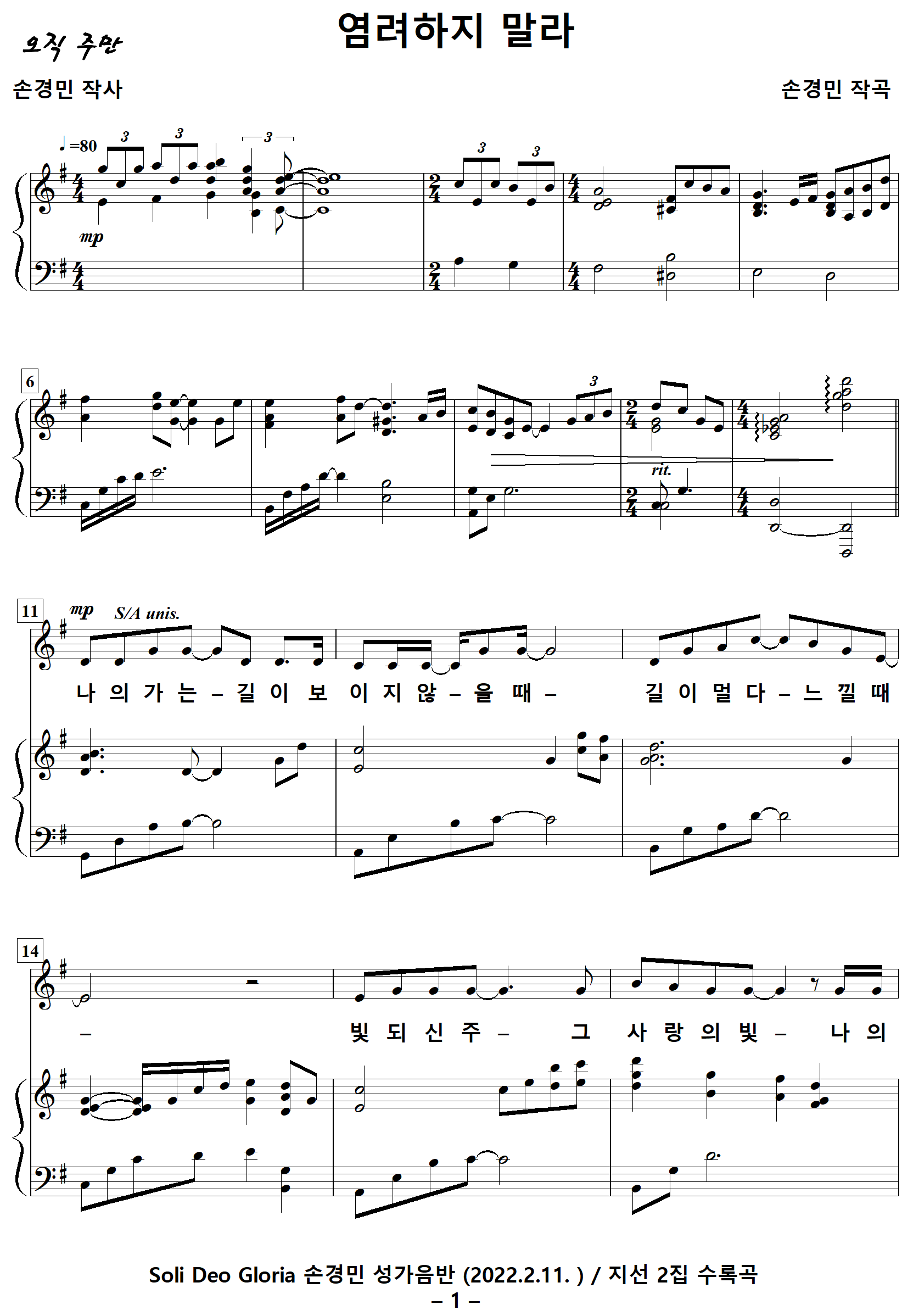 출처 : Soli Deo Gloria 손경민 성가음반 (2022.2.11. )