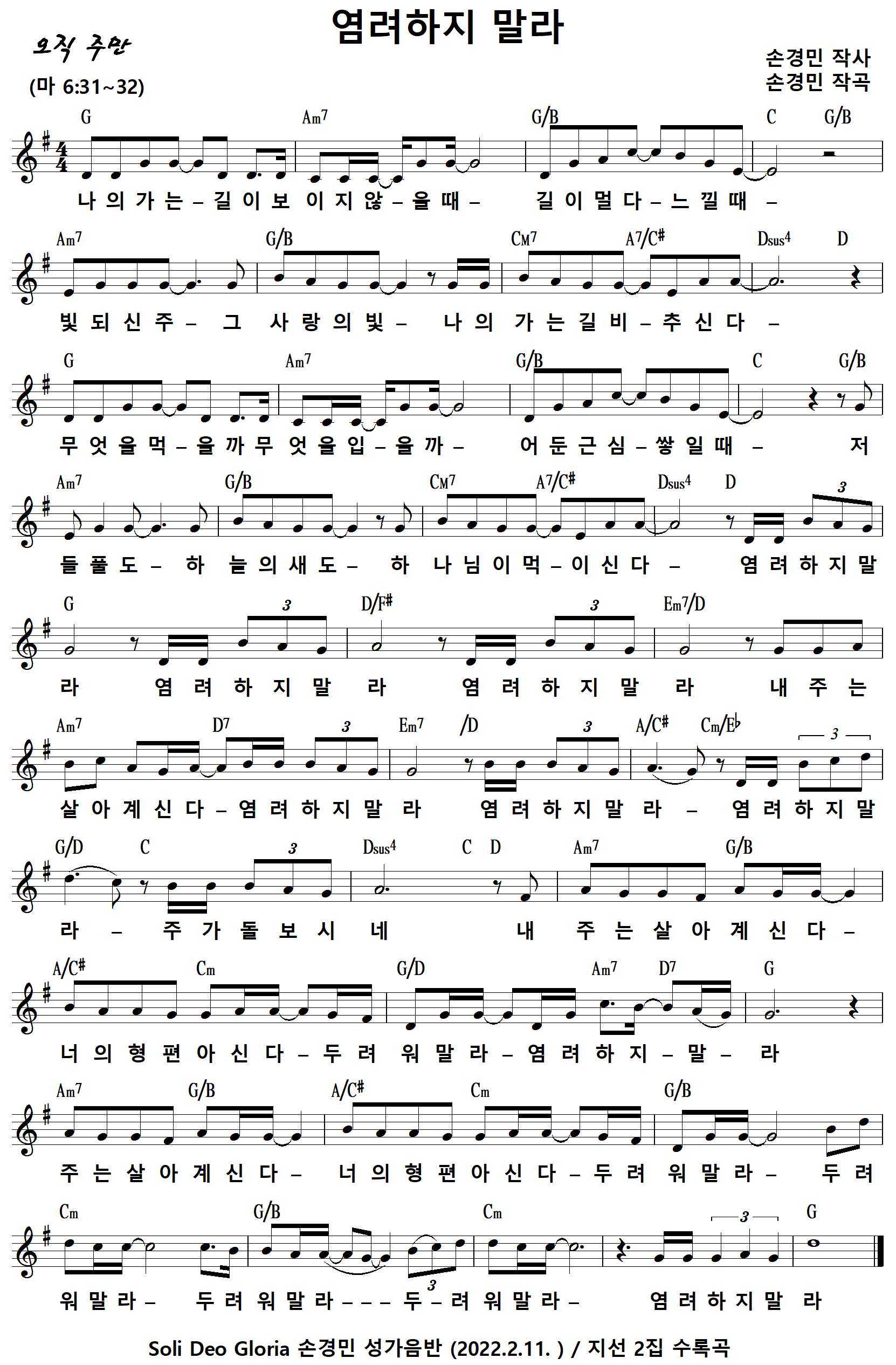 염려하지 말라 / 나의 가는 길이 보이지 않을 때 (손경민) CCM PDF 그림악보 다운받기