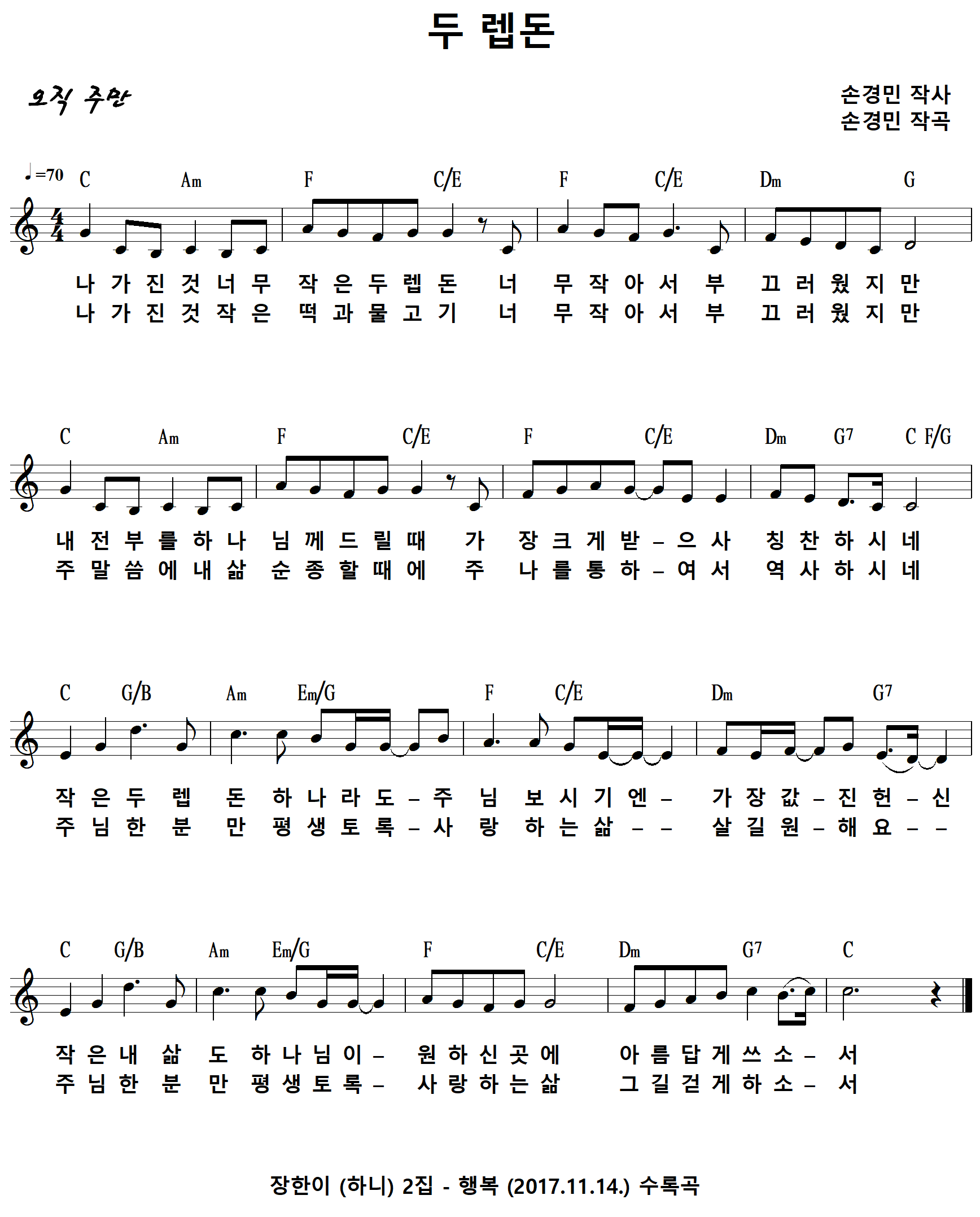 두 렙돈 / 나 가진 것 너무 작은 두 렙돈 (손경민) PDF 그림악보 다운받기