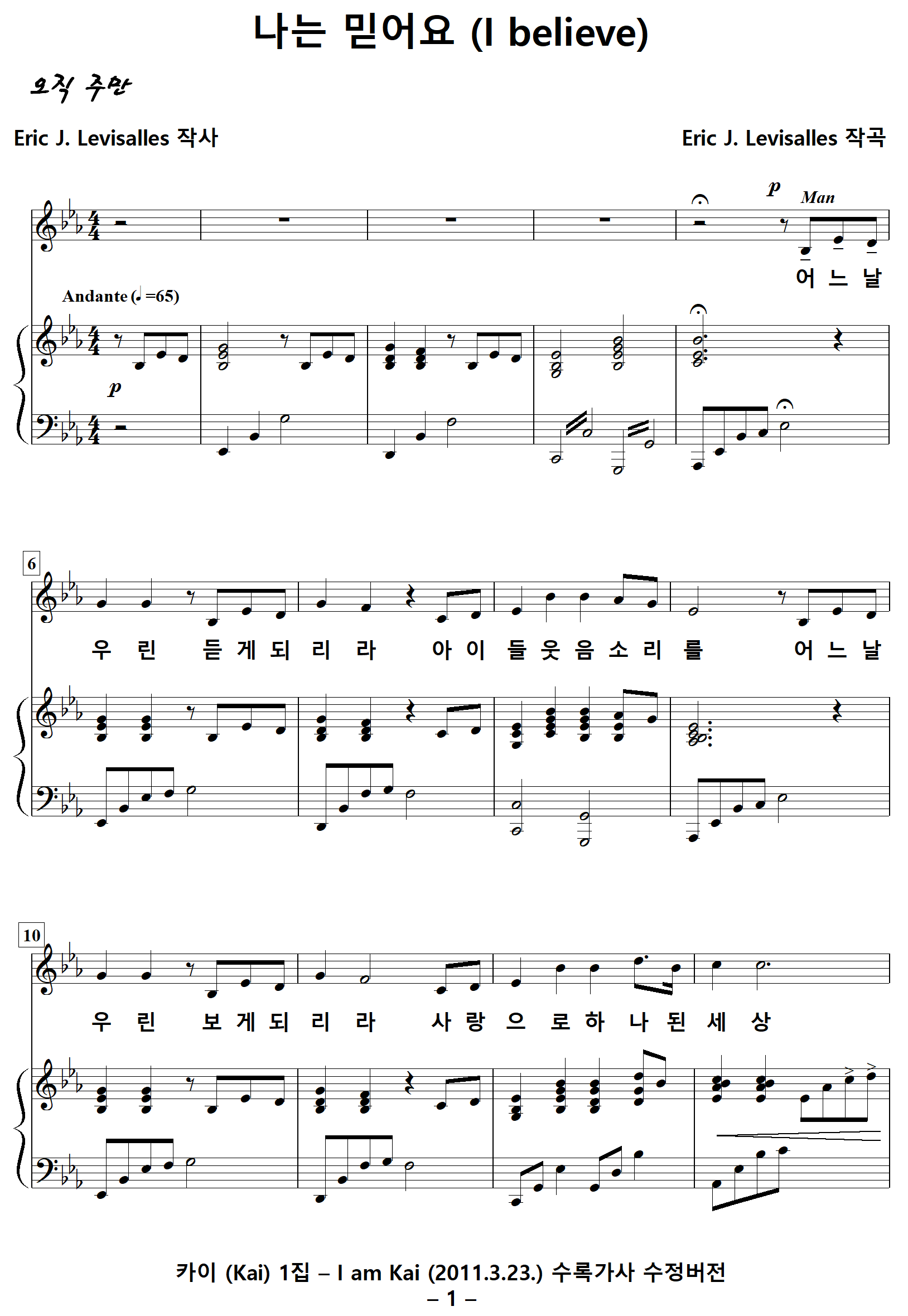 [성가악보] 난믿어요 / 어느날우린듣게되리라 [Eric J. Levisalles 작사, Eric J. Levisalles작곡]