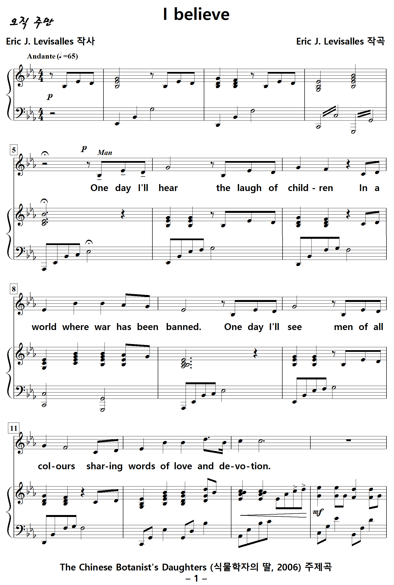 [혼성듀엣]I believe / One day I'll hear (Eric J. Levi) [A. Bocelli, K. Jenkins]