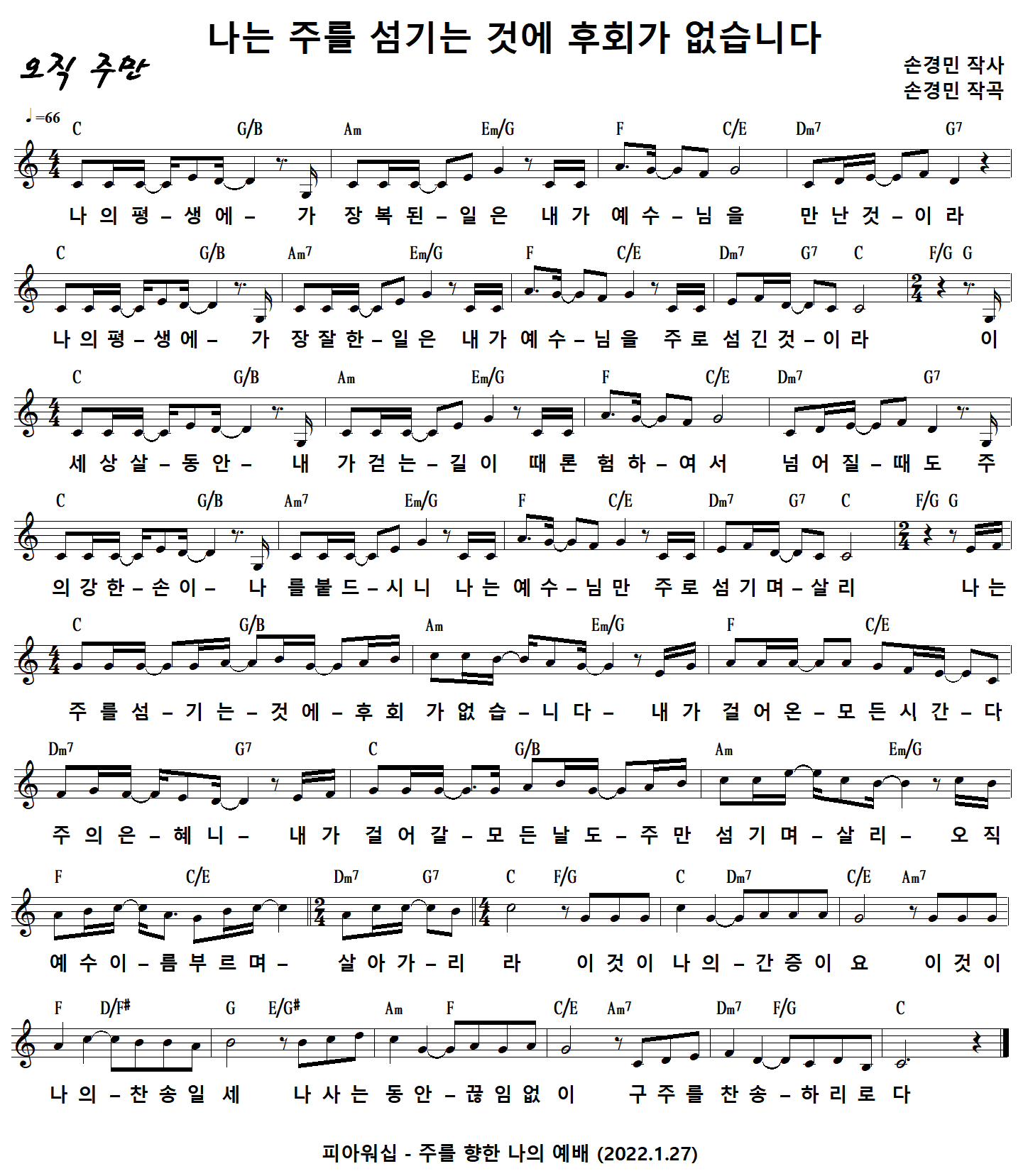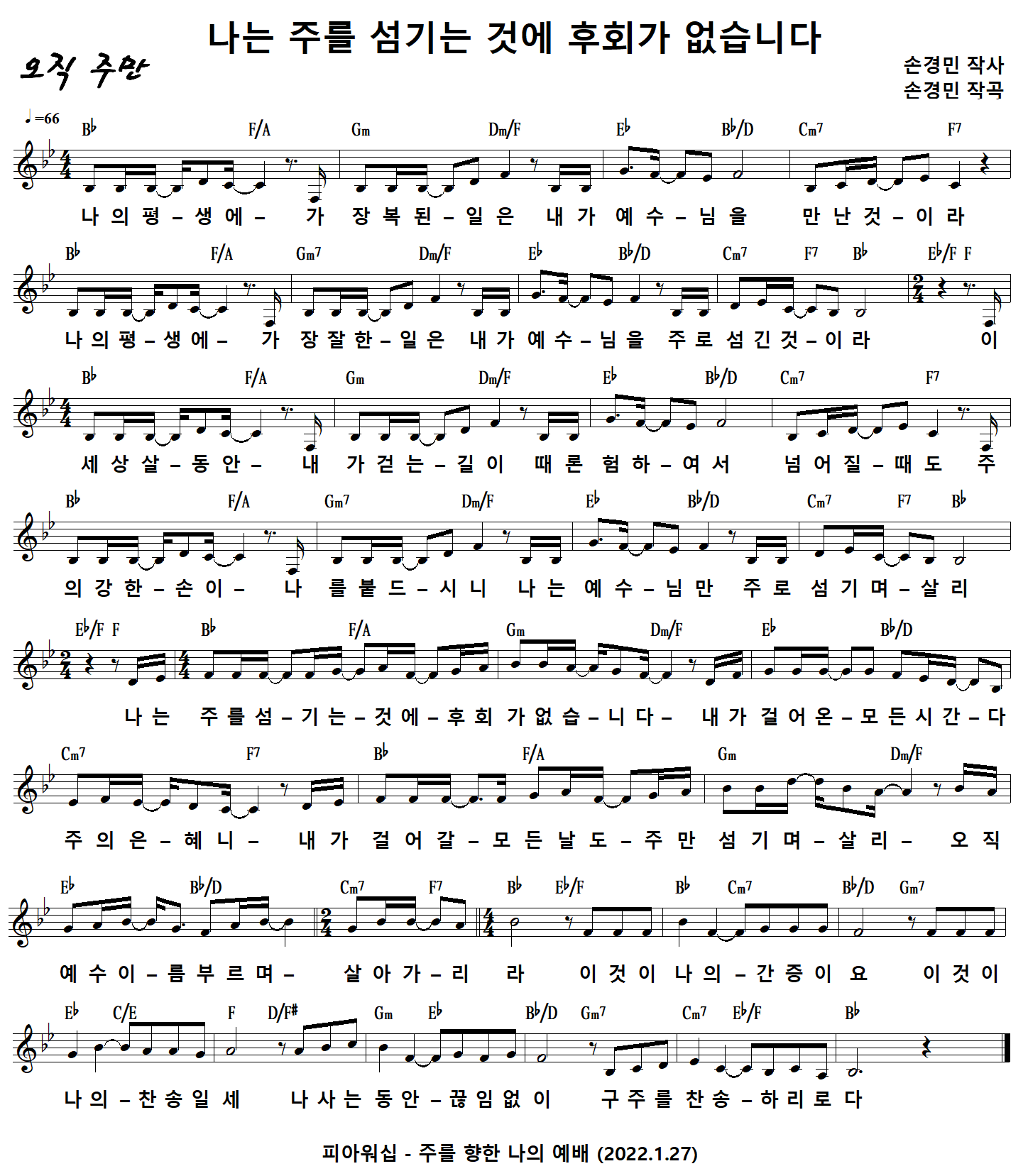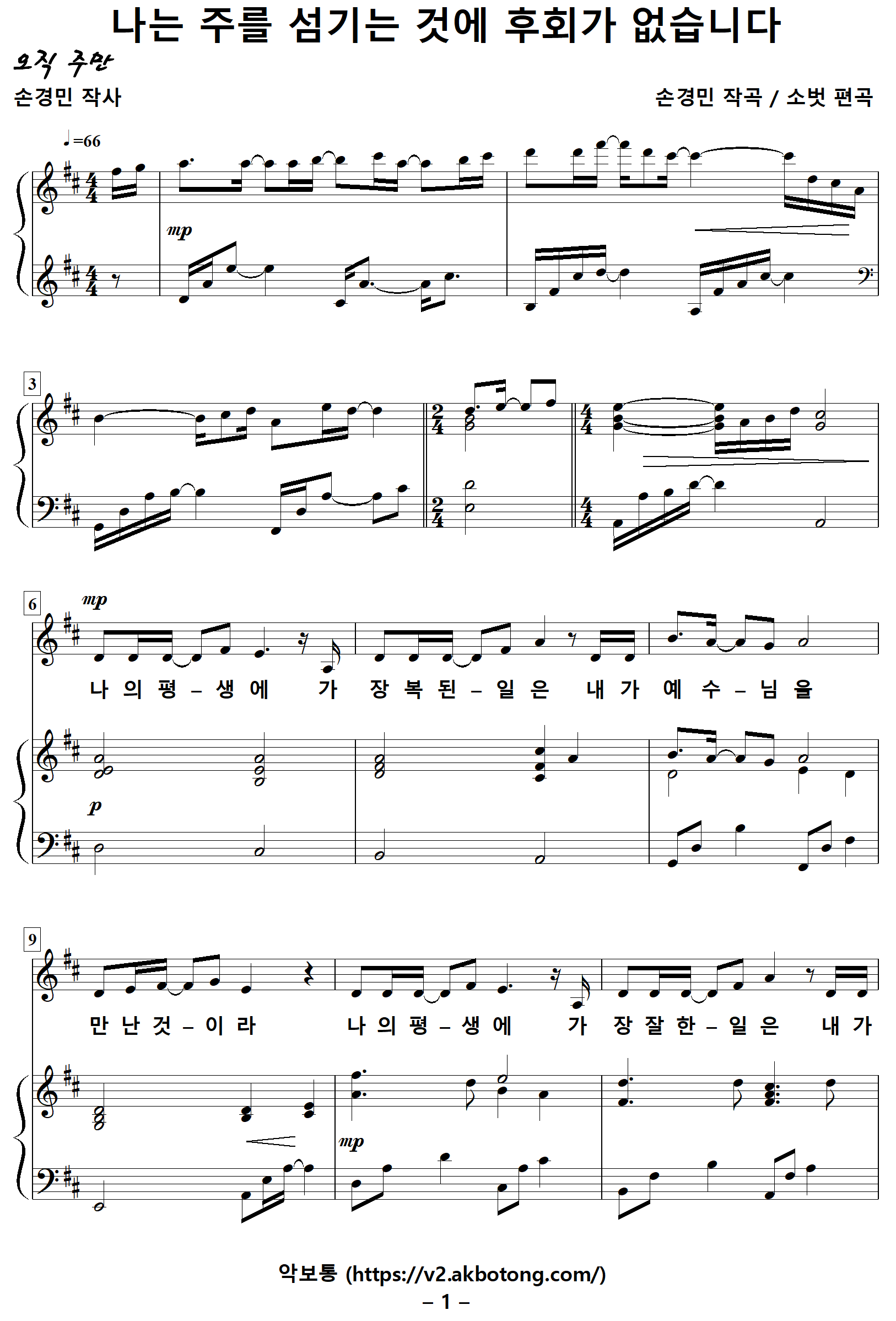 [성가악보] 나는주를섬기는것에후회가없습니다 / 나의평생에가장복된일은 [손경민 작사, 손경민 작곡, 소벗 편곡]