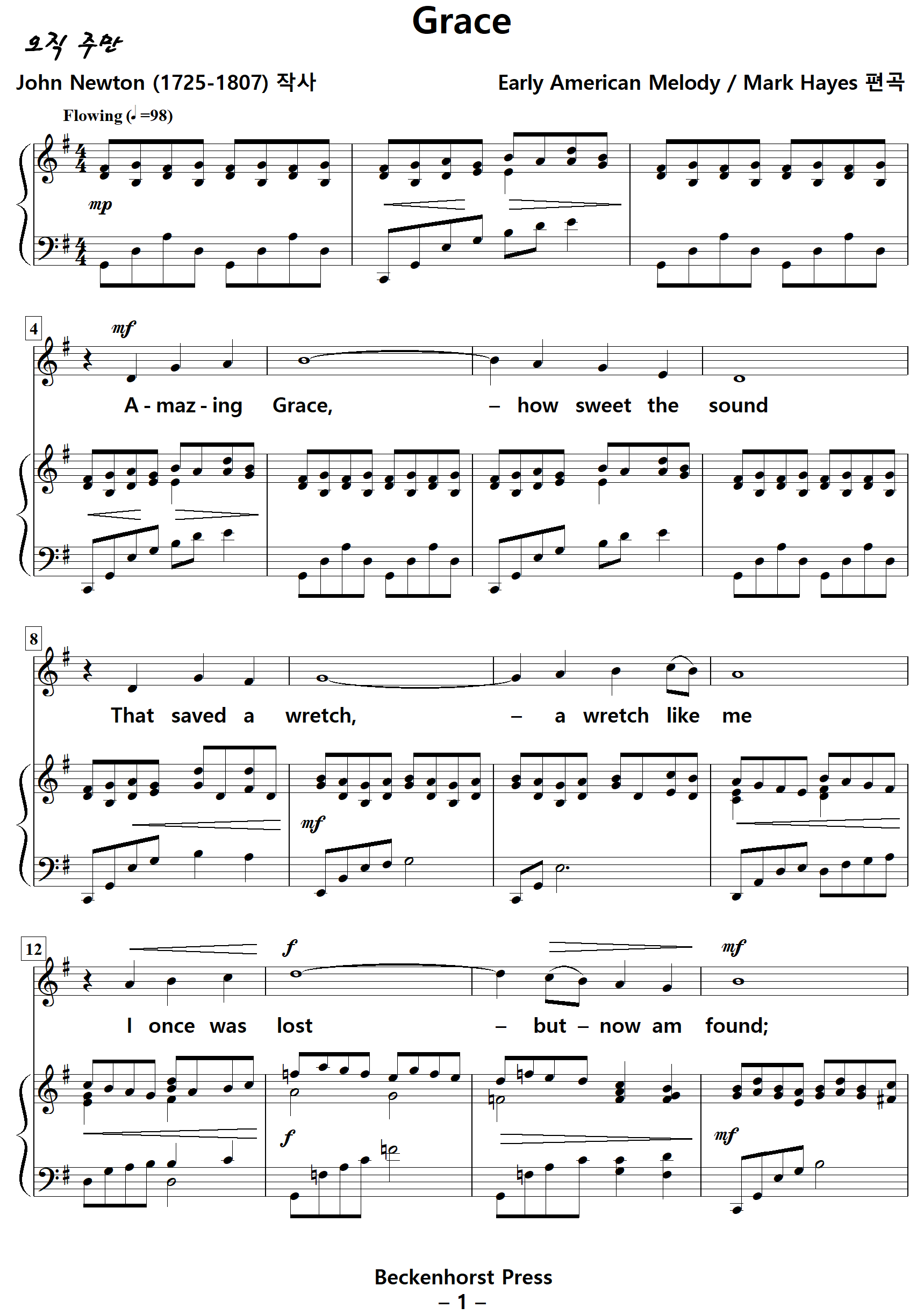 [찬양가사] Grace / Amazing Grace [John Newton 작사, Mark Hayes 편곡]