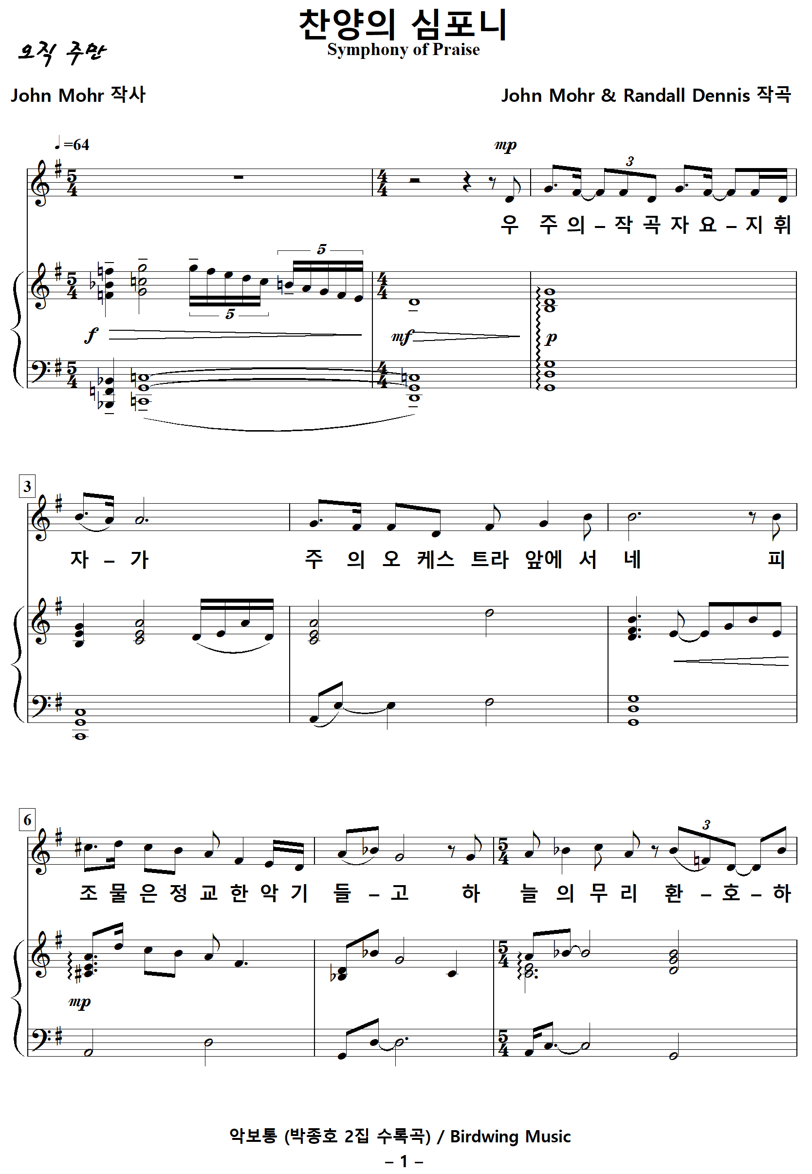[찬양가사] 찬양의심포니 / 우주의작곡자요지휘자가 [John Mohr 작사, John Mohr & Randall Dennis 작곡]