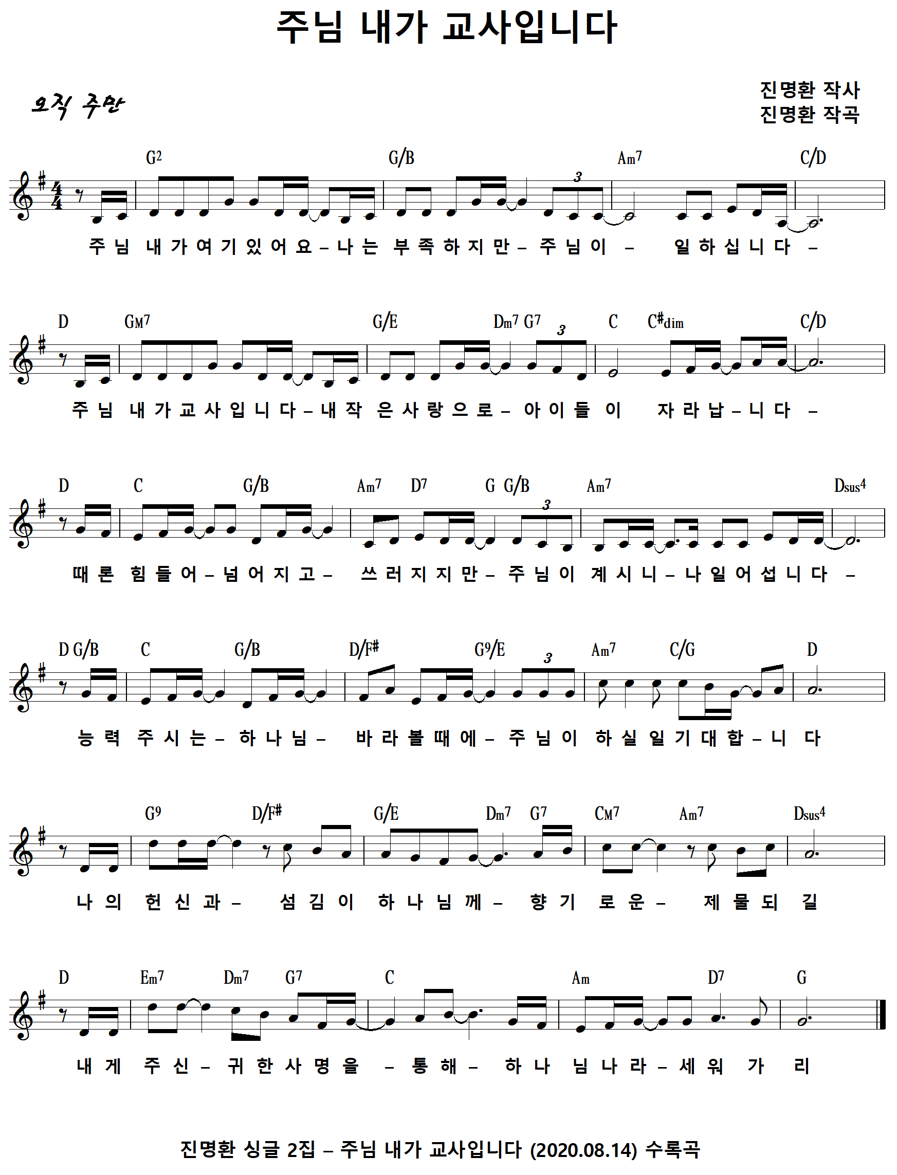 주님 내가 교사입니다 / 주님 내가 여기 있어요 [진명환 싱글 2집] PDF 그림악보 다운받기