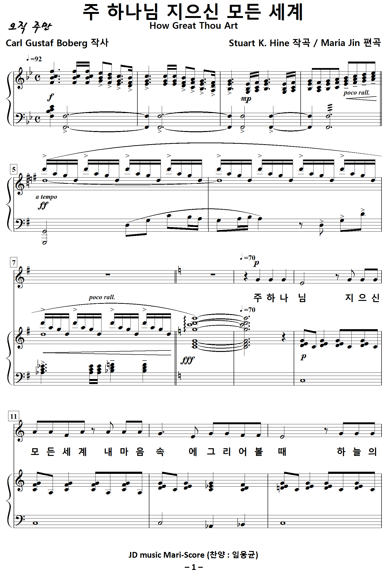 [찬양가사] 주하나님지으신모든세계 [C. G. Boberg 작사, Stuart K. Hine 작곡, Maria Jin 편곡]
