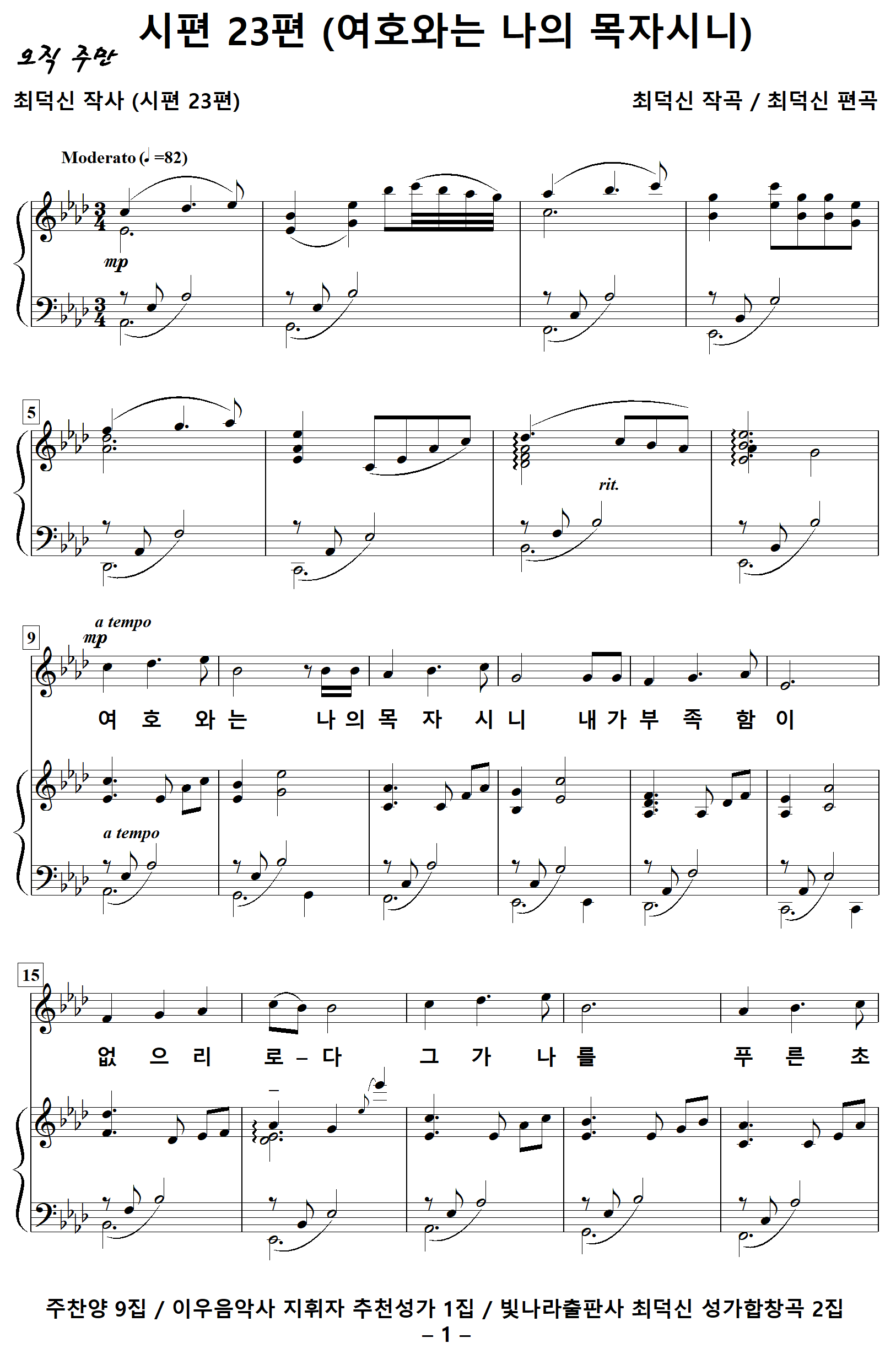 [성가악보] 시편23편 / 여호와는나의목자시니