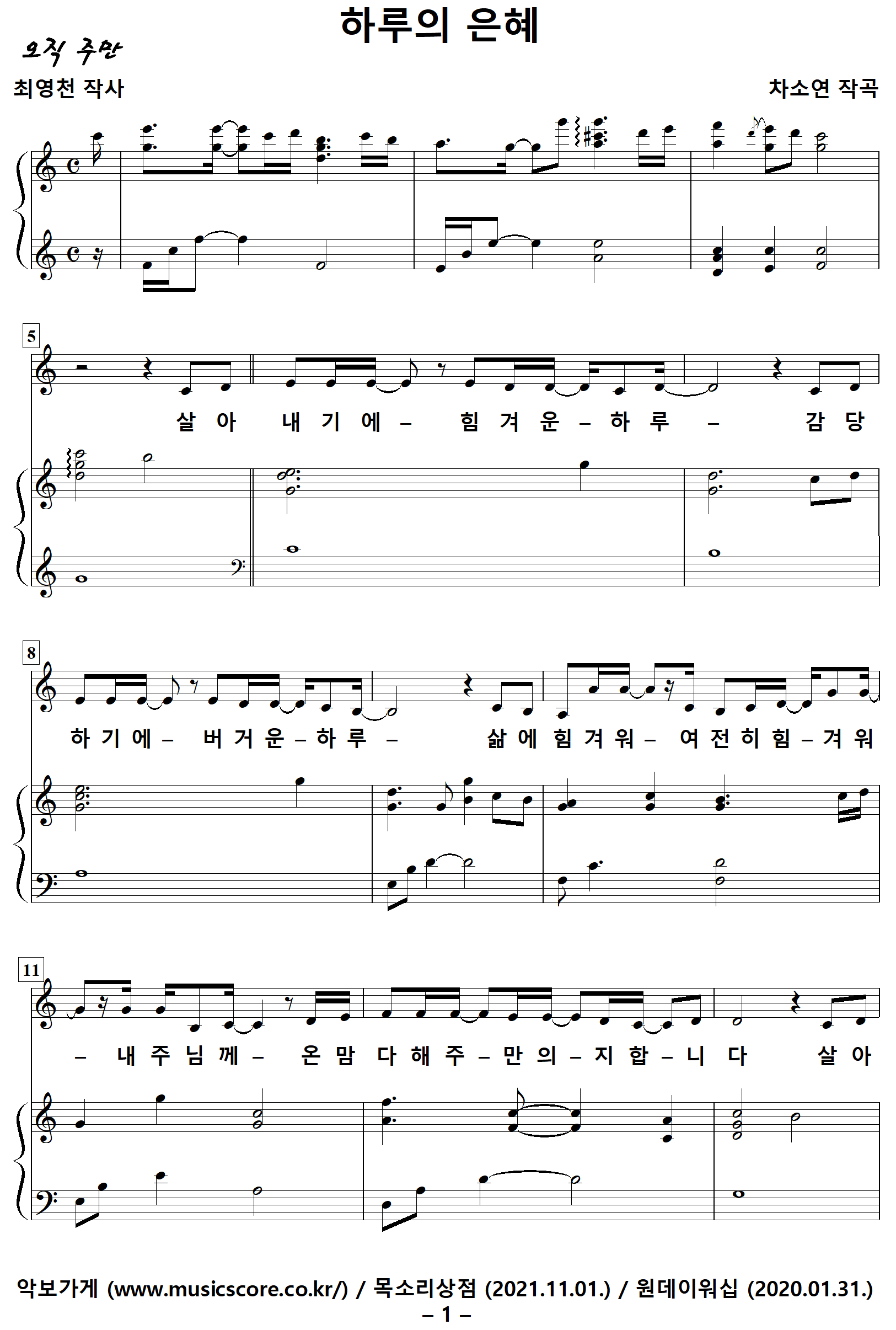 출처 : 악보가게 (http://www.musicscore.co.kr/) / 목소리상점 (2021.11.01.) / 원데이워십 (2020.01.31.)