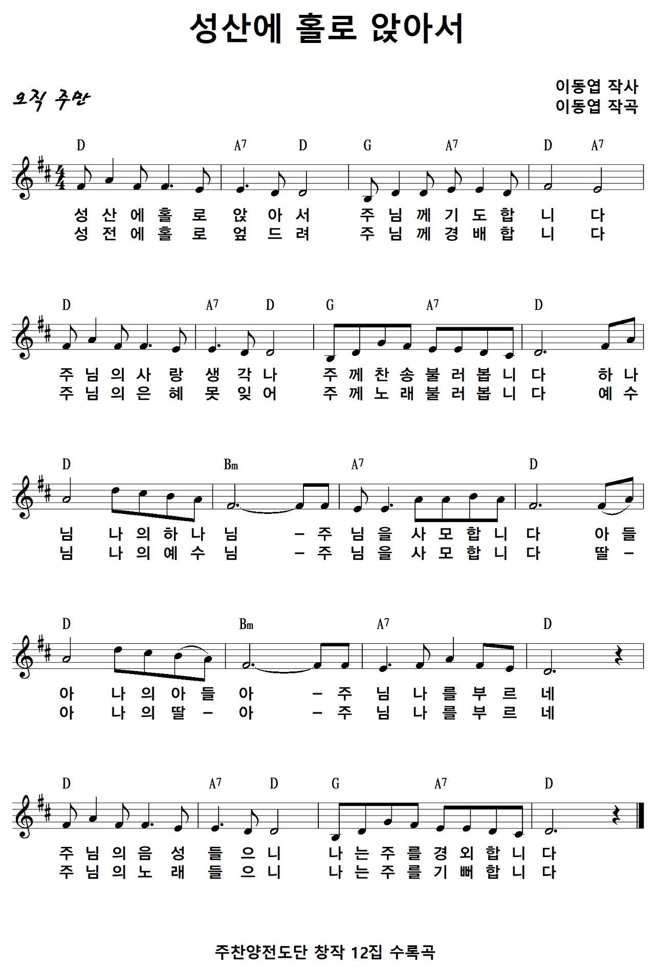 성산에 홀로 앉아서 [주찬양전도단 12집] D키 PDF 그림악보 다운받기