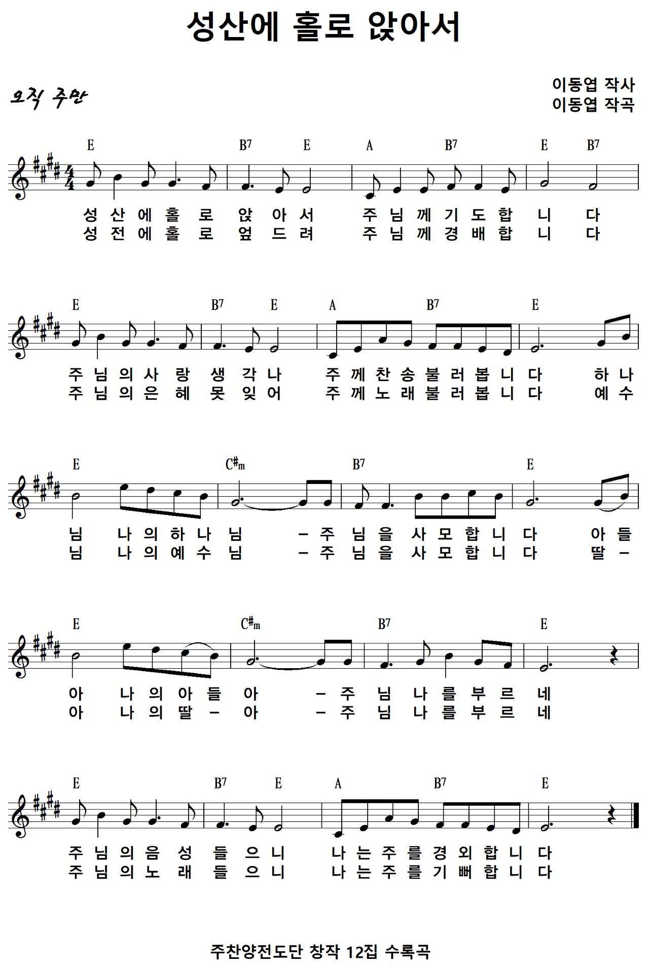 성산에 홀로 앉아서 [주찬양전도단 12집] E키 PDF 그림악보 다운받기