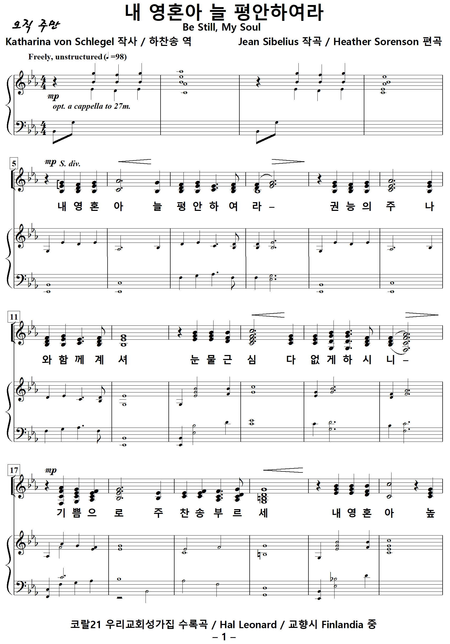 출처 : 코랄21 우리교회 성가집 - 십자가만 바라보네 / Hal Leonard / 교향시 Finlandia 중
