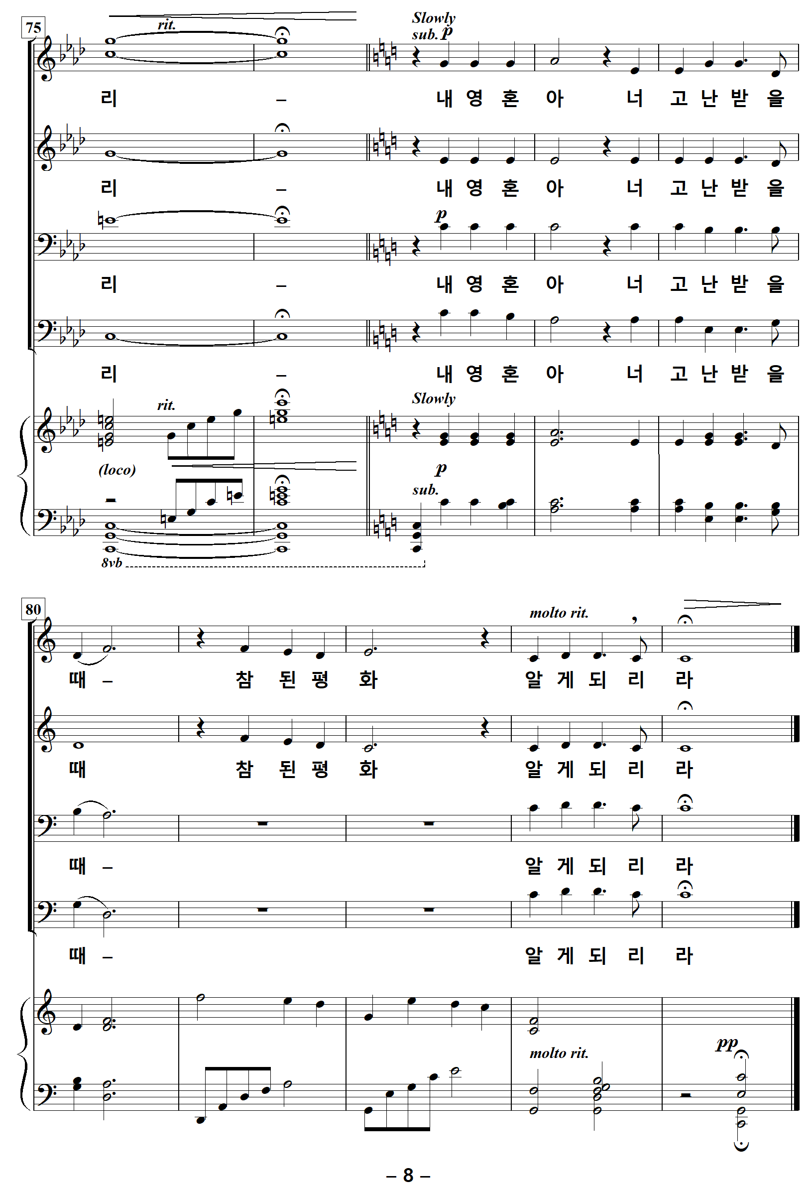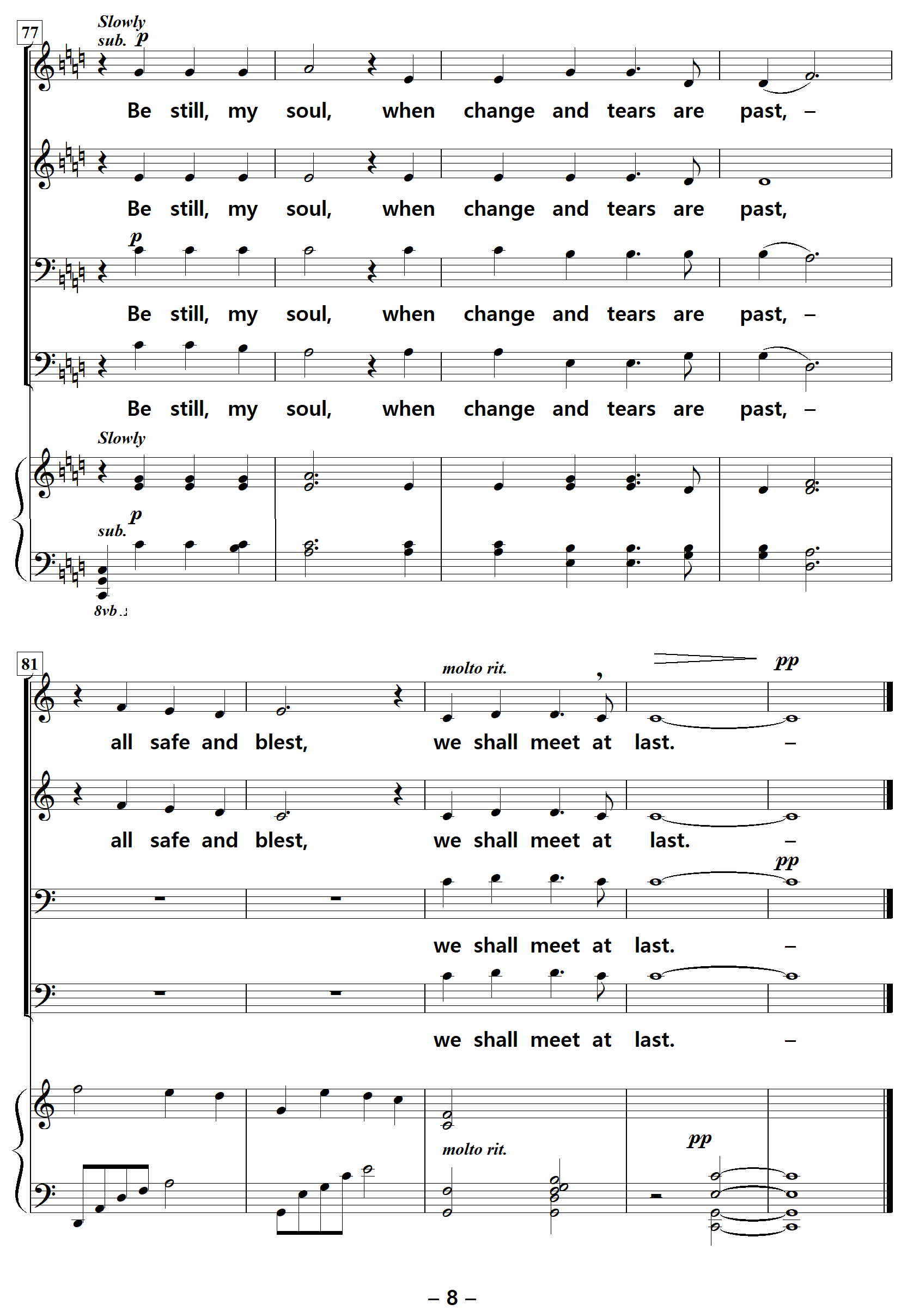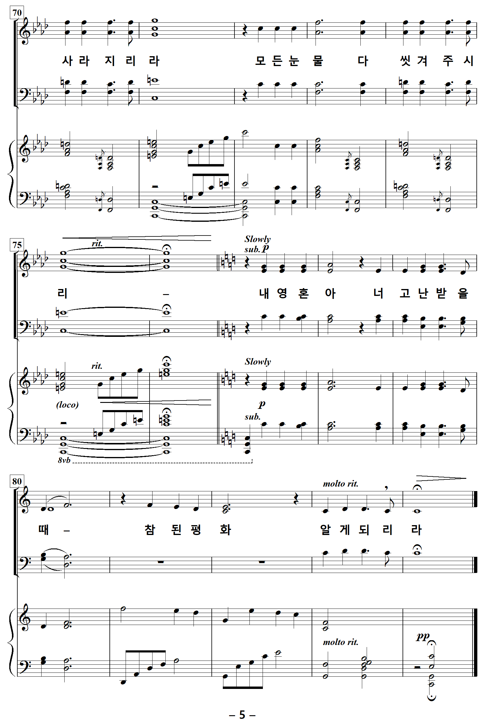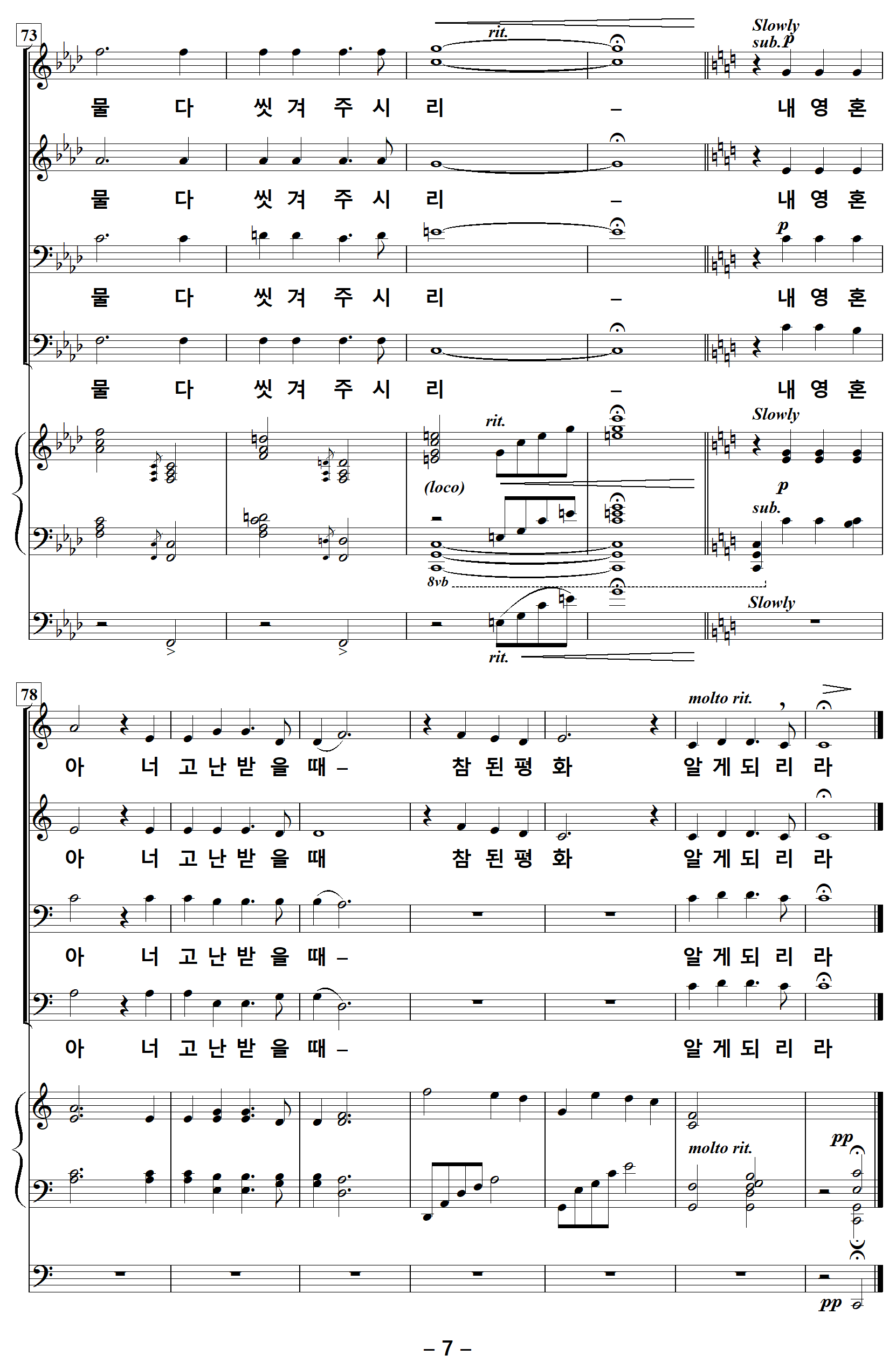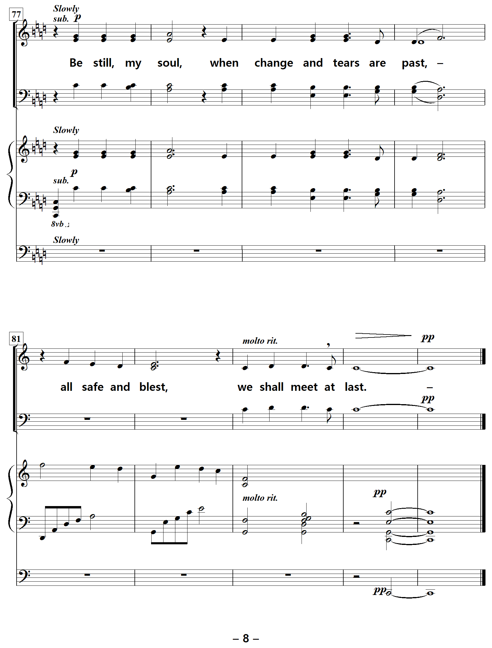** 이 악보는 동일악보 다른 번역가사로 코랄21 출판사에서 "내 영혼아 늘 평안하여라"란 제목으로도 출시되어 있습니다.