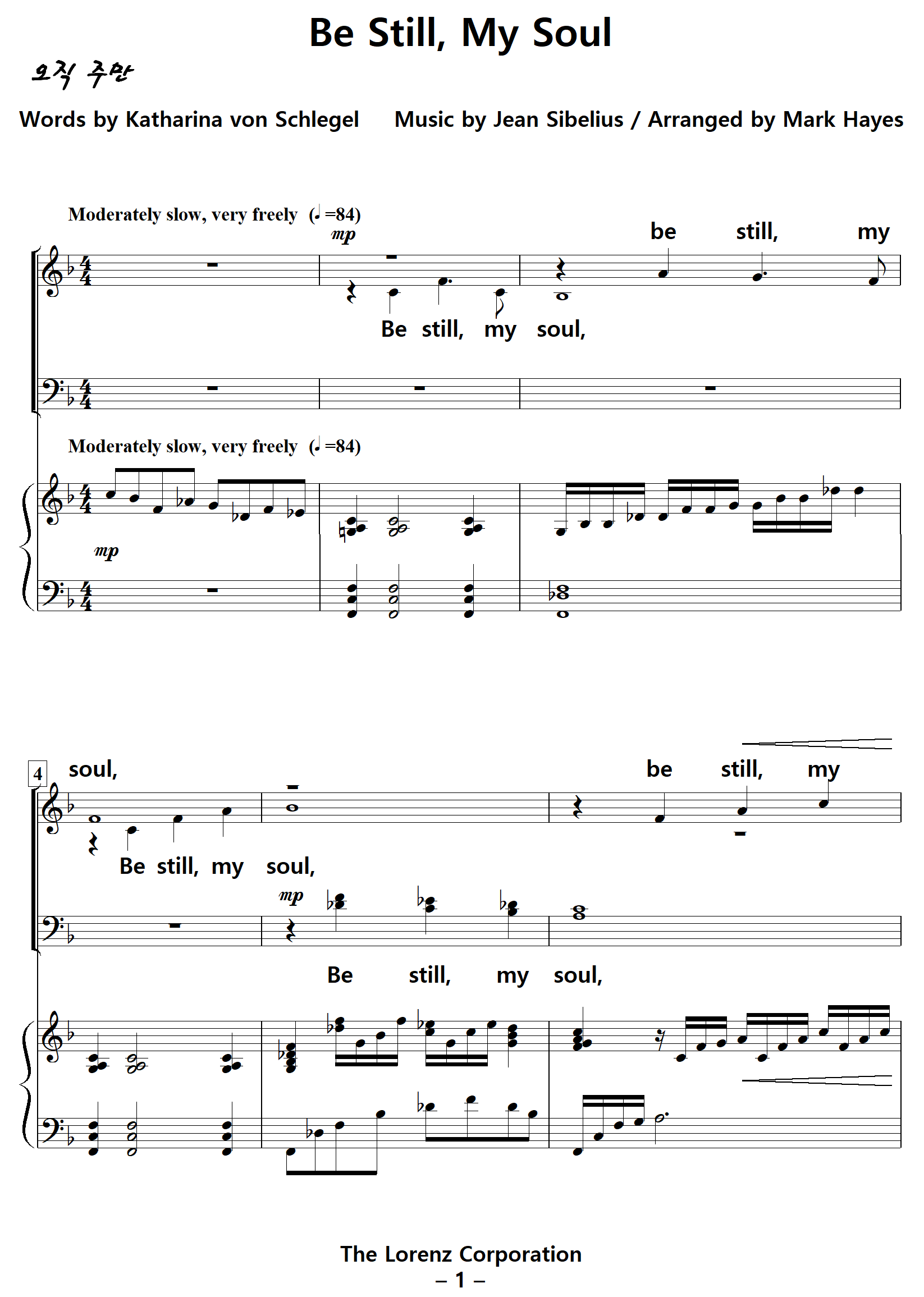[찬양가사] Be Still My Soul [katharina von schlegel 작사, Jean Sibelius 작곡, Mark Hayes 편곡]