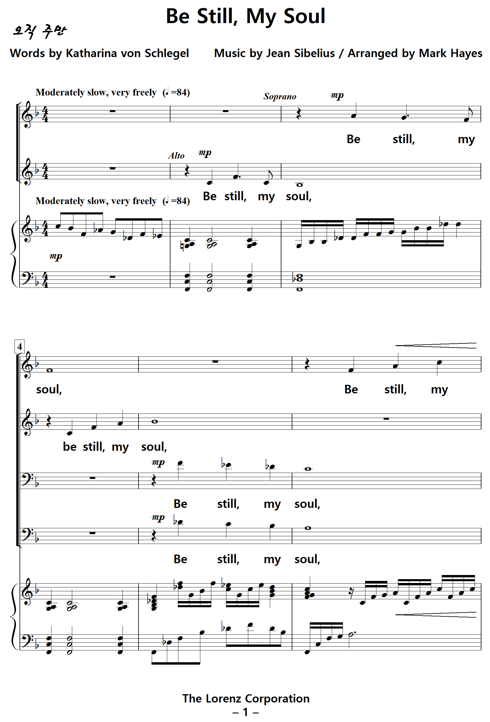 Be Still My Soul (Mark Hayes) [Lorenz Choir] 원곡 찬양듣기