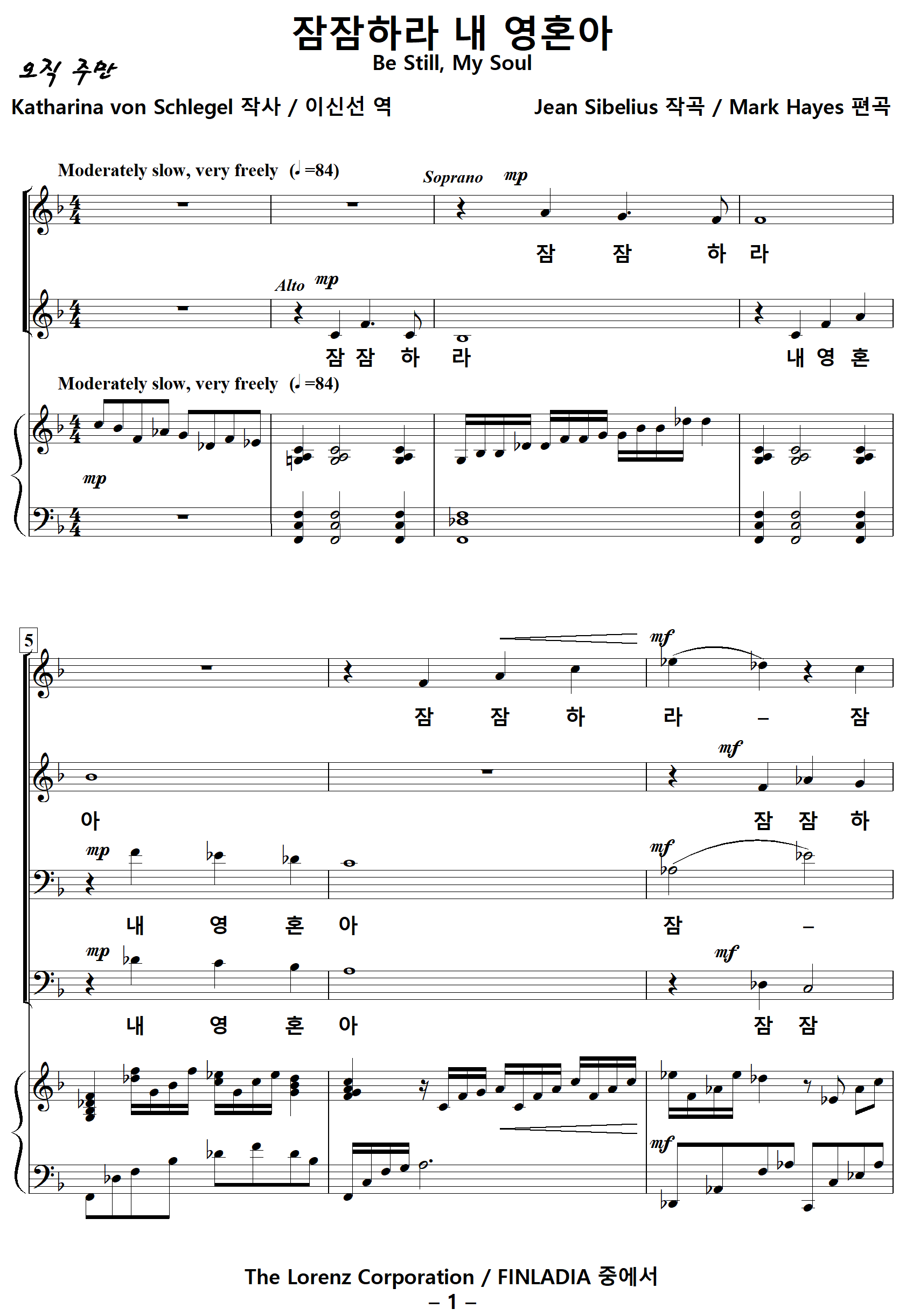 [성가악보] Be Still My Soul / 잠잠하라내영혼아 / 잠잠하라주곁에계시니