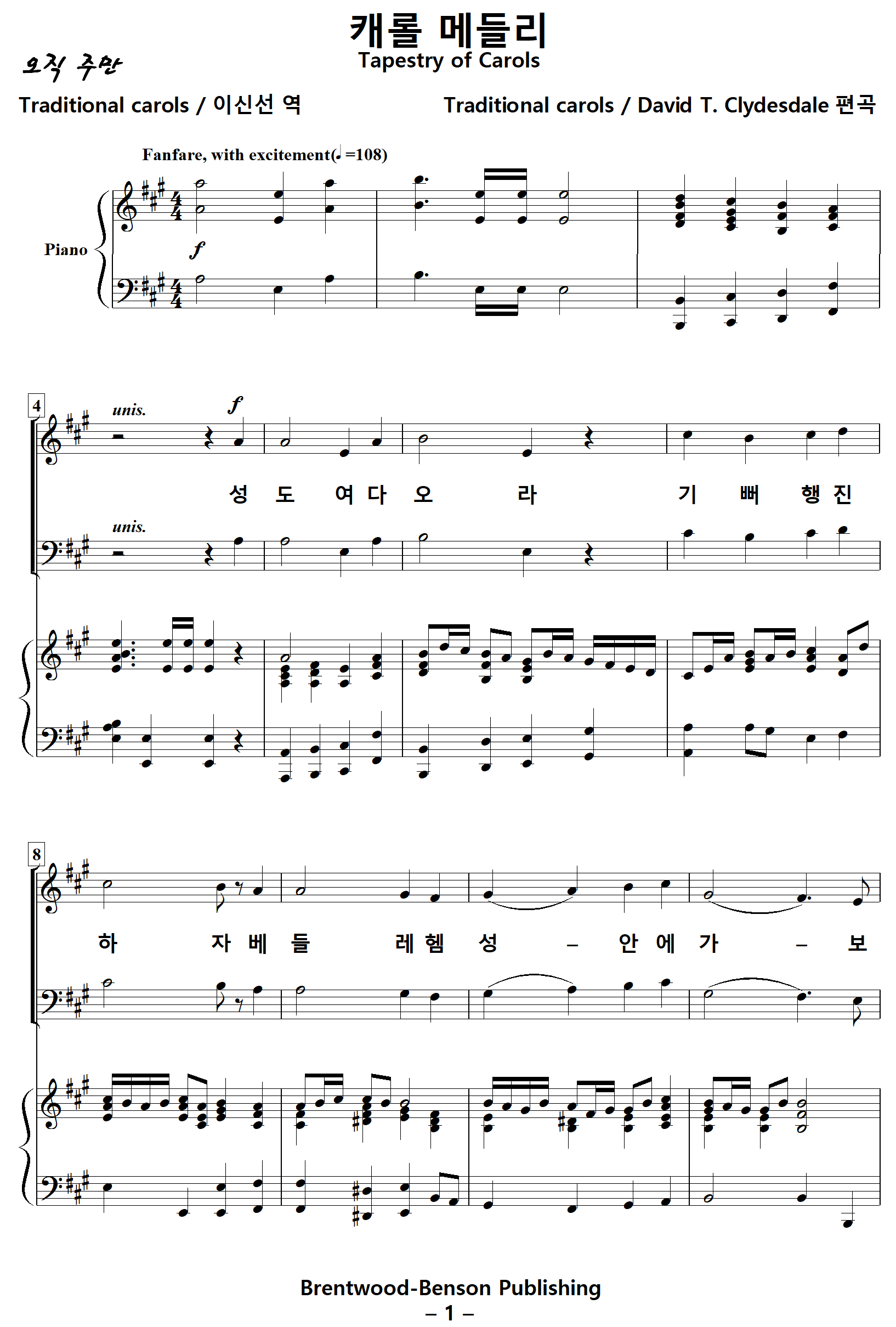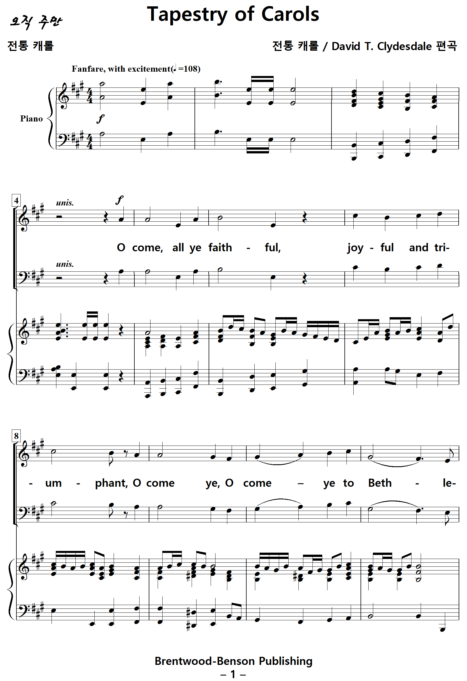 [성가악보] Tapestry of Carols / O come all ye faithful [David T. Clydesdale 편곡]