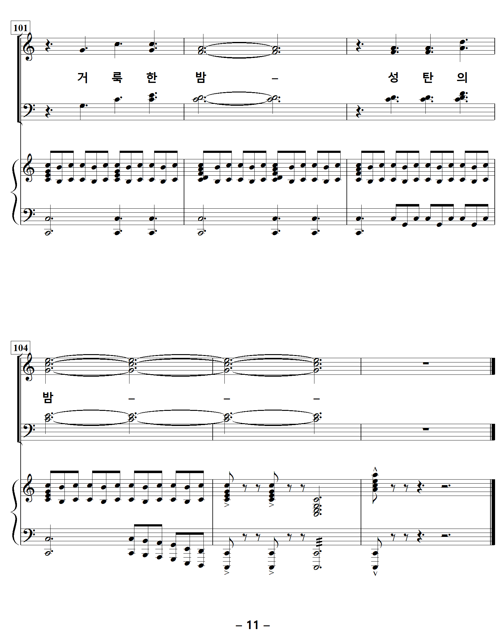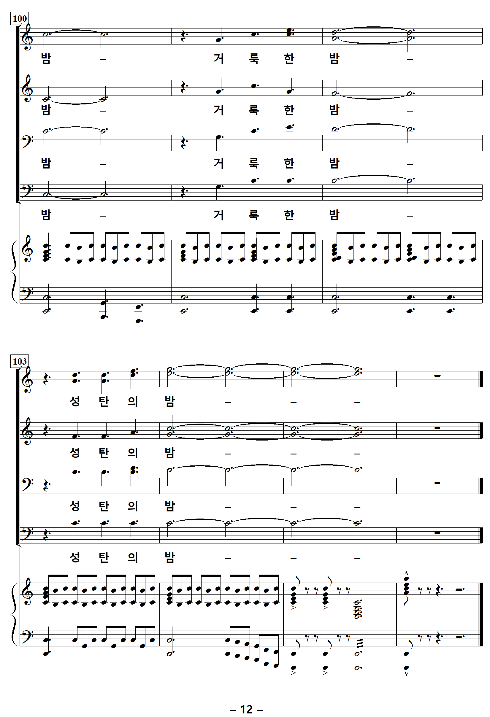 ** 찬송가 가사에 맞춘 악보가 아닌 영어악보를 그대로 사용하여 번역한 악보라 4성부가 찬송가와 조금 다릅니다.