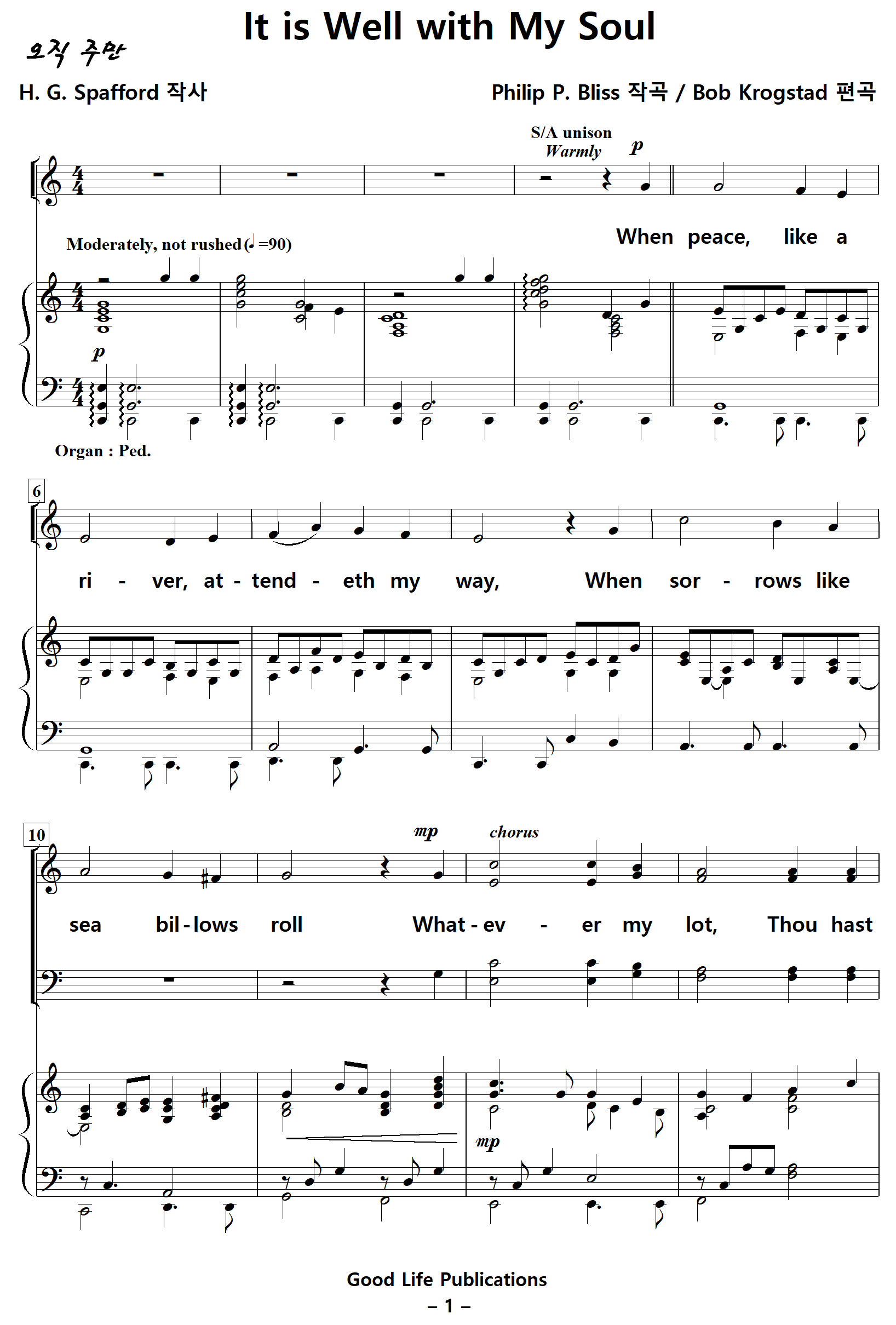 [찬양가사] It Is Well with My Soul / When peace, like a river [H. G. Spafford 작사, Philip P. Bliss 작곡, Bob Krogstad 편곡]