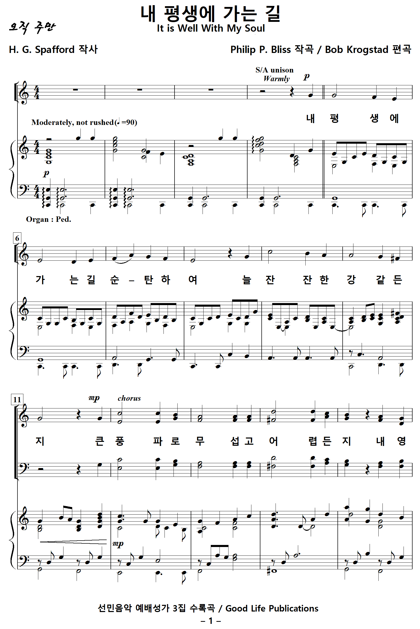 [찬양가사] 내평생에가는길 [H. G. Spafford 작사, Philip P. Bliss 작곡, Bob Krogstad 편곡]