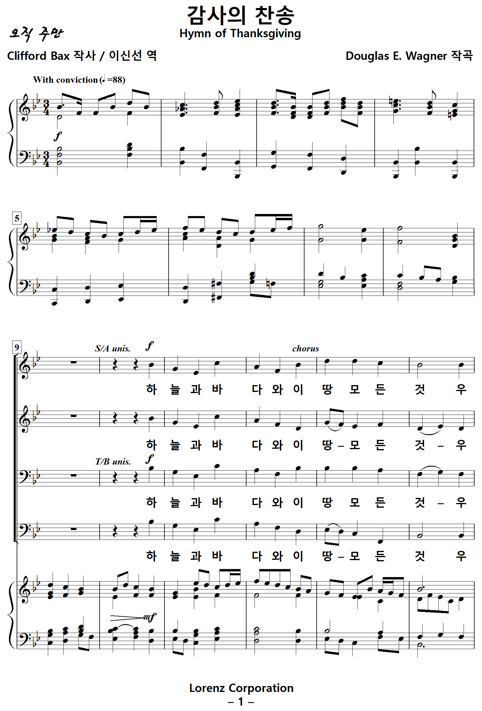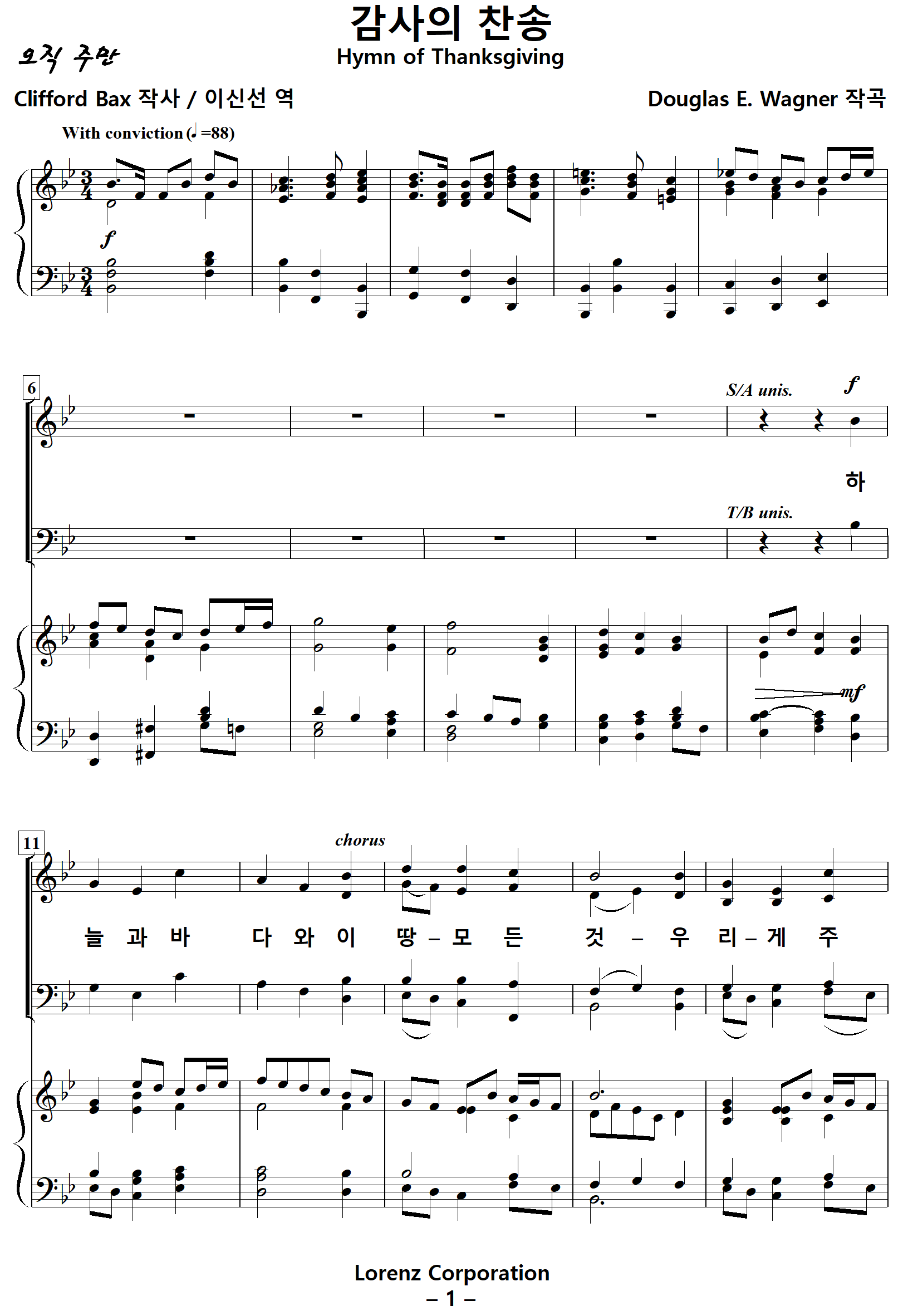 감사의 찬송 / 하늘과 바다와 이 땅 모든 것 [Douglas E. Wagner] 이신선 역 찬양듣기