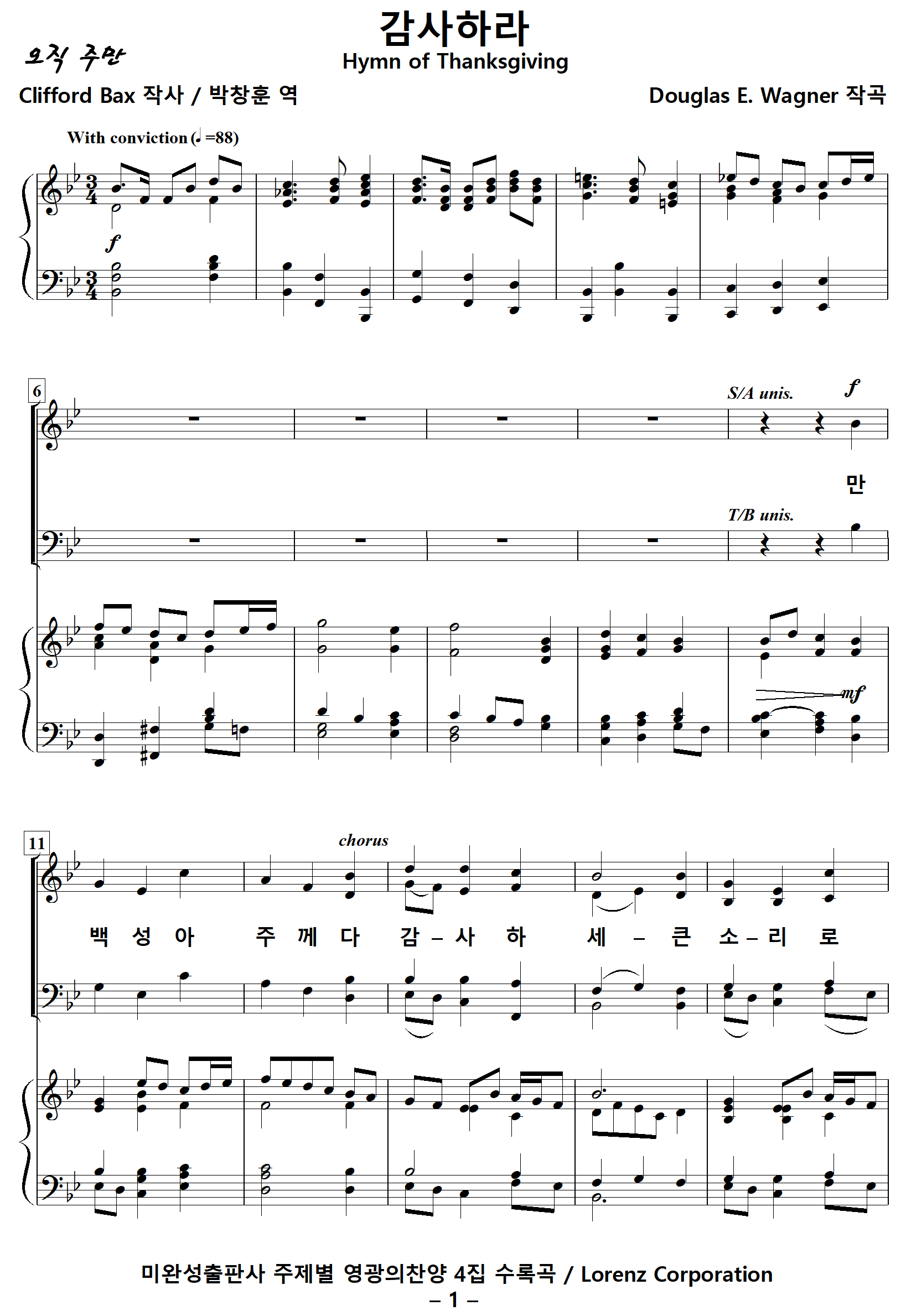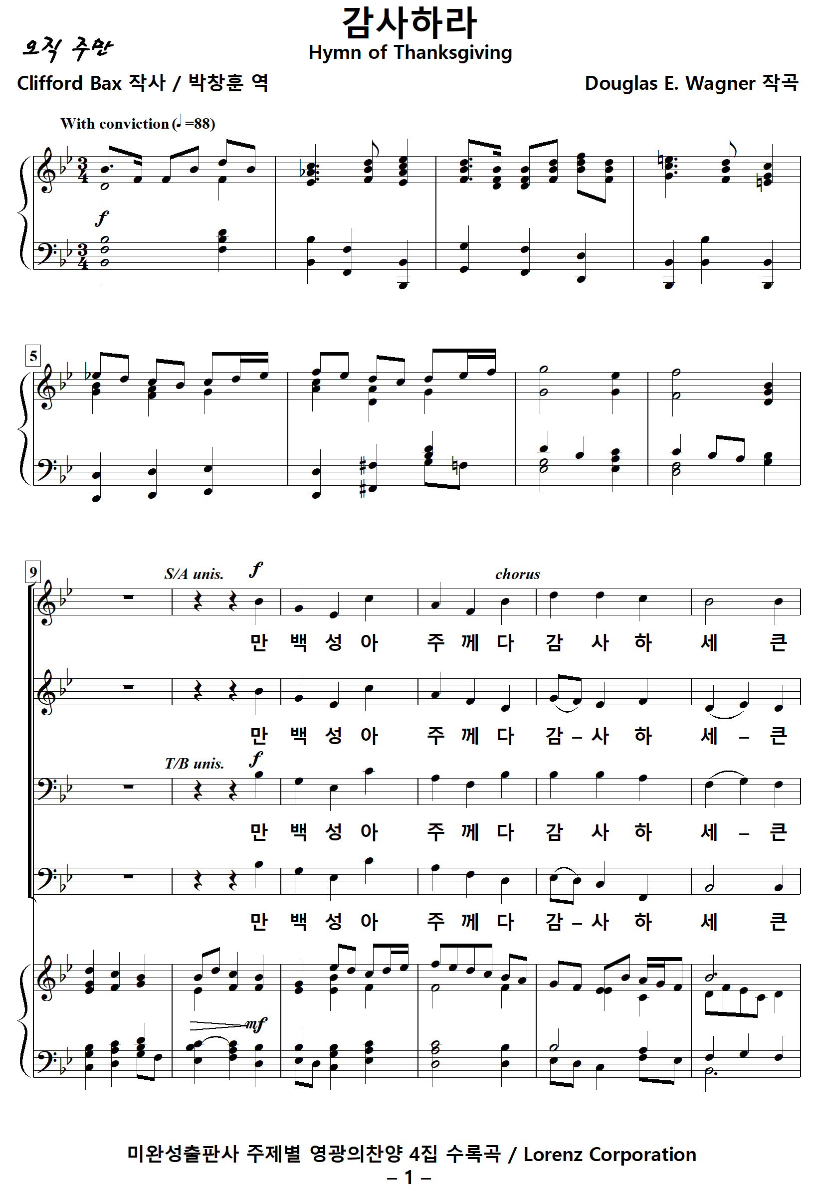 [찬양가사] 감사하라 / 만백성아주께다감사하세 [Clifford Bax 작사, Douglas E. Wagner 작곡, 박창훈 역]