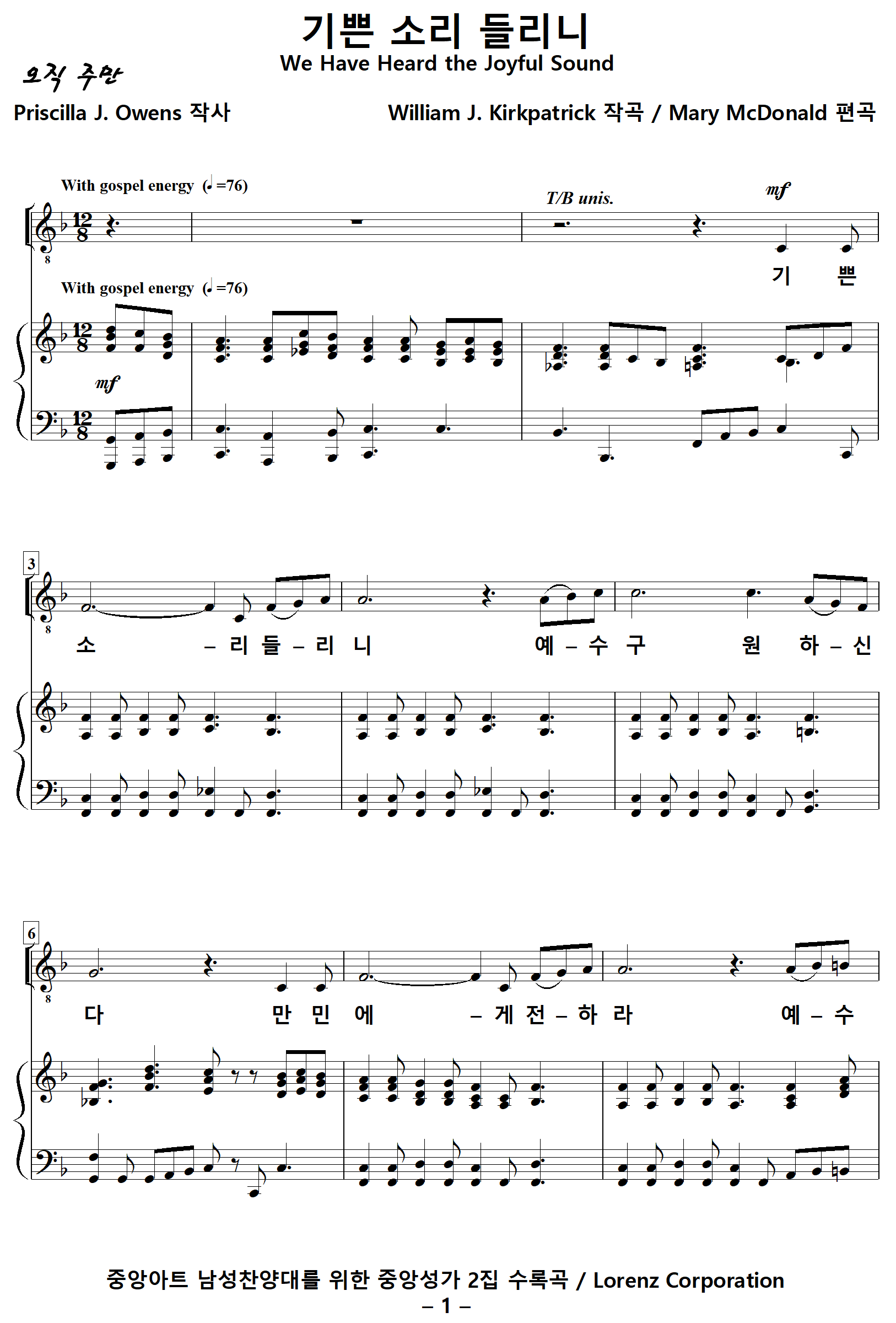 출처 : 중앙아트 남성찬양대를 위한 중앙성가 2집 / Lorenz Corporation