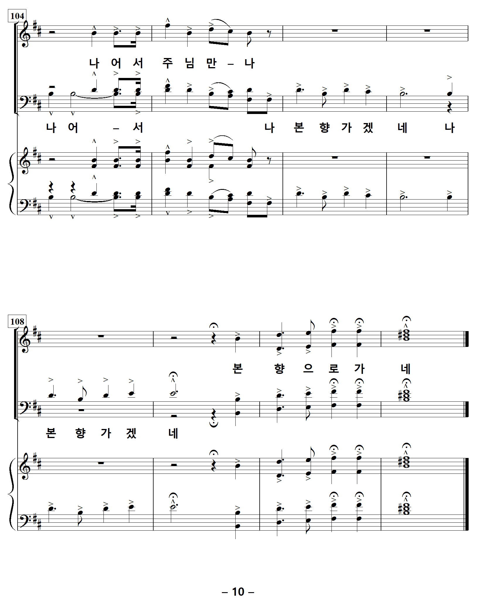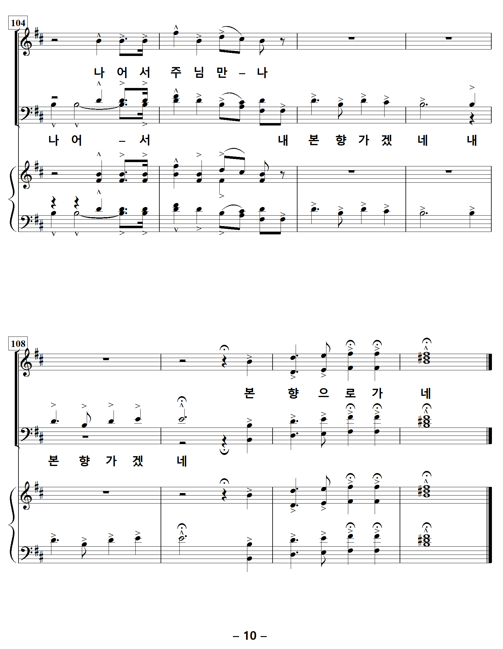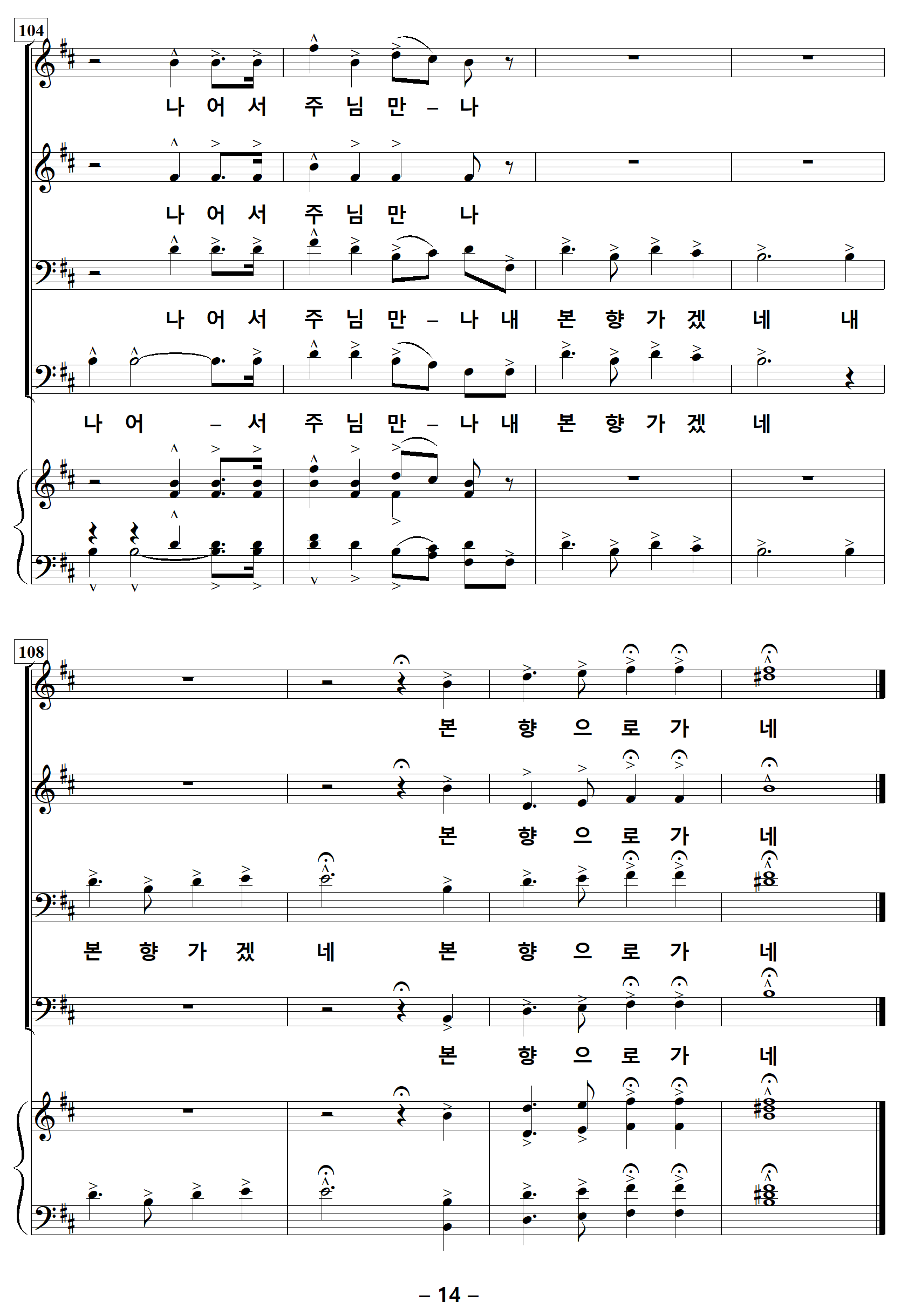 ** 출판된 악보에는 아카펠라 곡으로 반주부가 없습니다. 편의상 4성부로 반주부 표기했습니다.