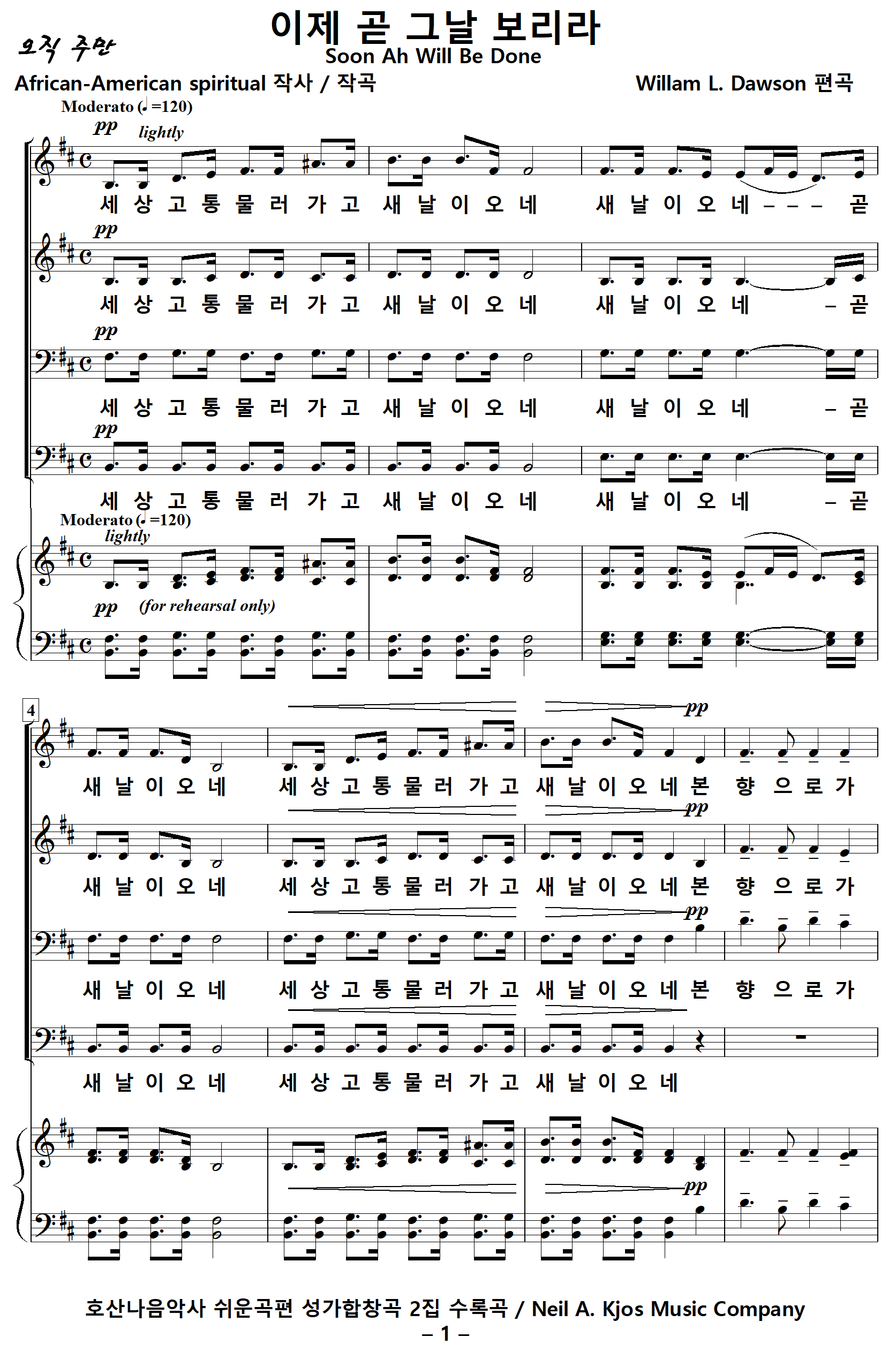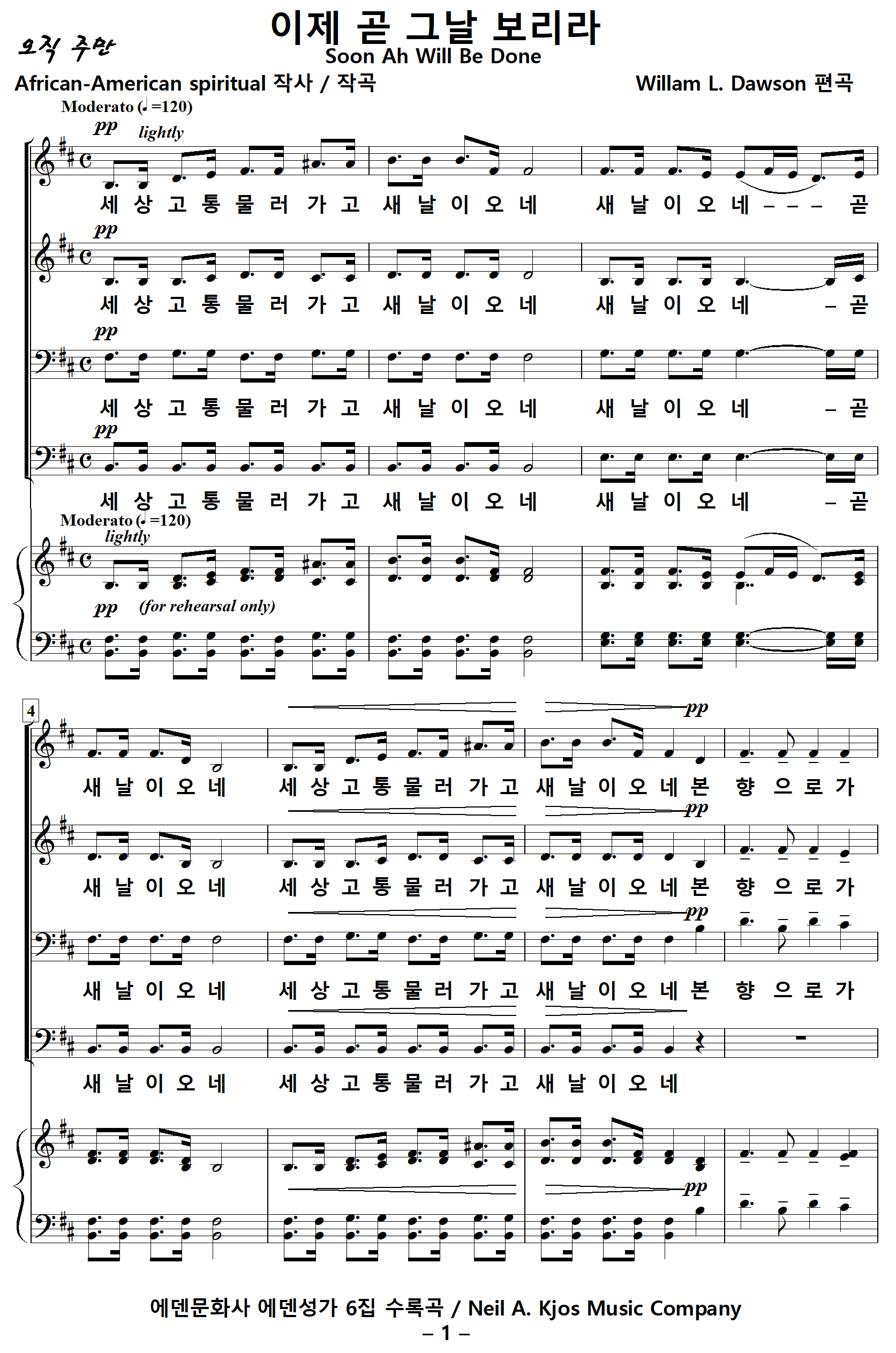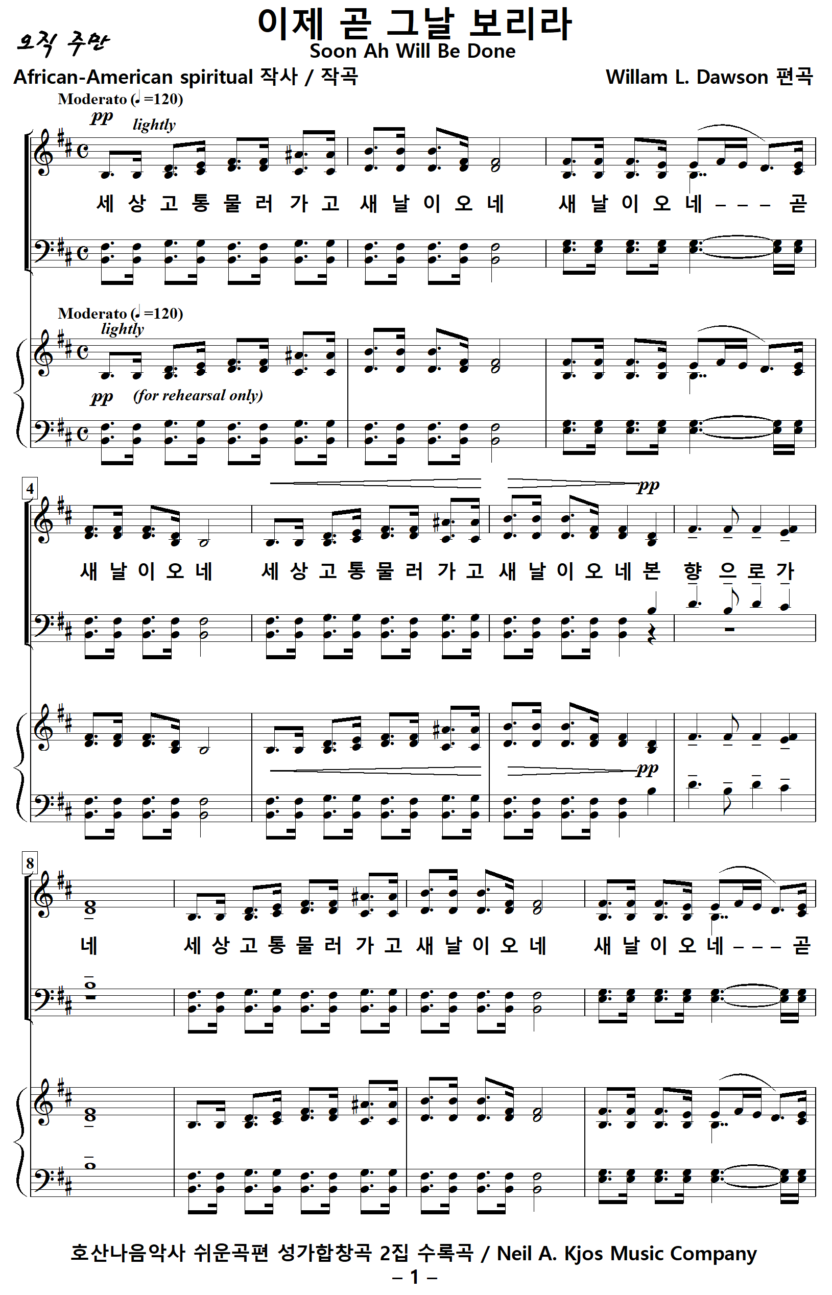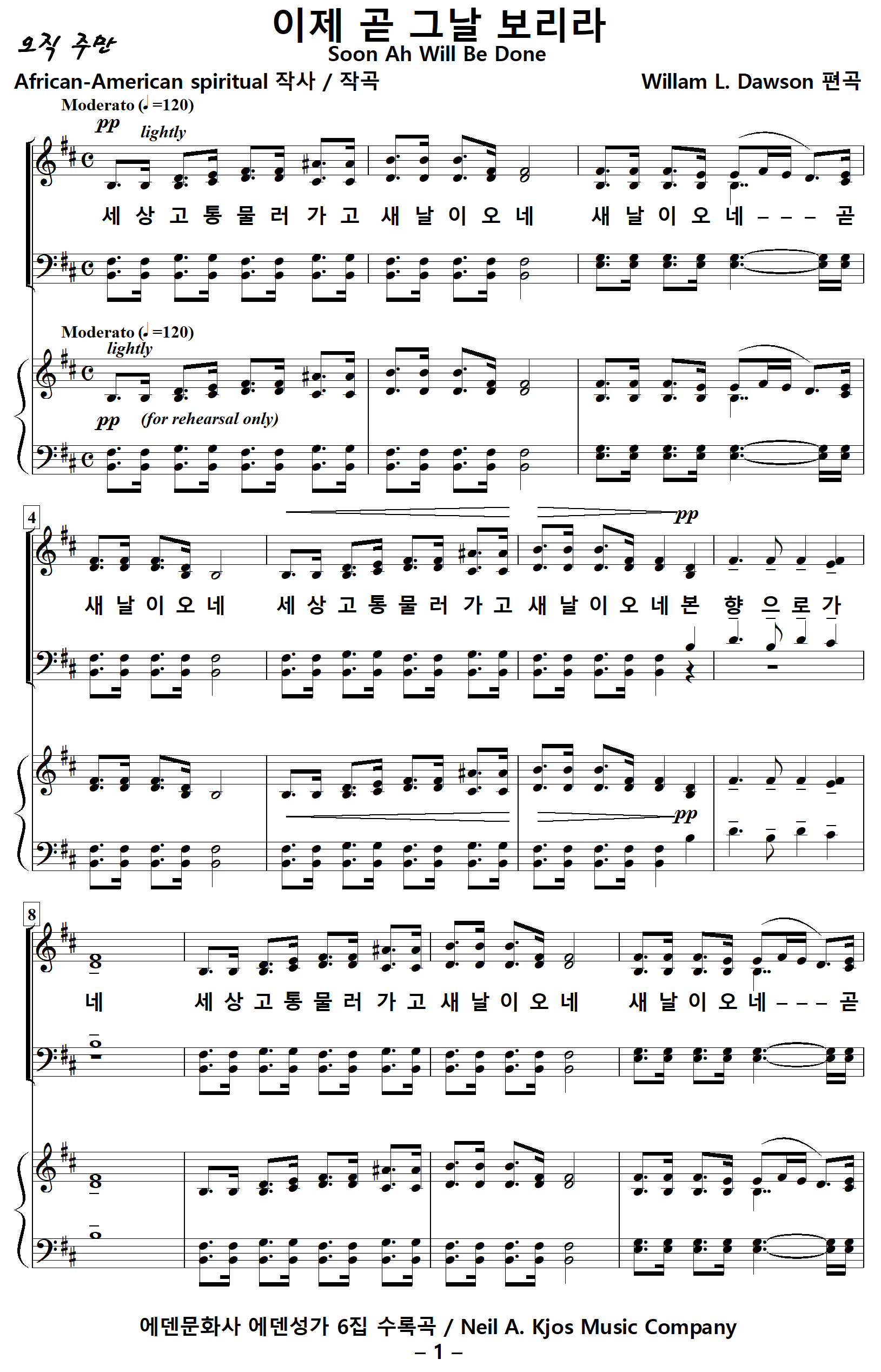 [찬양가사] 이제곧그날보리라 / 세상고통물러가고 [African-American spiritual 작사 / 작곡, Willam L. Dawson 편곡]