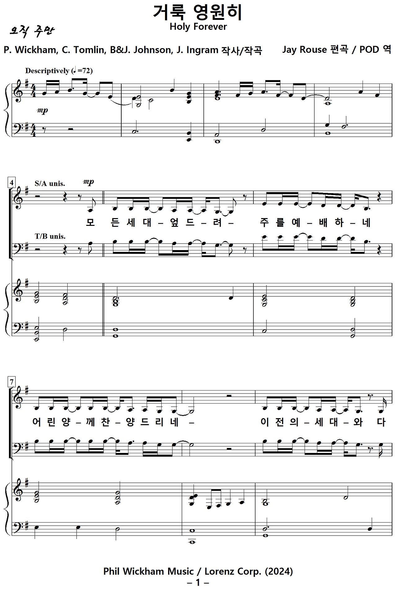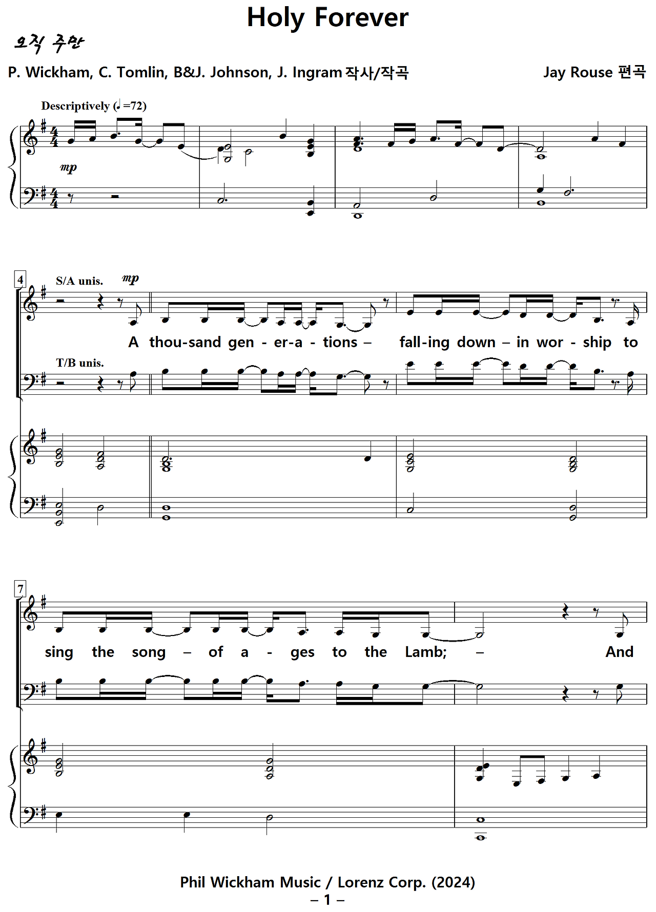 Holy Forever / A thousand generations (Jay Rouse) [Lorenz Choir MR] 찬양듣기