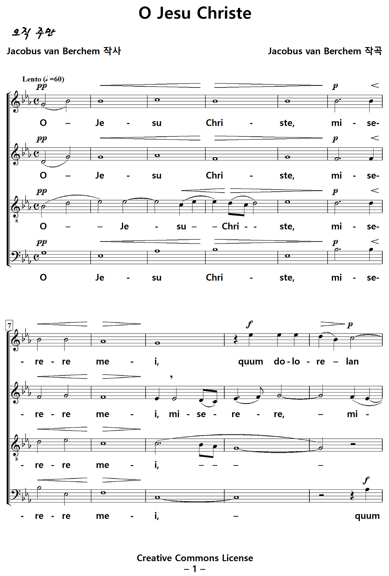 O Jesu Christe [Jacobus van Berchem, 아카펠라, Eb키] NWC / PDF 4부 성가악보 다운받기