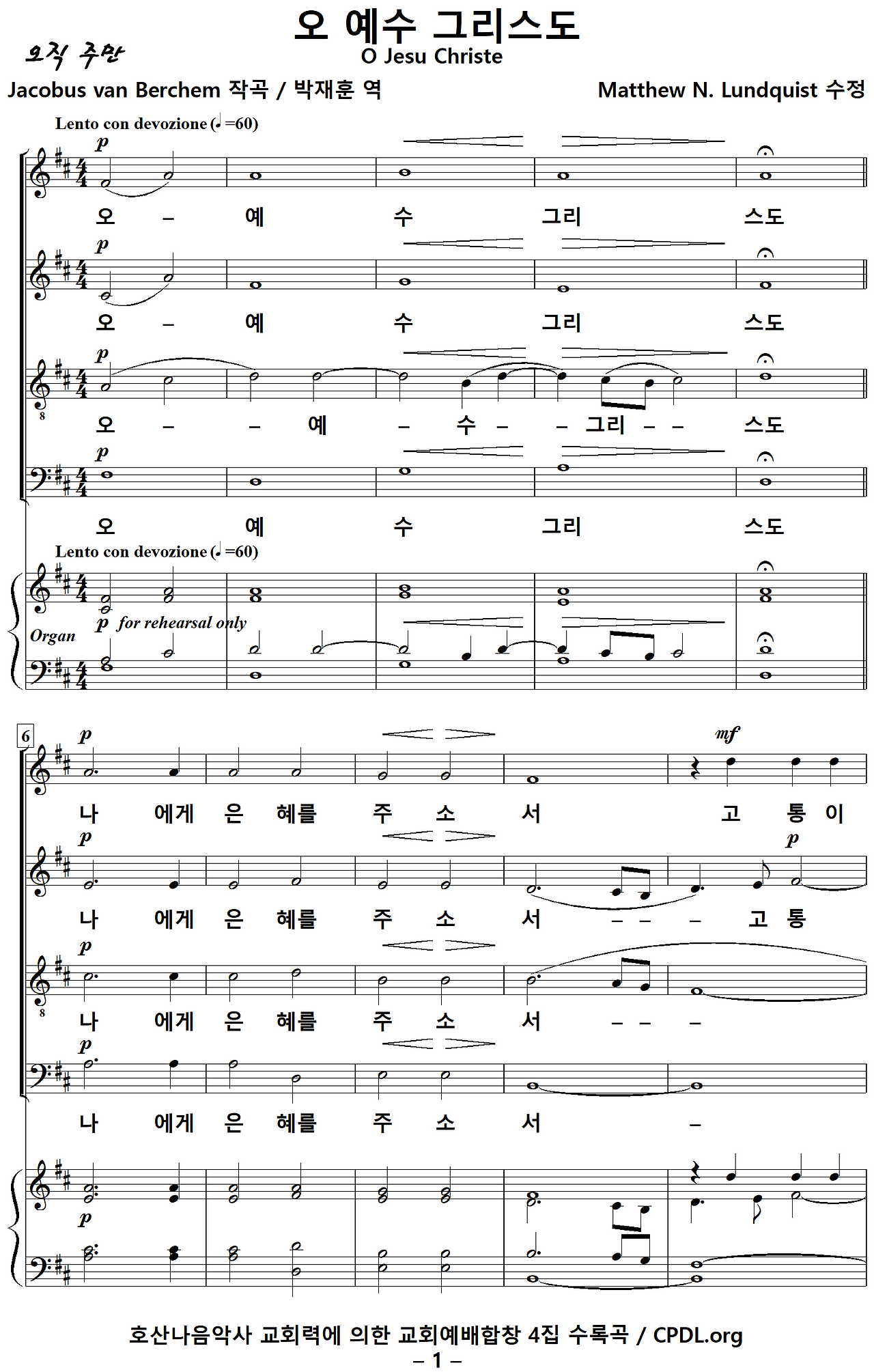 오 예수 그리스도 [Jacobus van Berchem, 박재훈, D키] NWC / PDF 4부 성가악보 다운받기