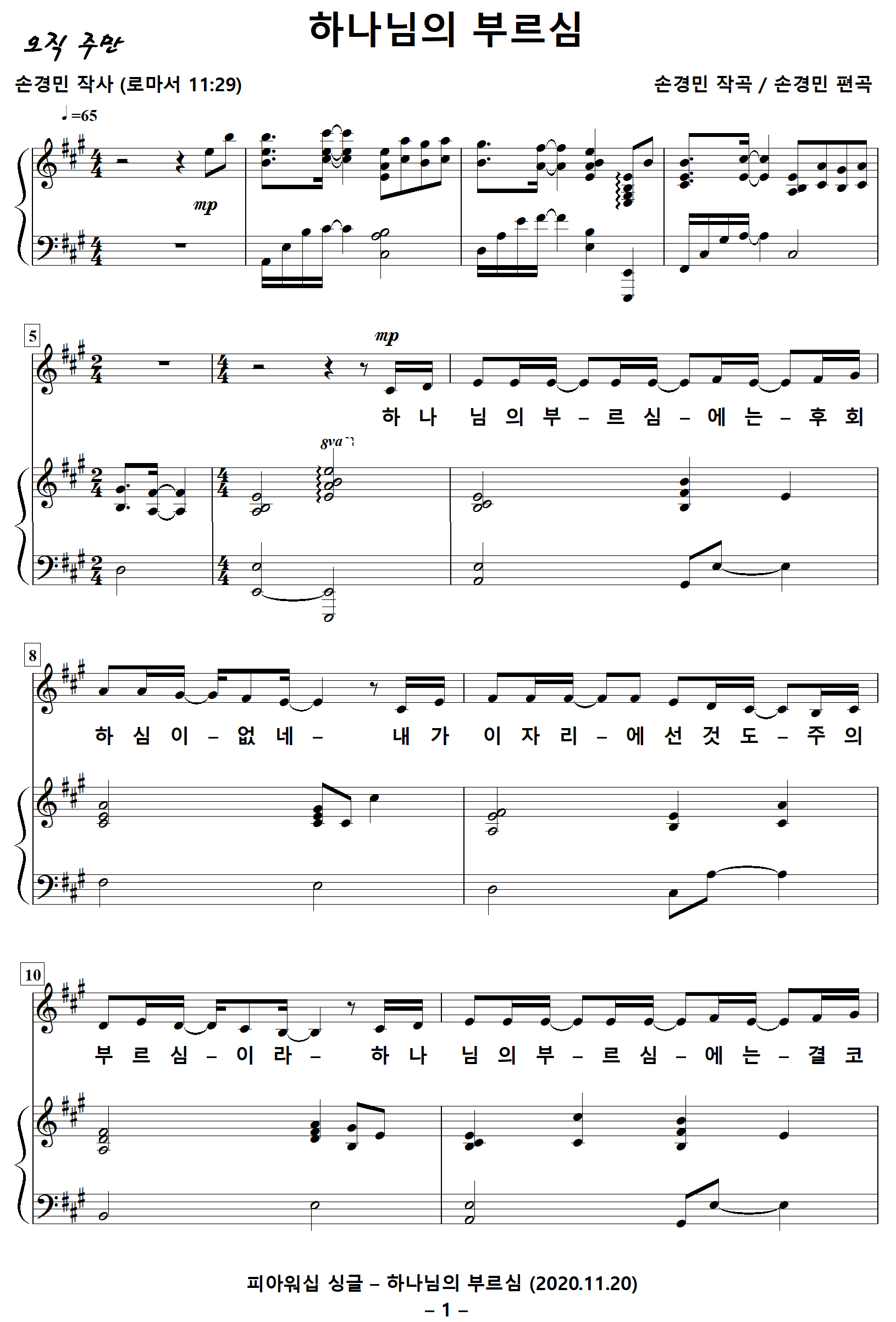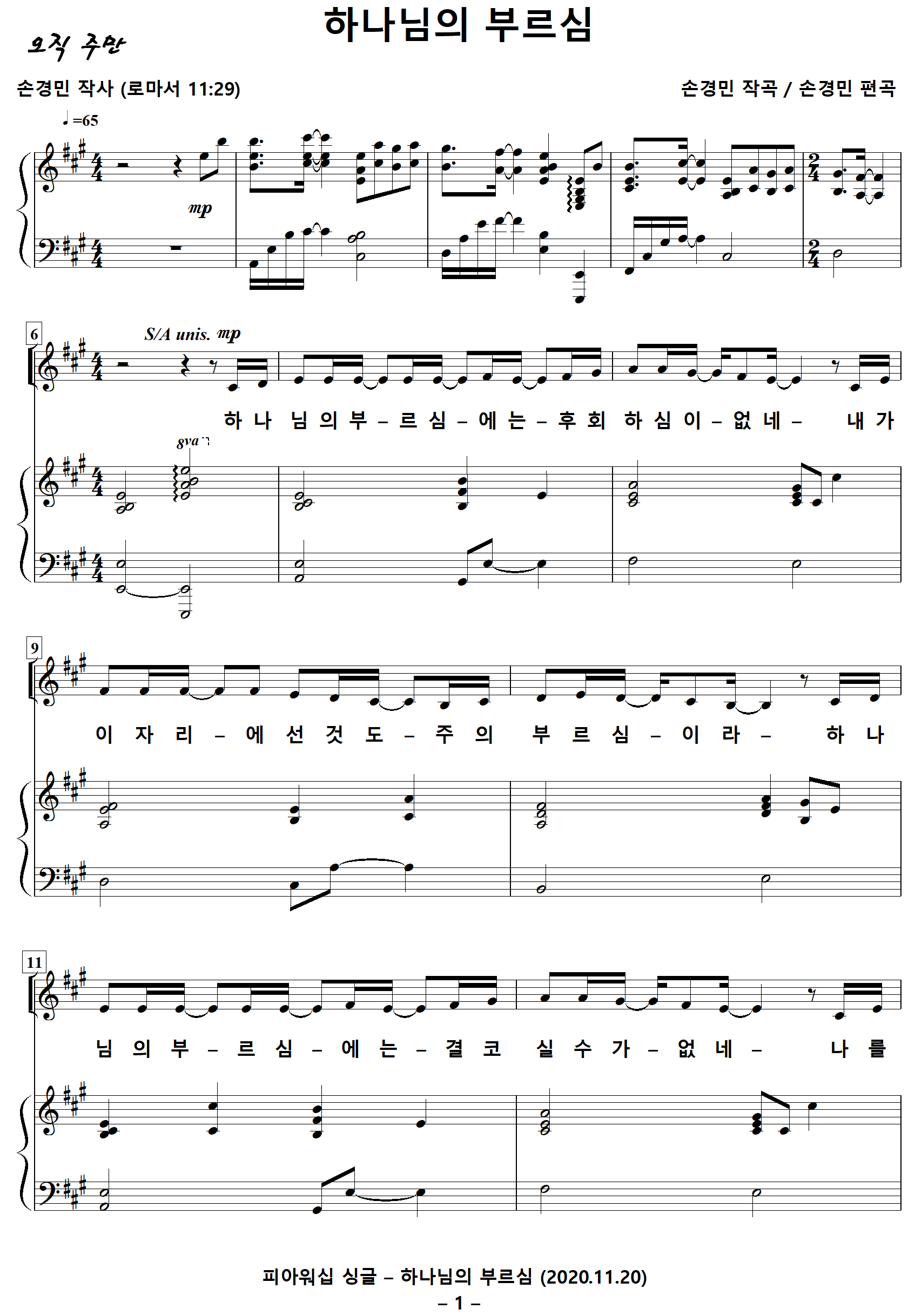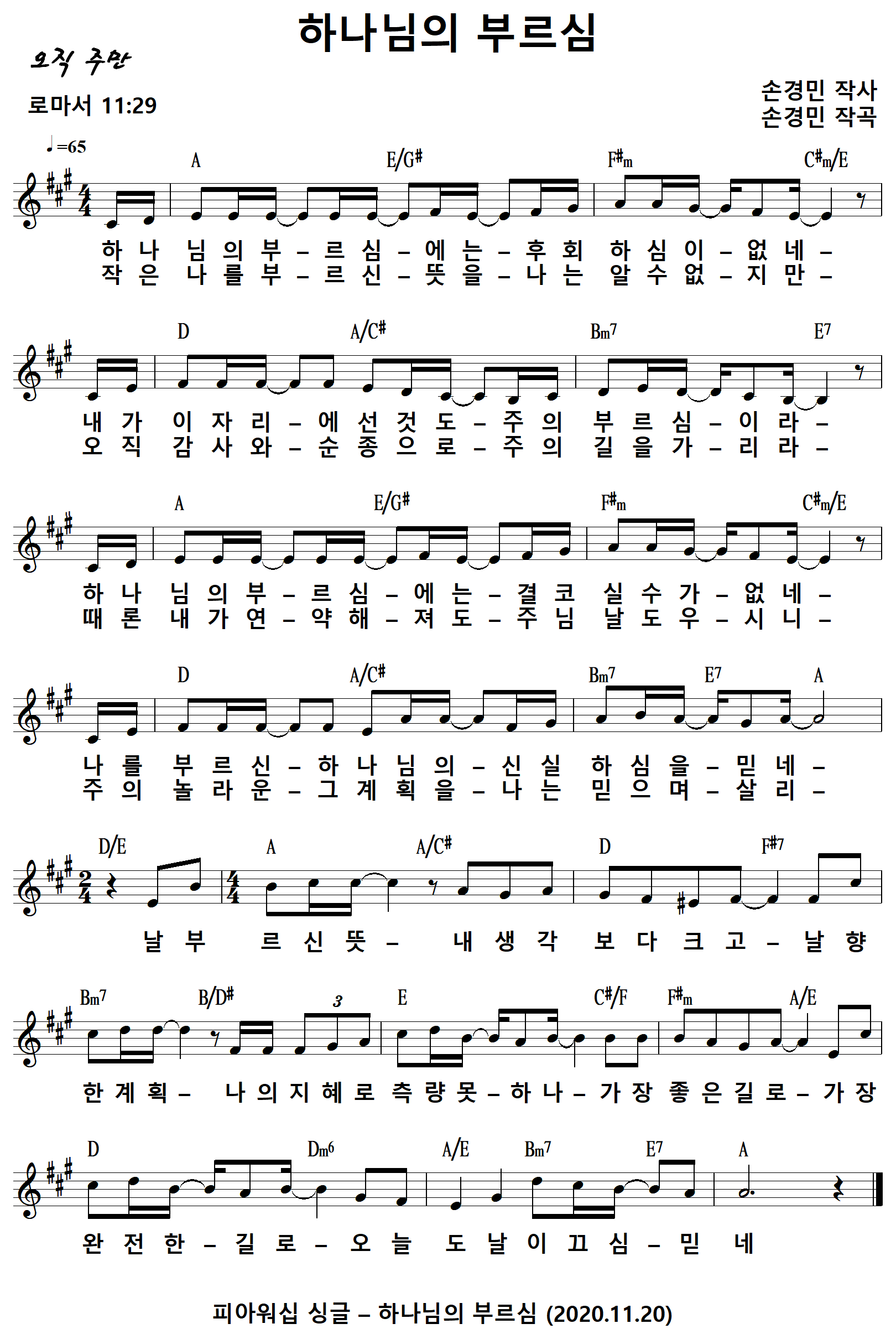 작사 : 손경민 (로마서 11:29)