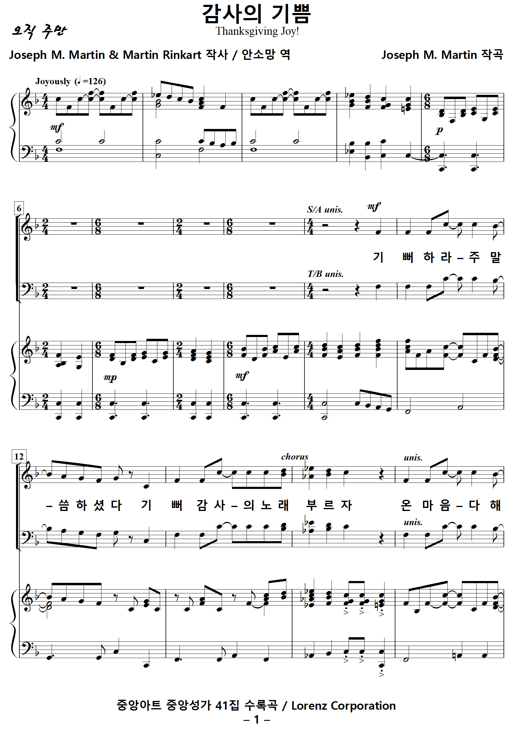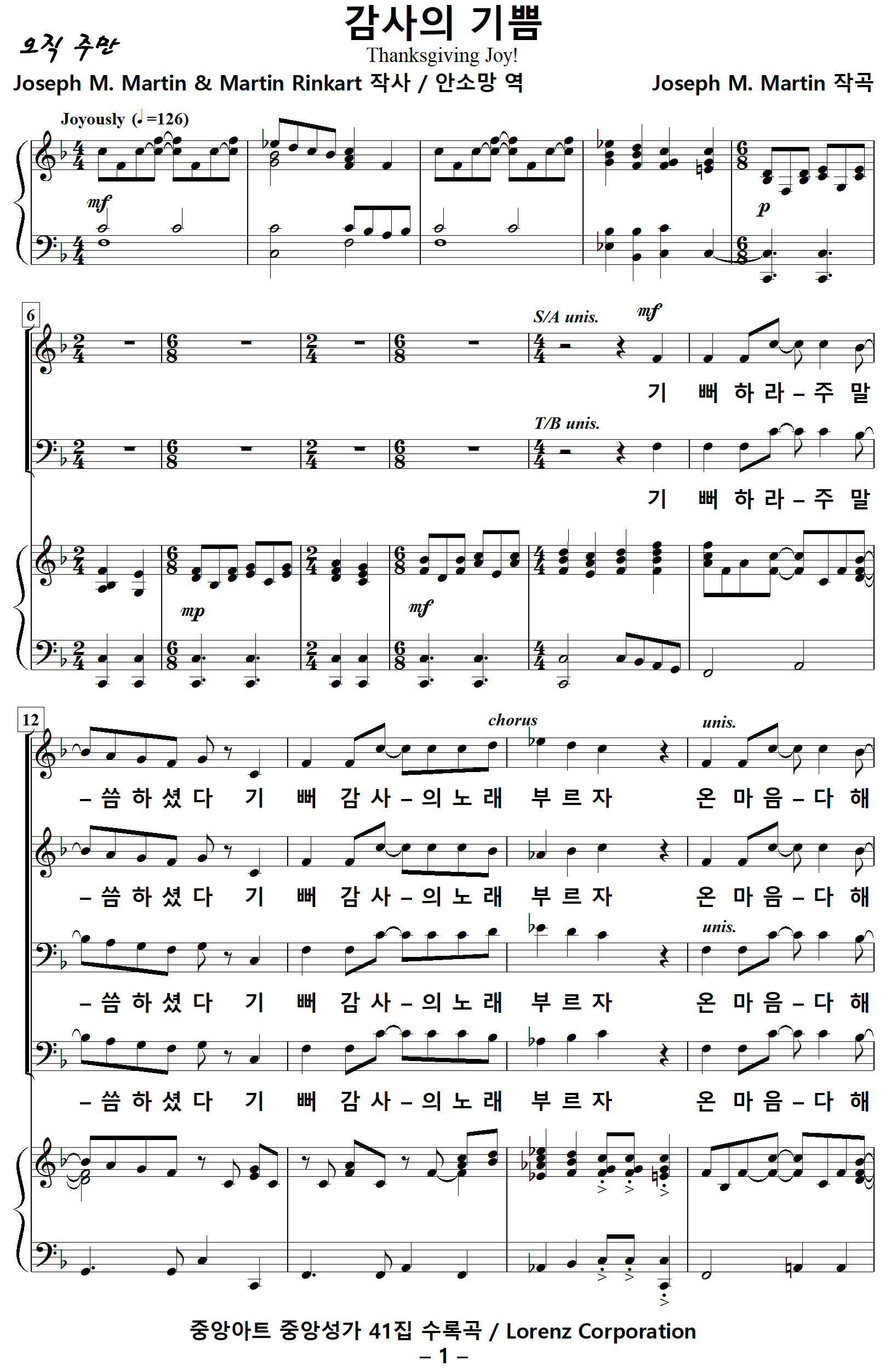 출처 : 중앙아트 중앙성가 41집 / Lorenz Corporation