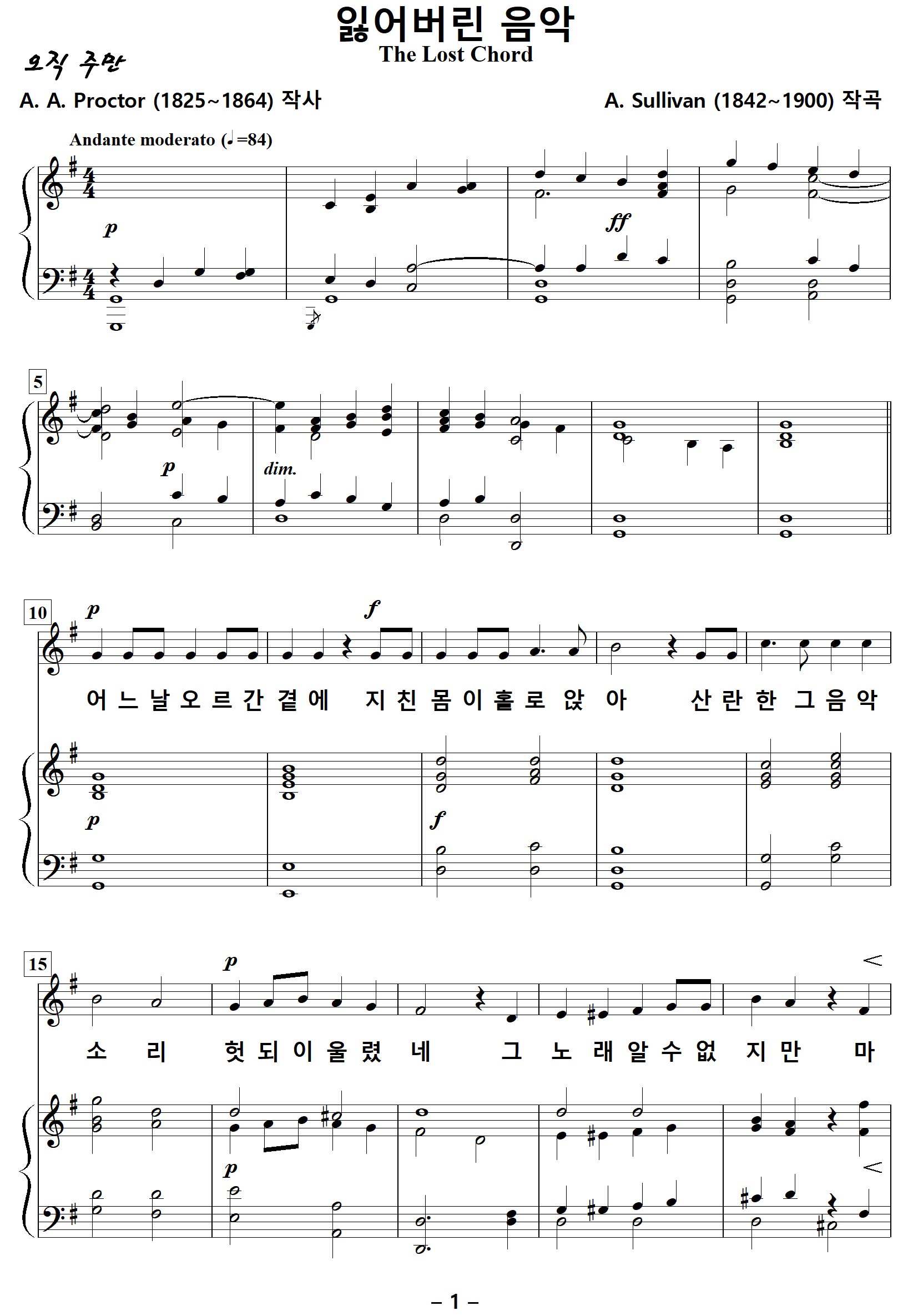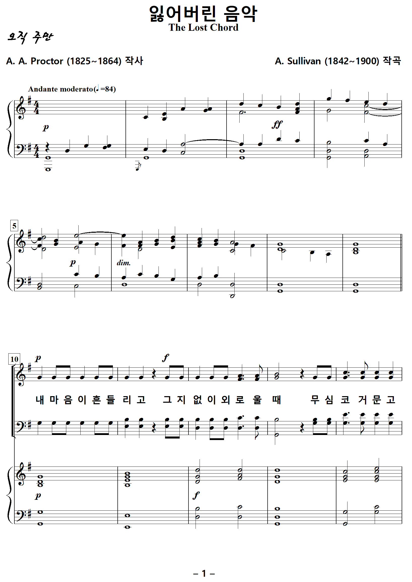 [찬양가사] The Lost Chord / Seated one day at the Organ [A. A. Proctor 작사, A. Sullivan 작곡]