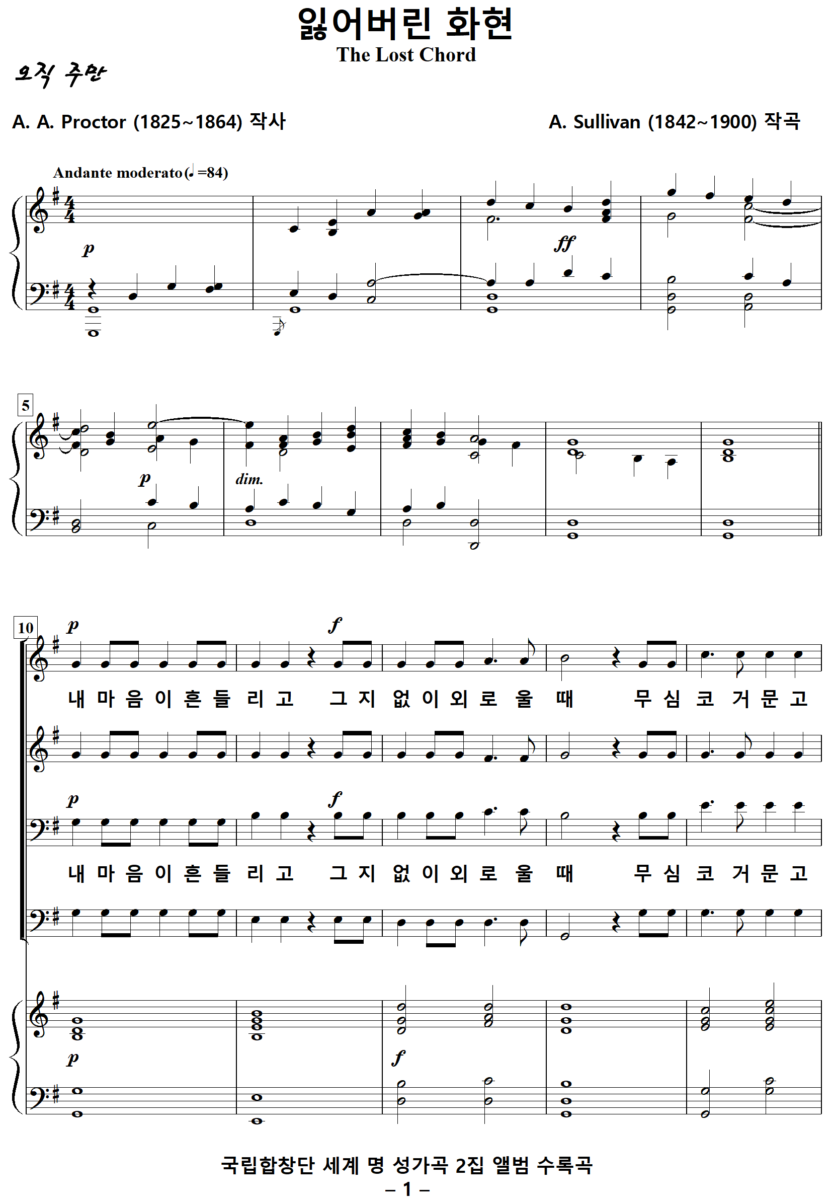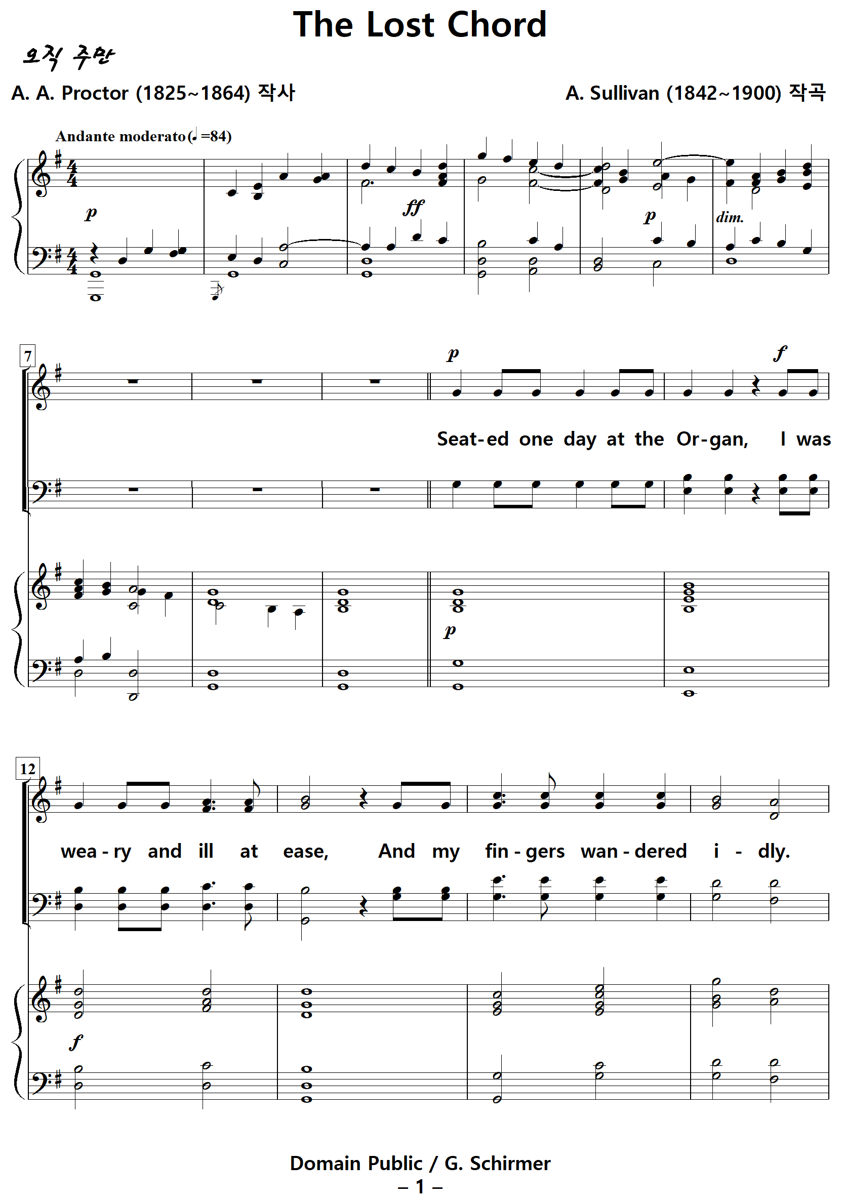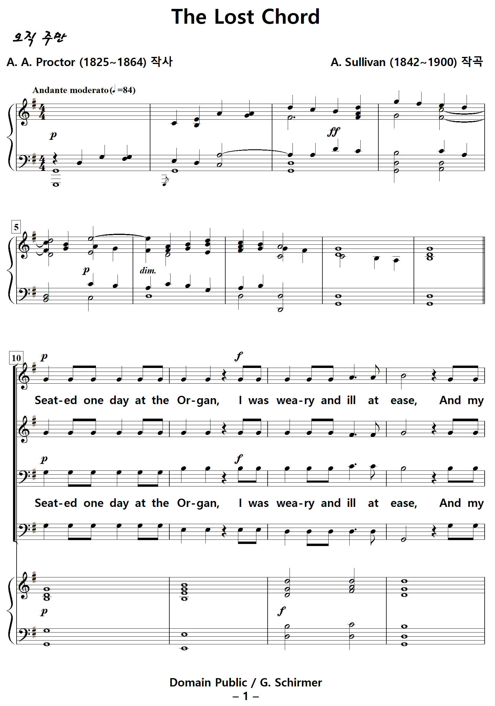 The Lost Chord / 잃어버린 음악 (A. Sullivan, G. Schirmer) NWC / PDF 영문 혼성4부 악보 다운받기