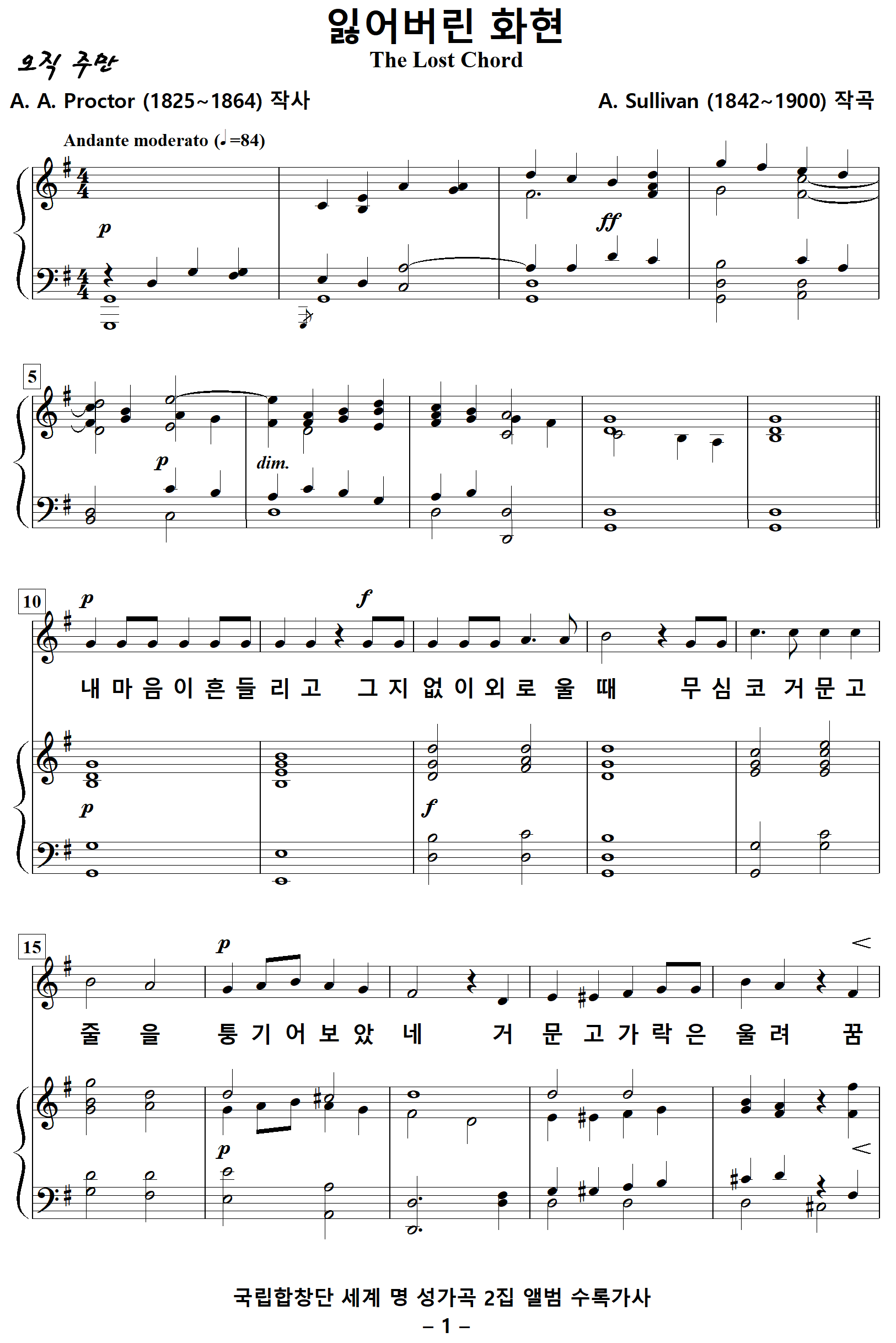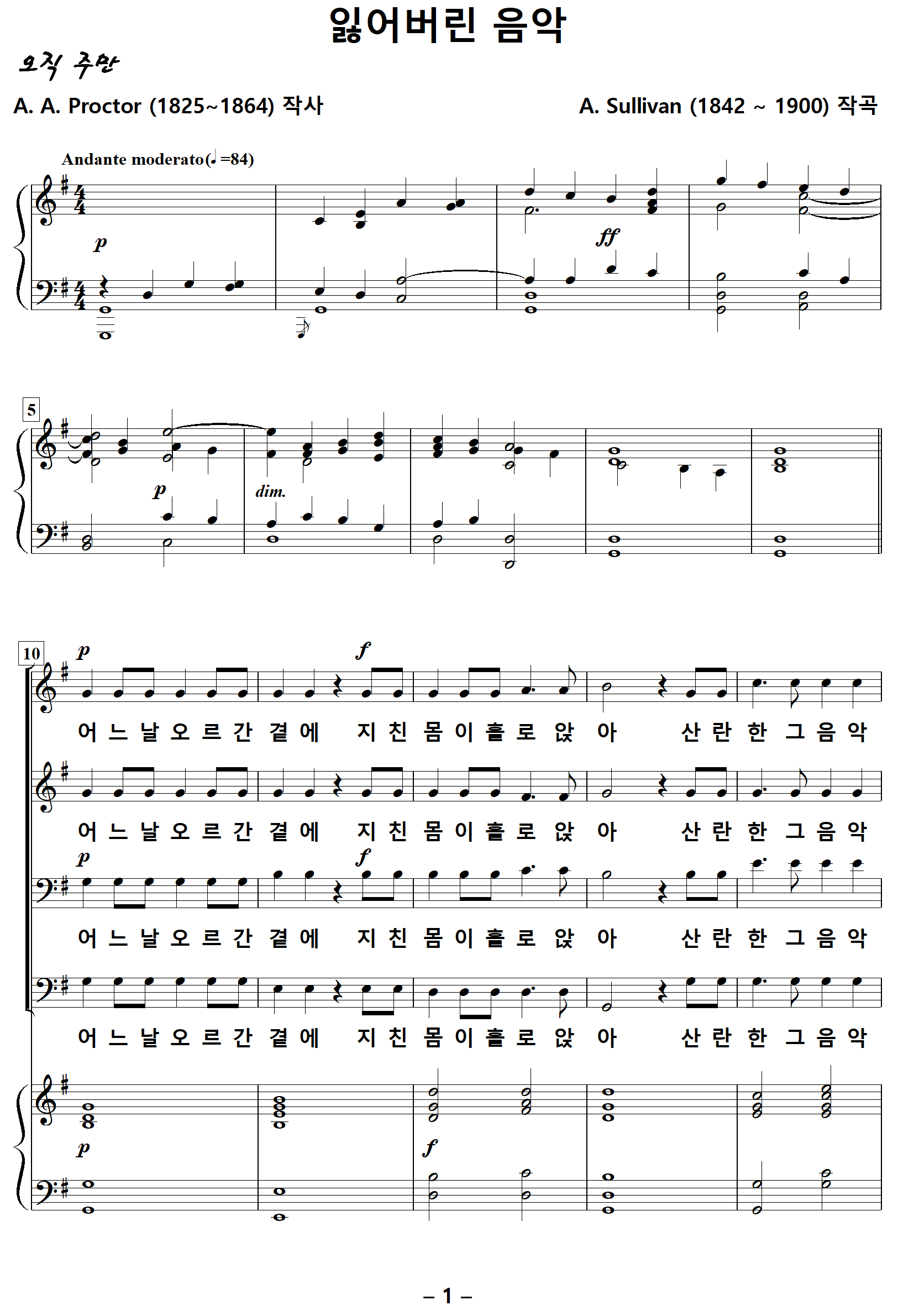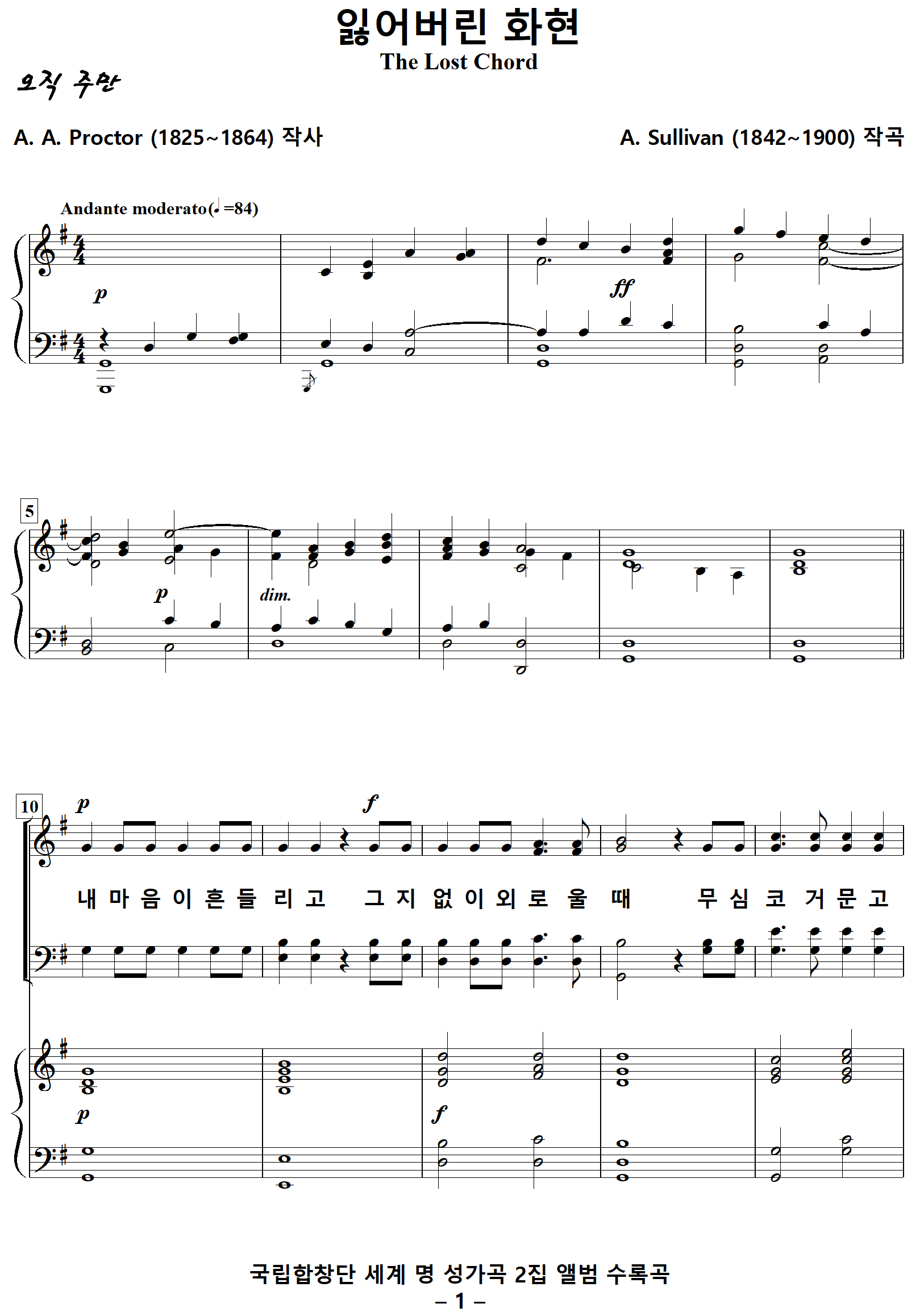 The Lost Chord / 잃어버린 음악 (A. Sullivan, G. Schirmer) NWC / PDF 영문 혼성4부 악보 다운받기