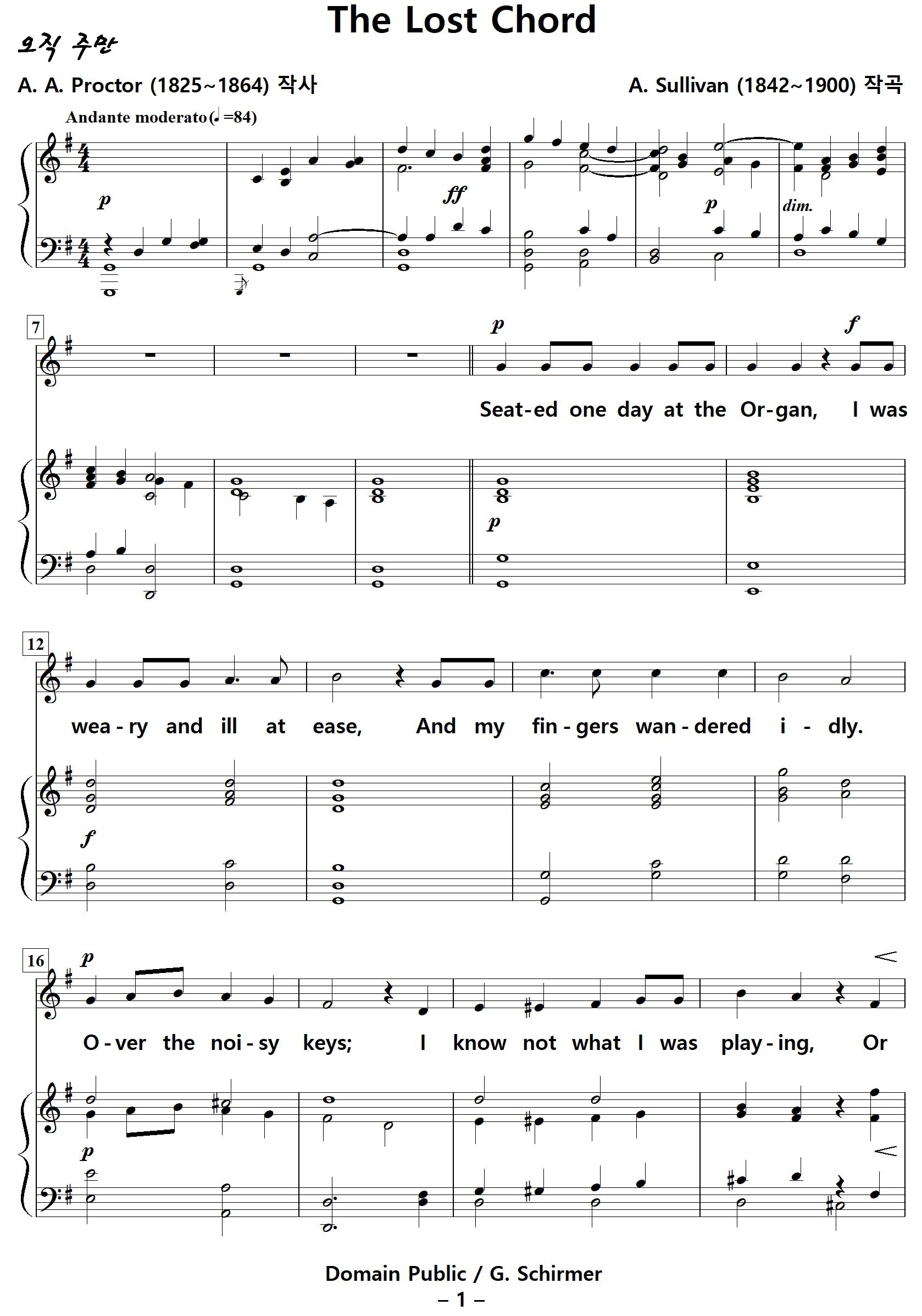 The Lost Chord / 잃어버린 음악 (A. Sullivan, G. Schirmer) NWC / PDF 영문 솔리스트 악보 다운받기