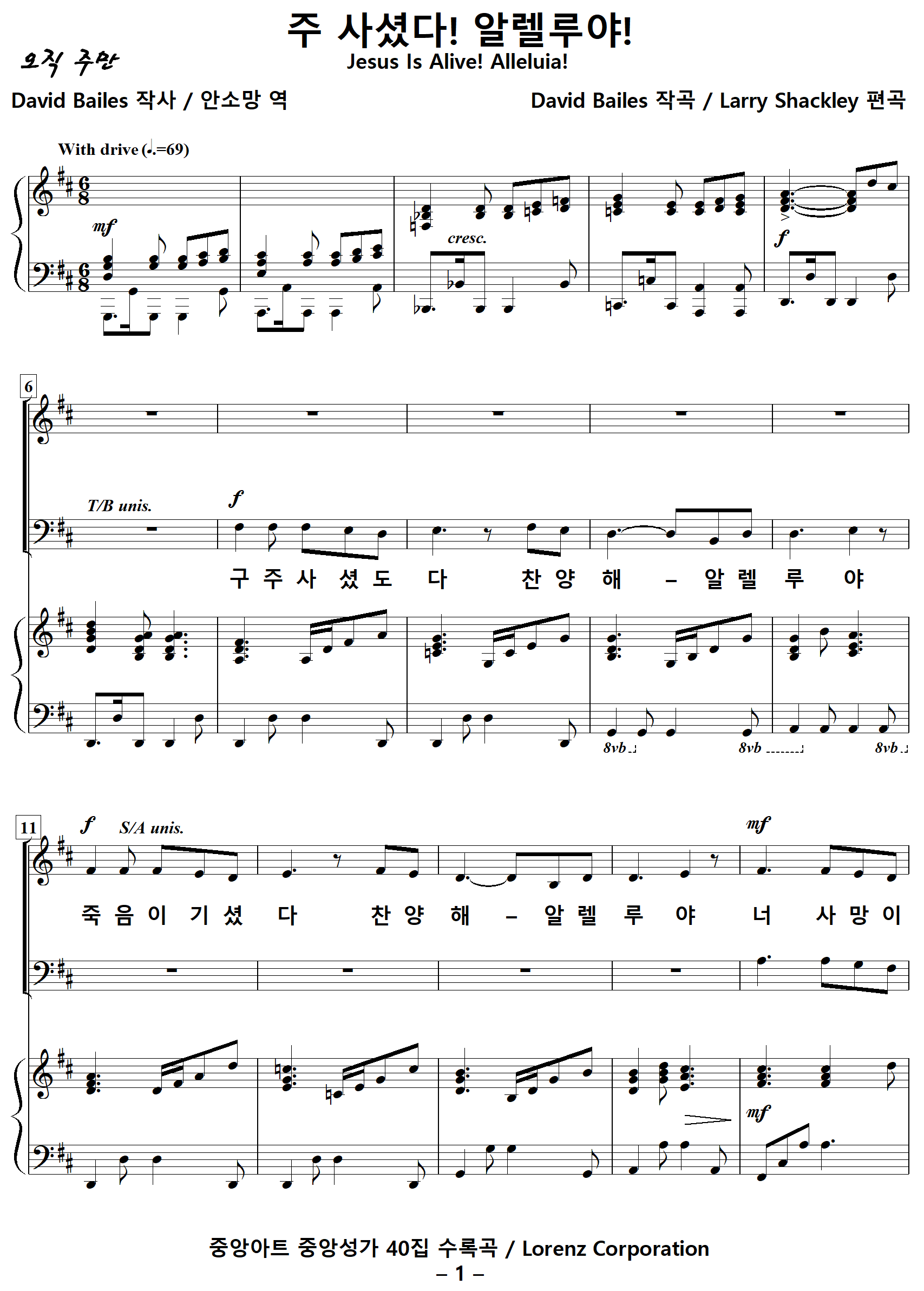출처 :중앙아트 중앙성가 40집 / Lorenz Corporation